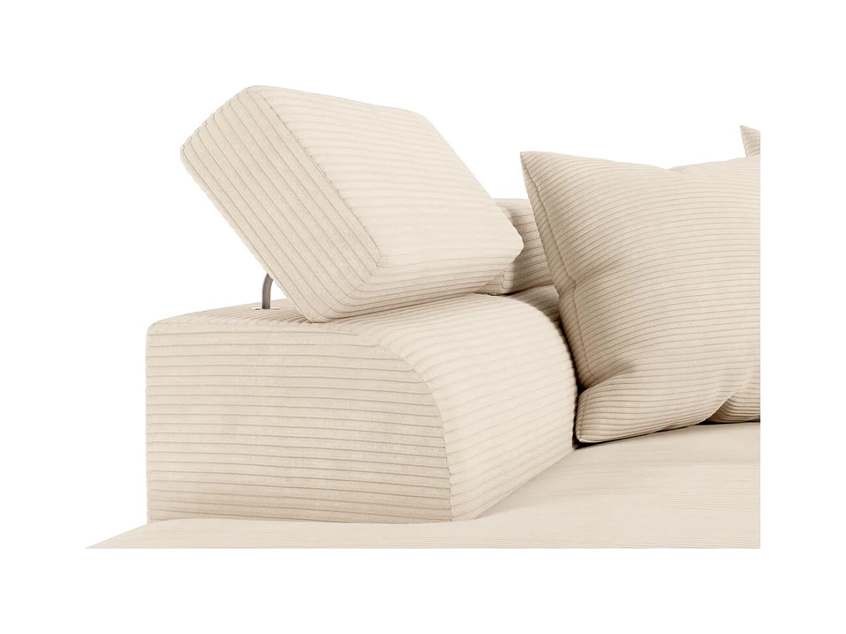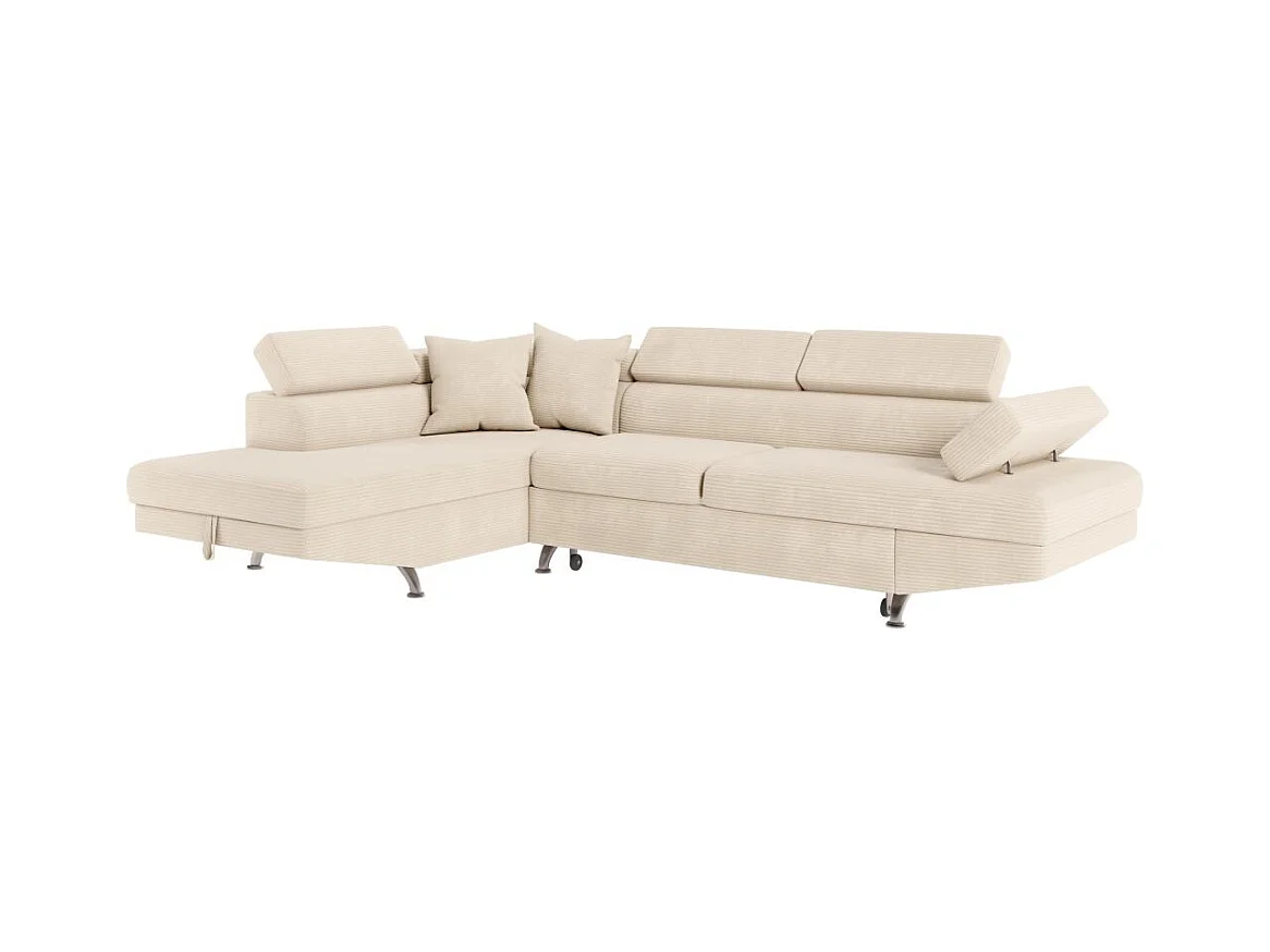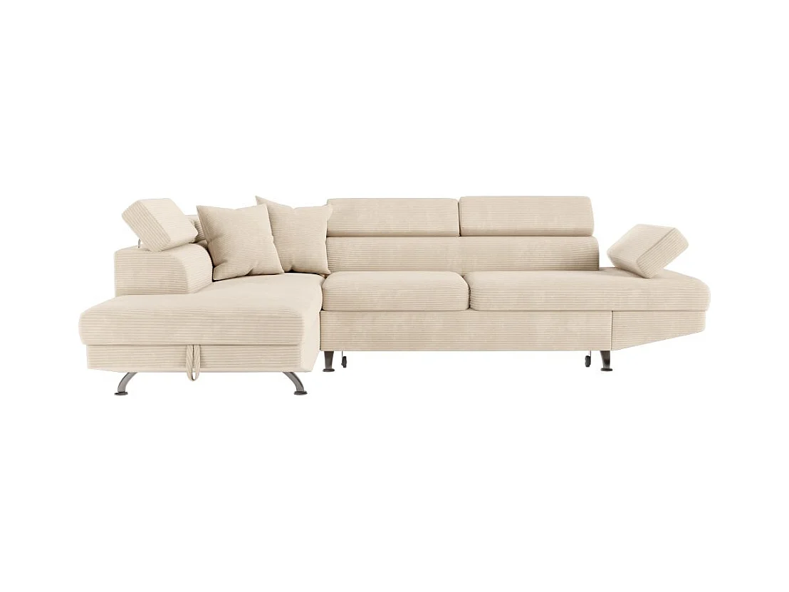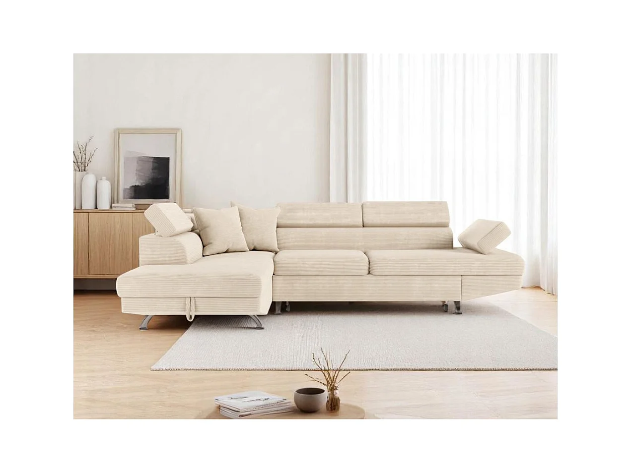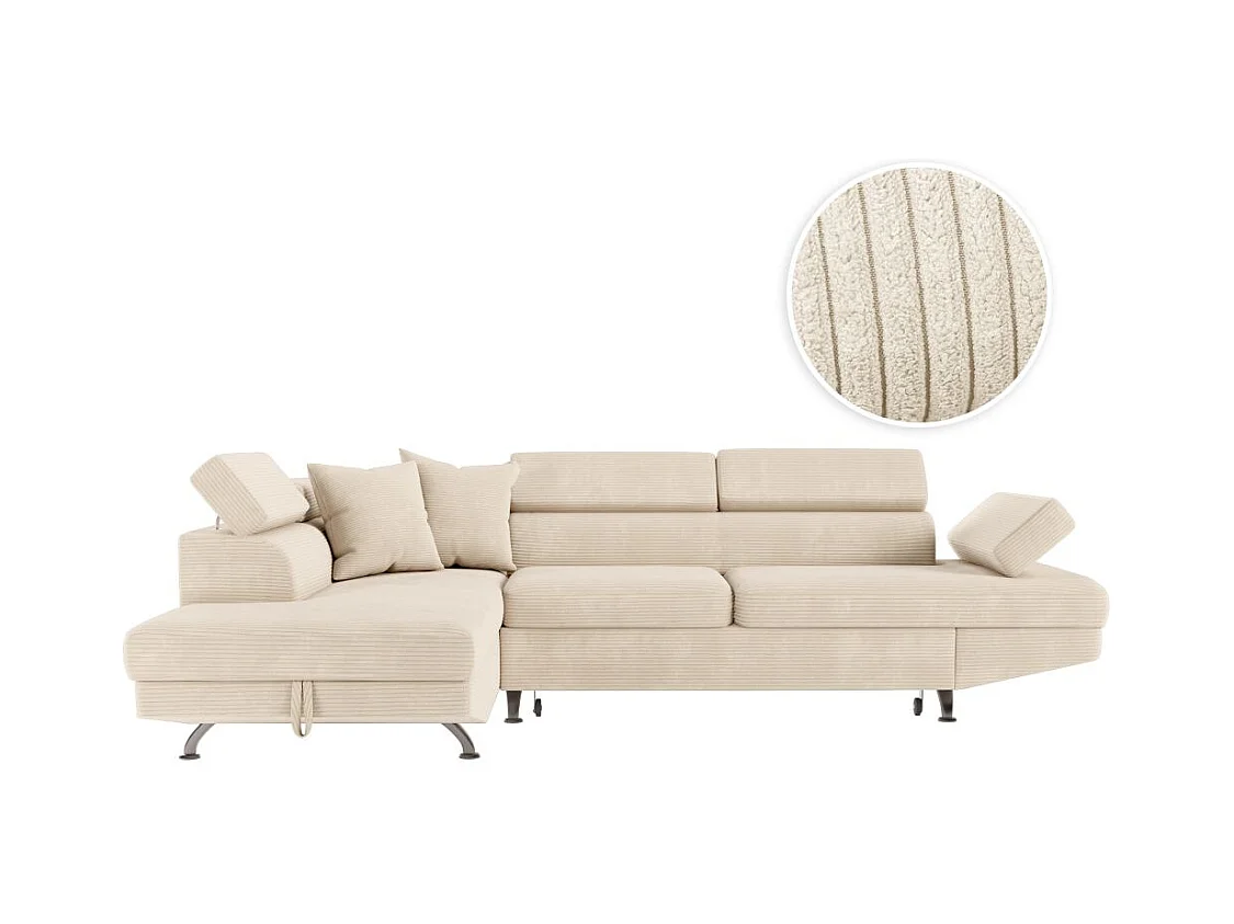 Canapé d'angle gauche convertible RIO 5 places avec coffre de rangement en velours côtelé - Beige
