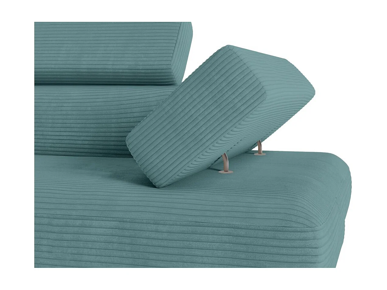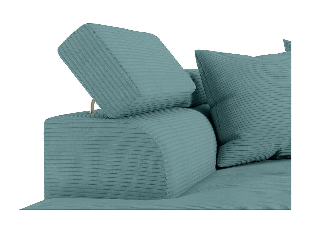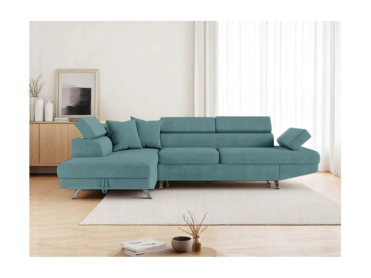 Canapé d'angle gauche convertible RIO 5 places avec coffre de rangement en velours côtelé bleu clair