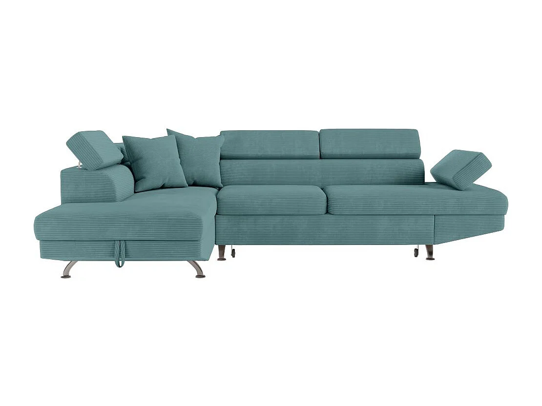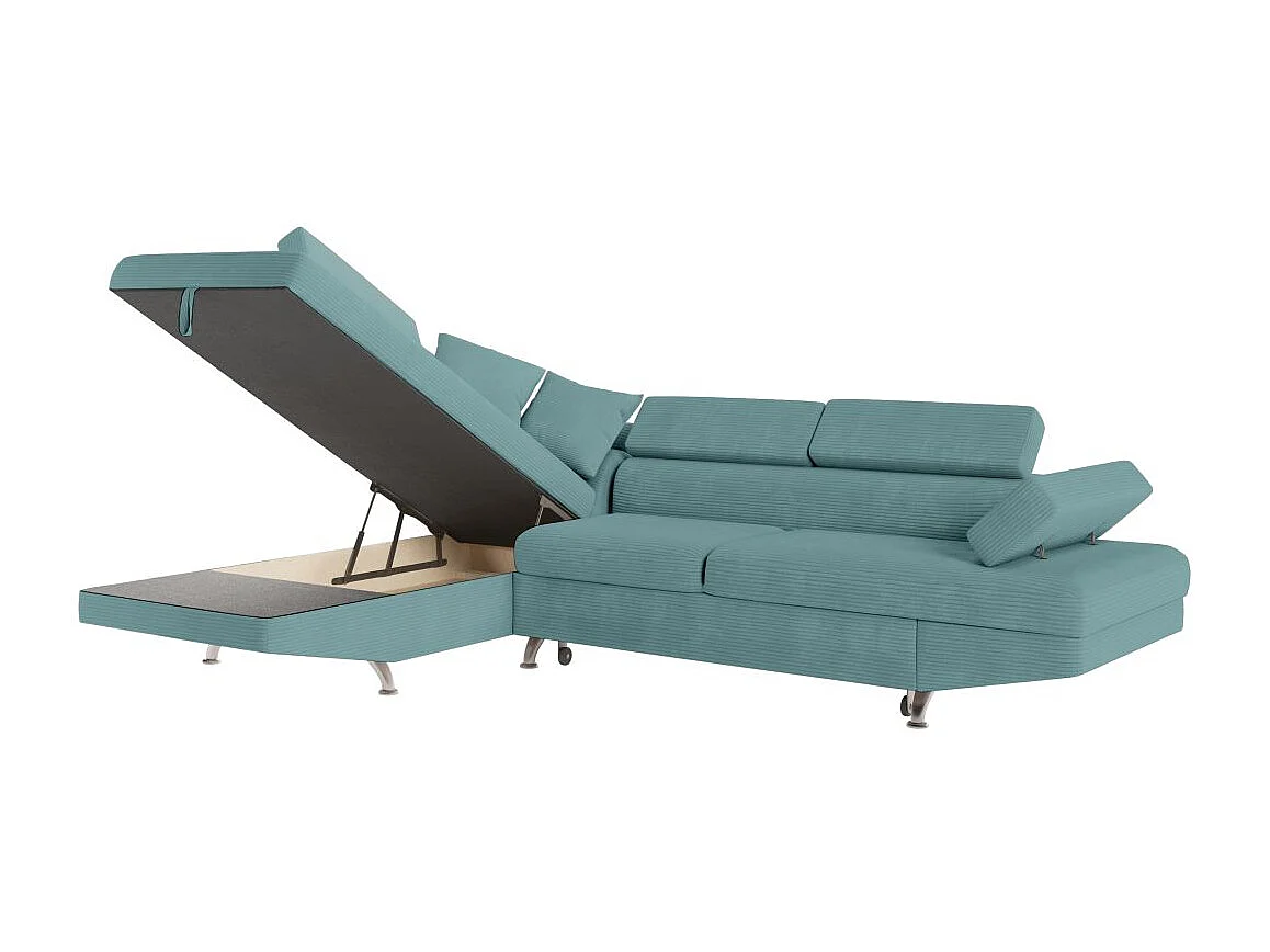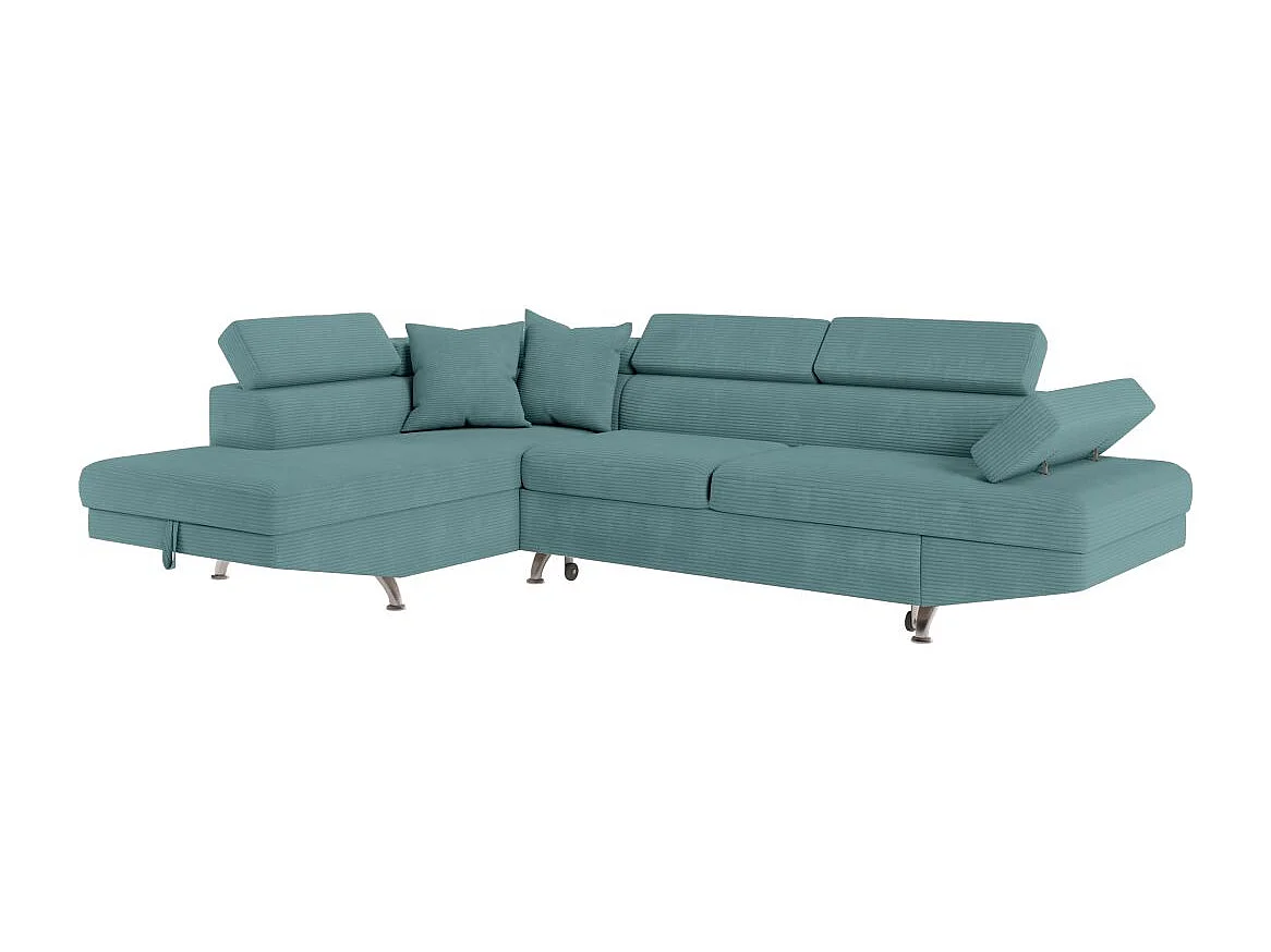 Canapé d'angle gauche convertible RIO 5 places avec coffre de rangement en velours côtelé bleu clair