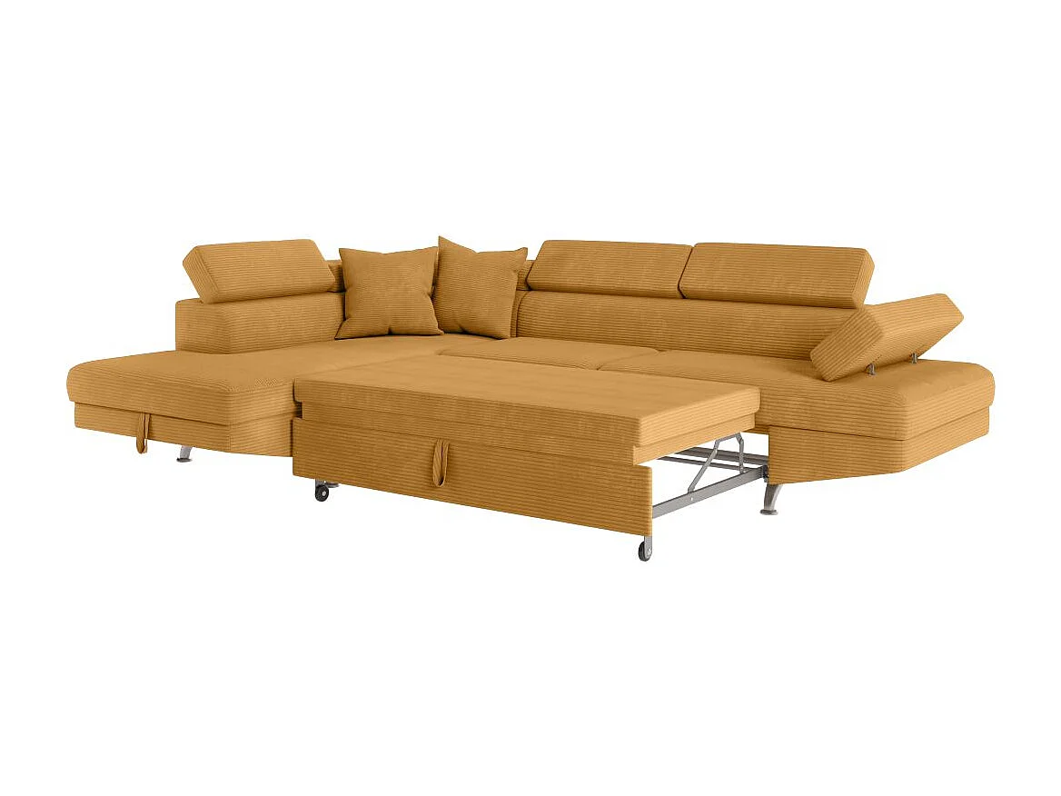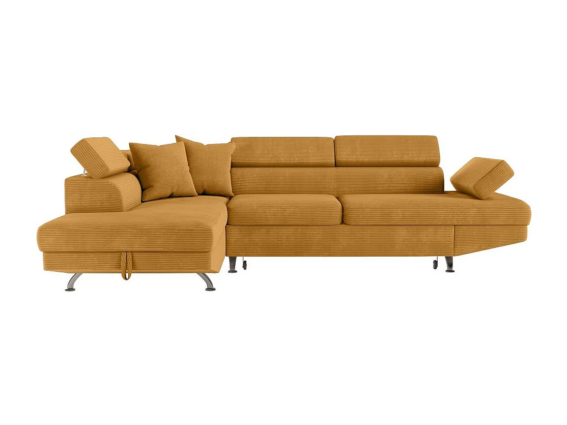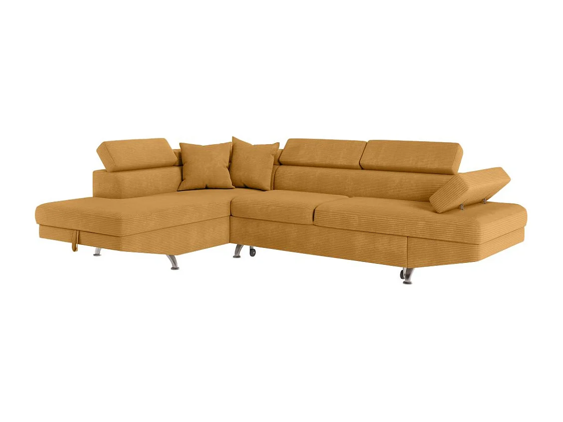 Canapé d'angle gauche convertible RIO 5 places avec coffre de rangement en velours côtelé - Jaune