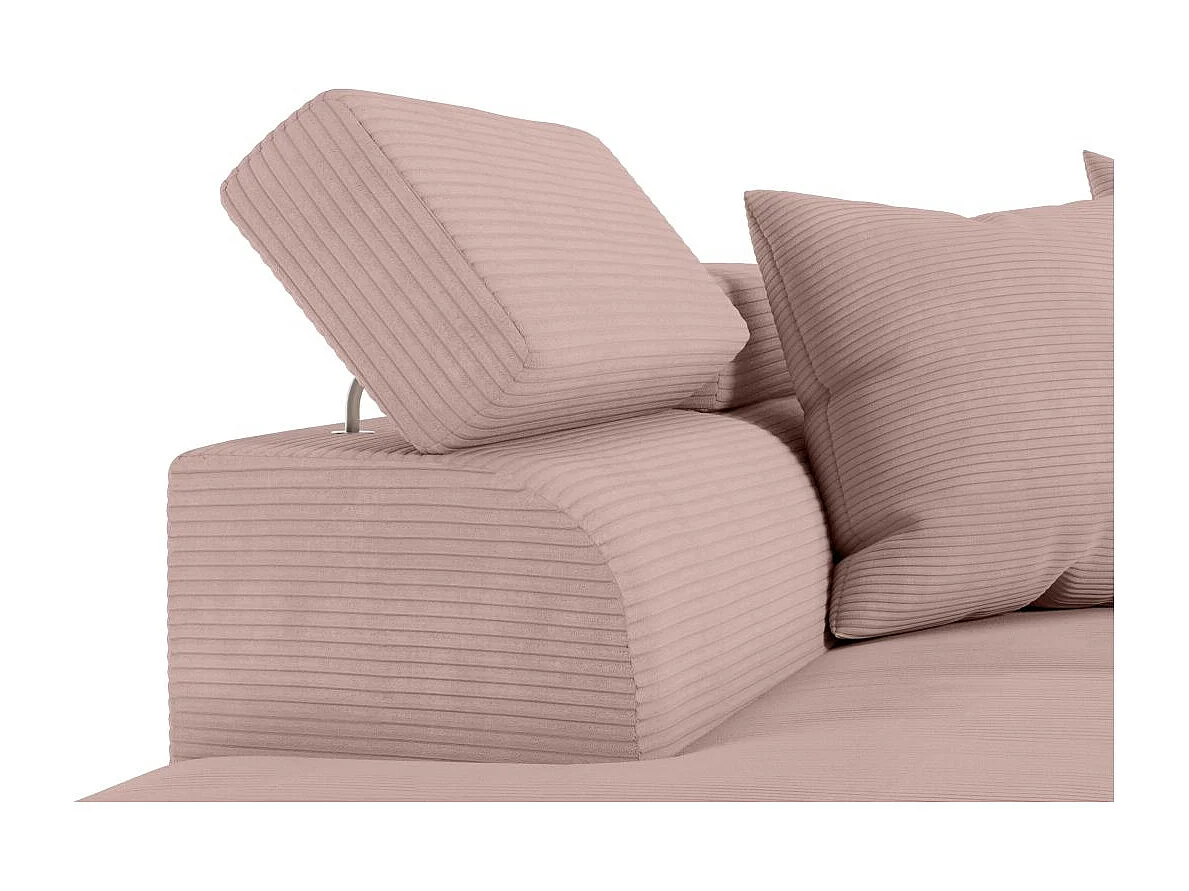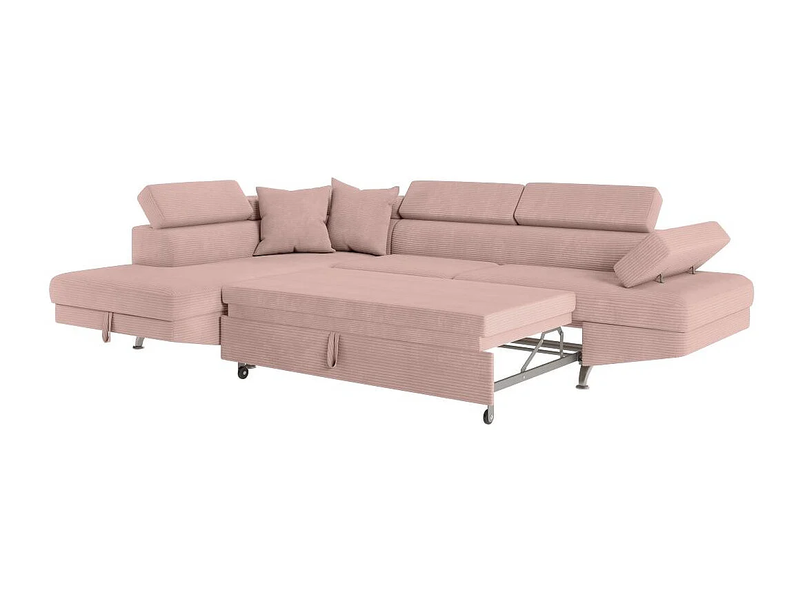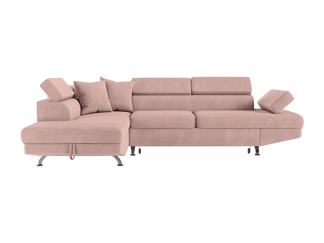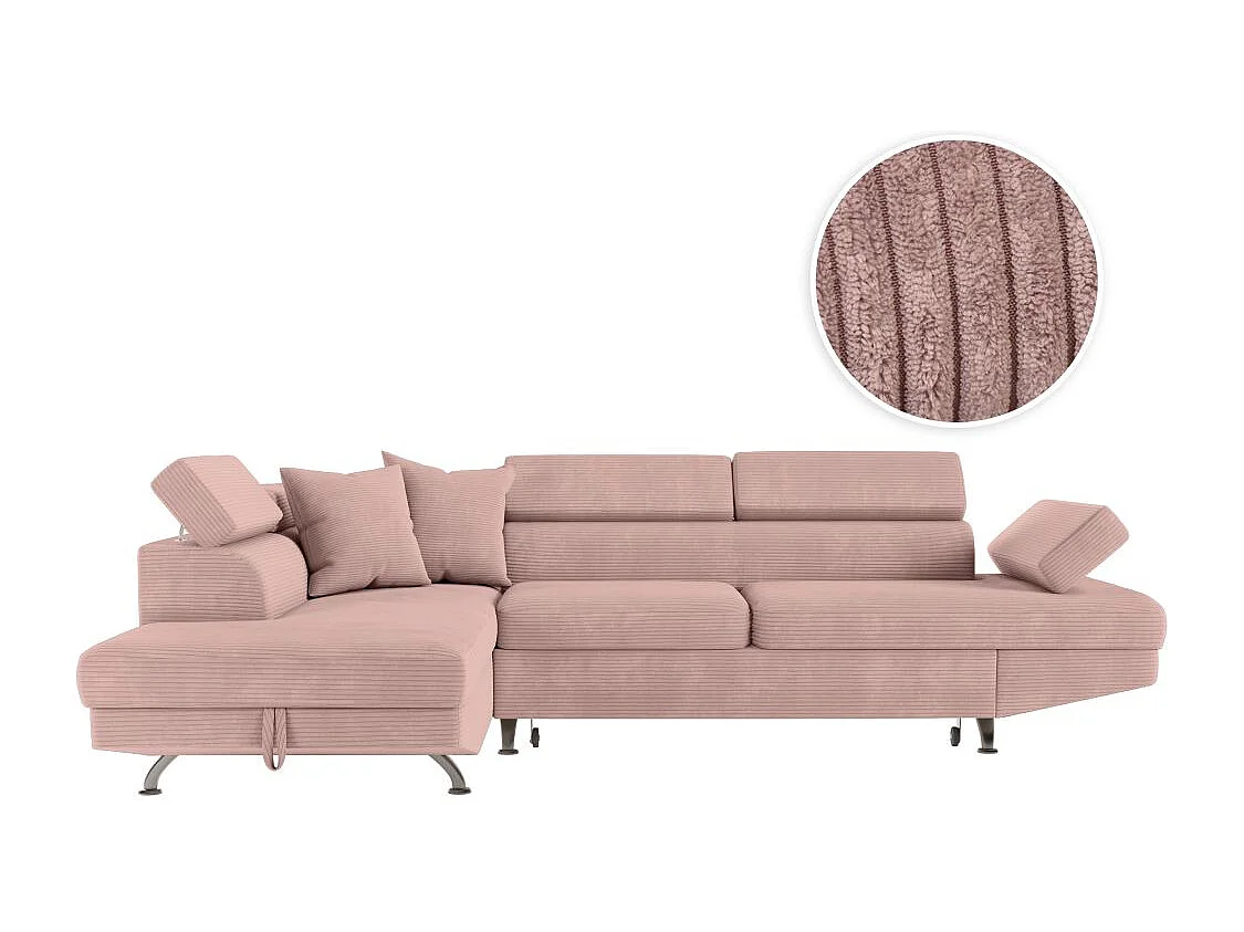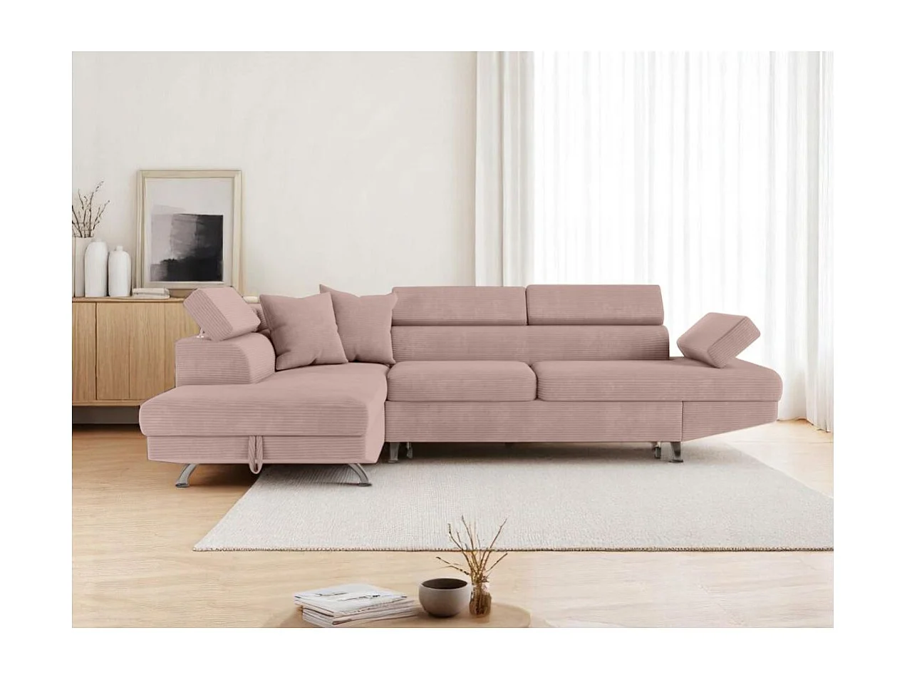 Canapé d'angle gauche convertible RIO 5 places avec coffre de rangement en velours côtelé vieux rose