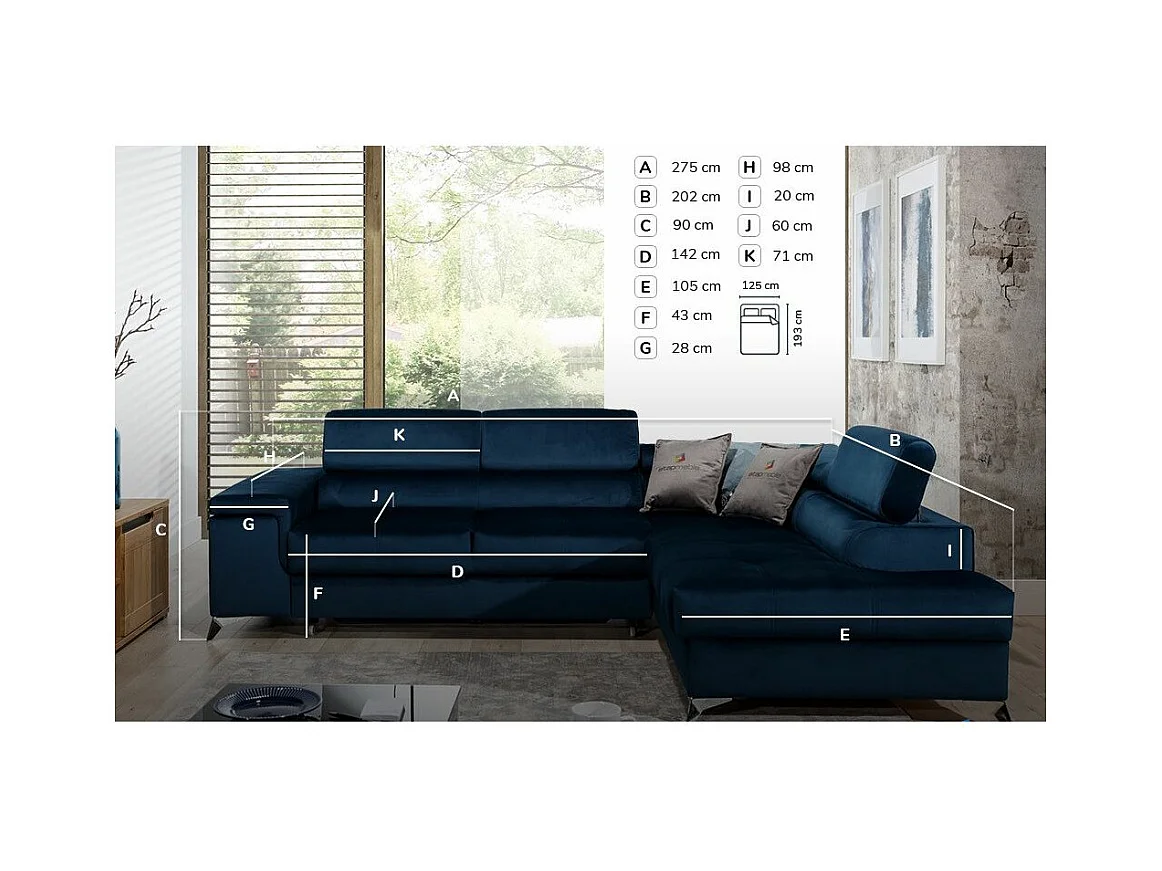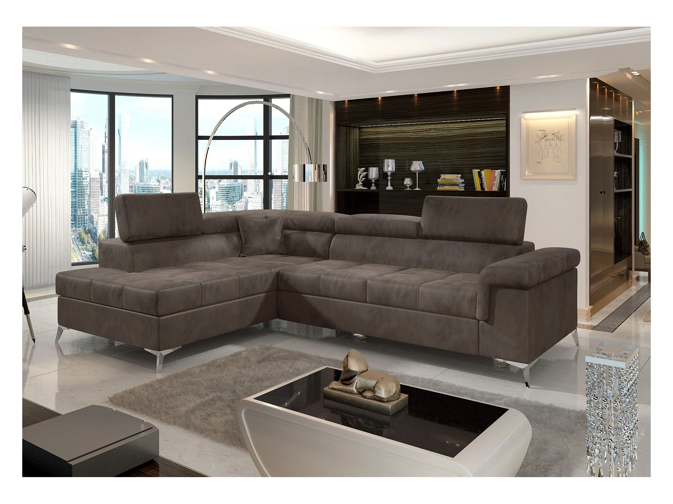 Canapé d'angle gauche convertible velours marron Marido 275cm