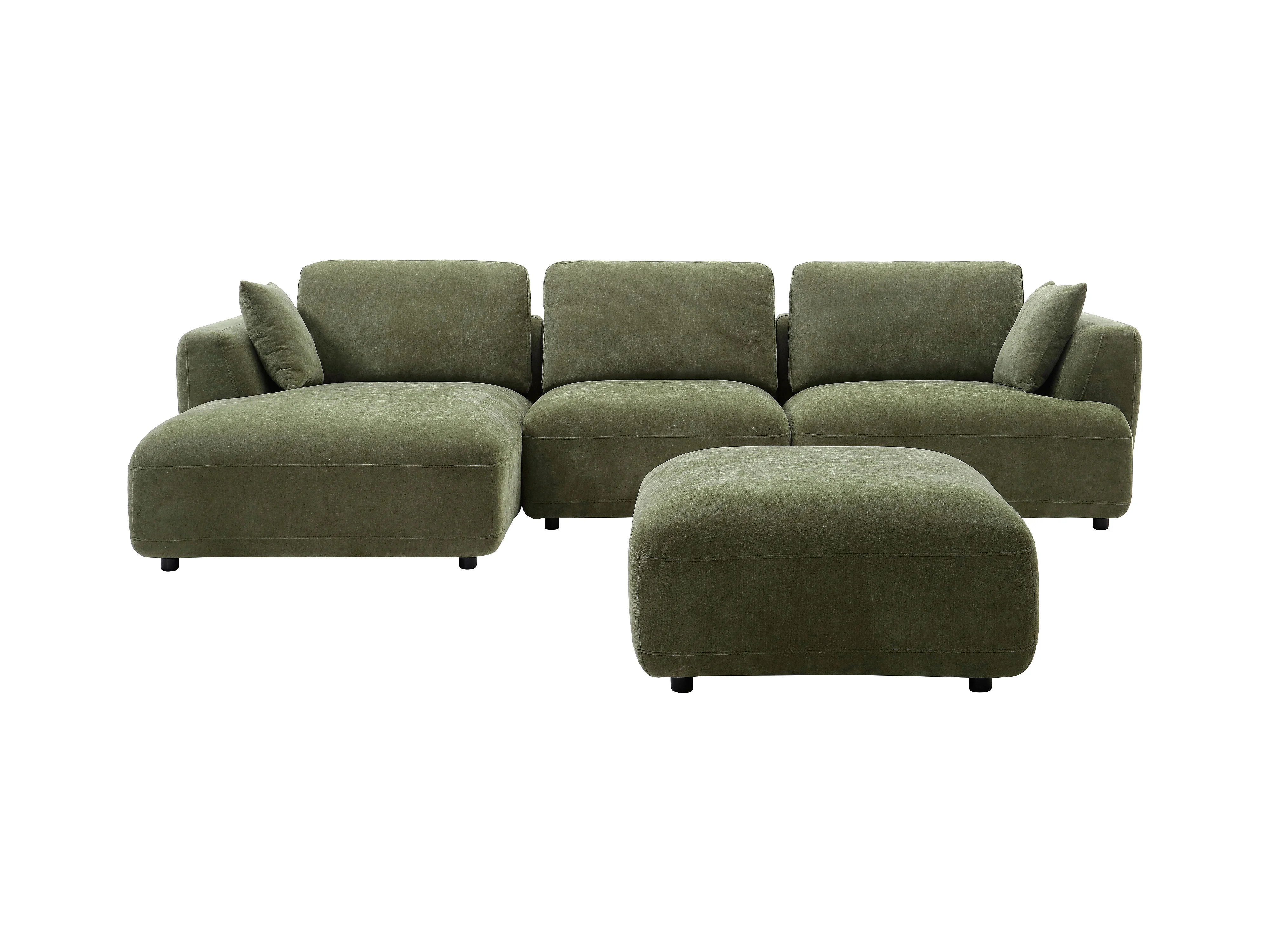 Canapé d'angle gauche et pouf en tissu vert TINDRALO