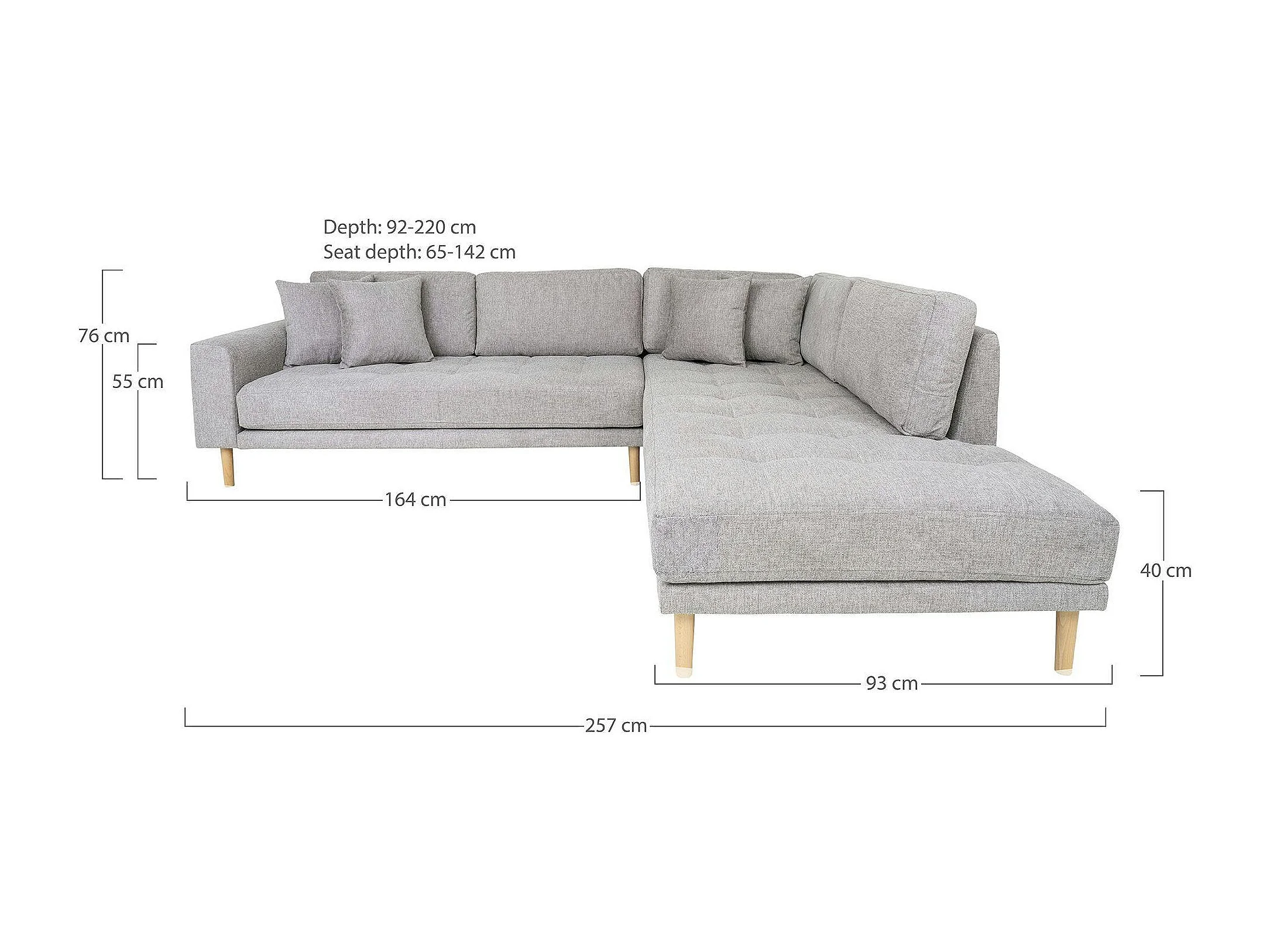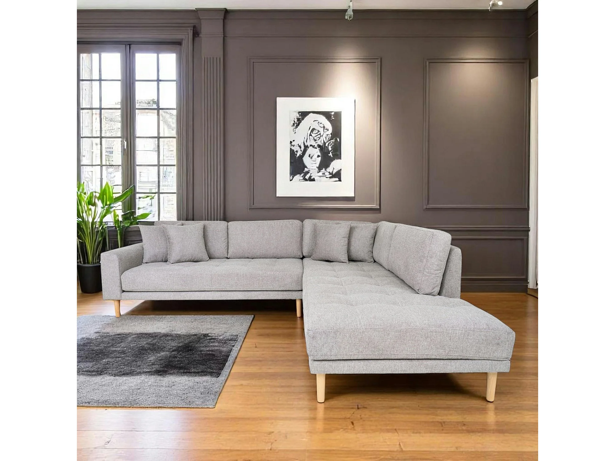 Canapé d'angle gris clair - pieds bois, côté droit AMSTERDAM