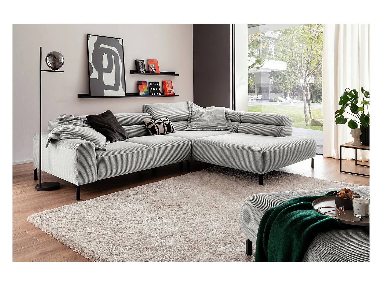 Canapé d'angle - gris clair Velours côtelé - DELIA