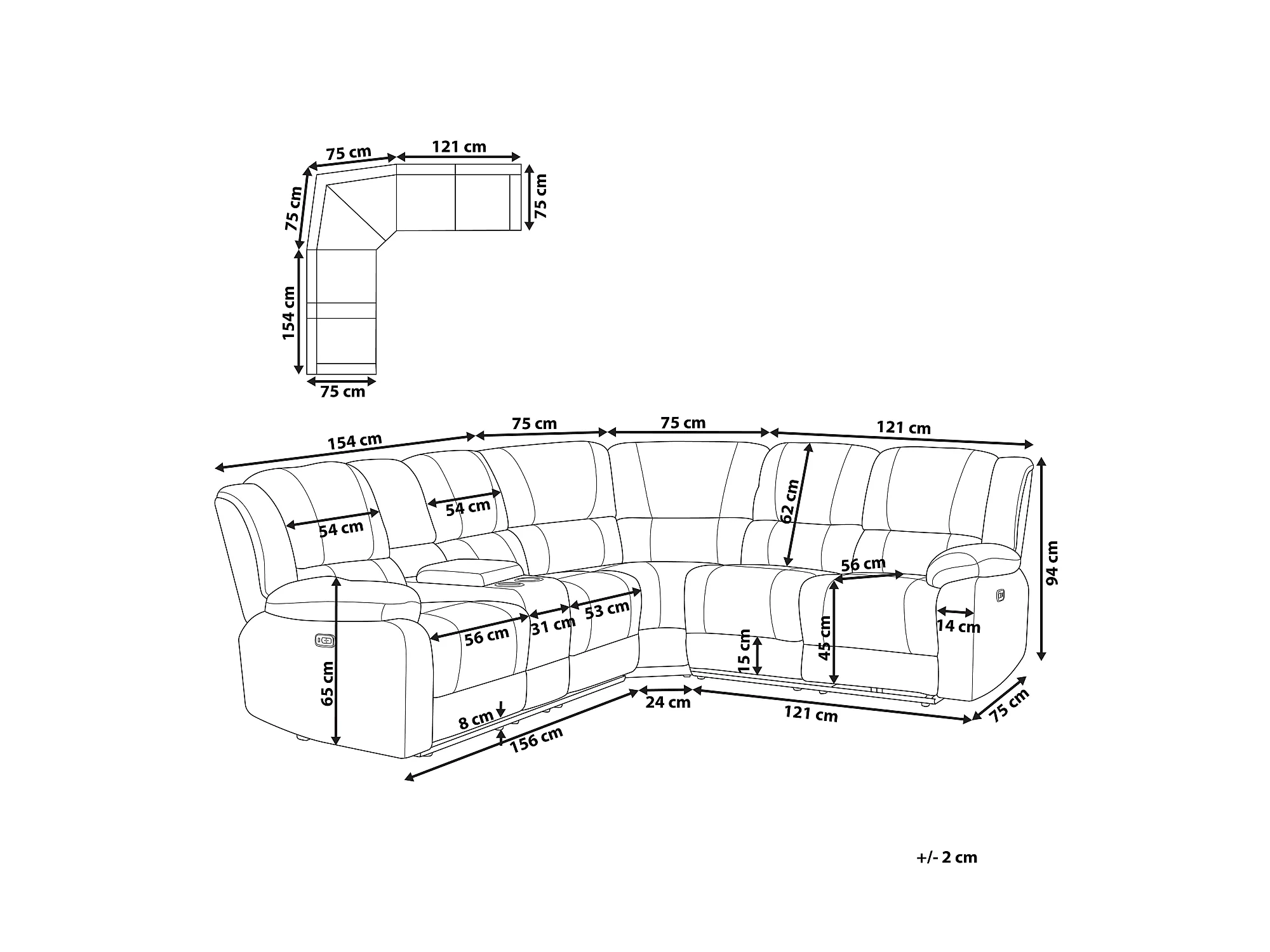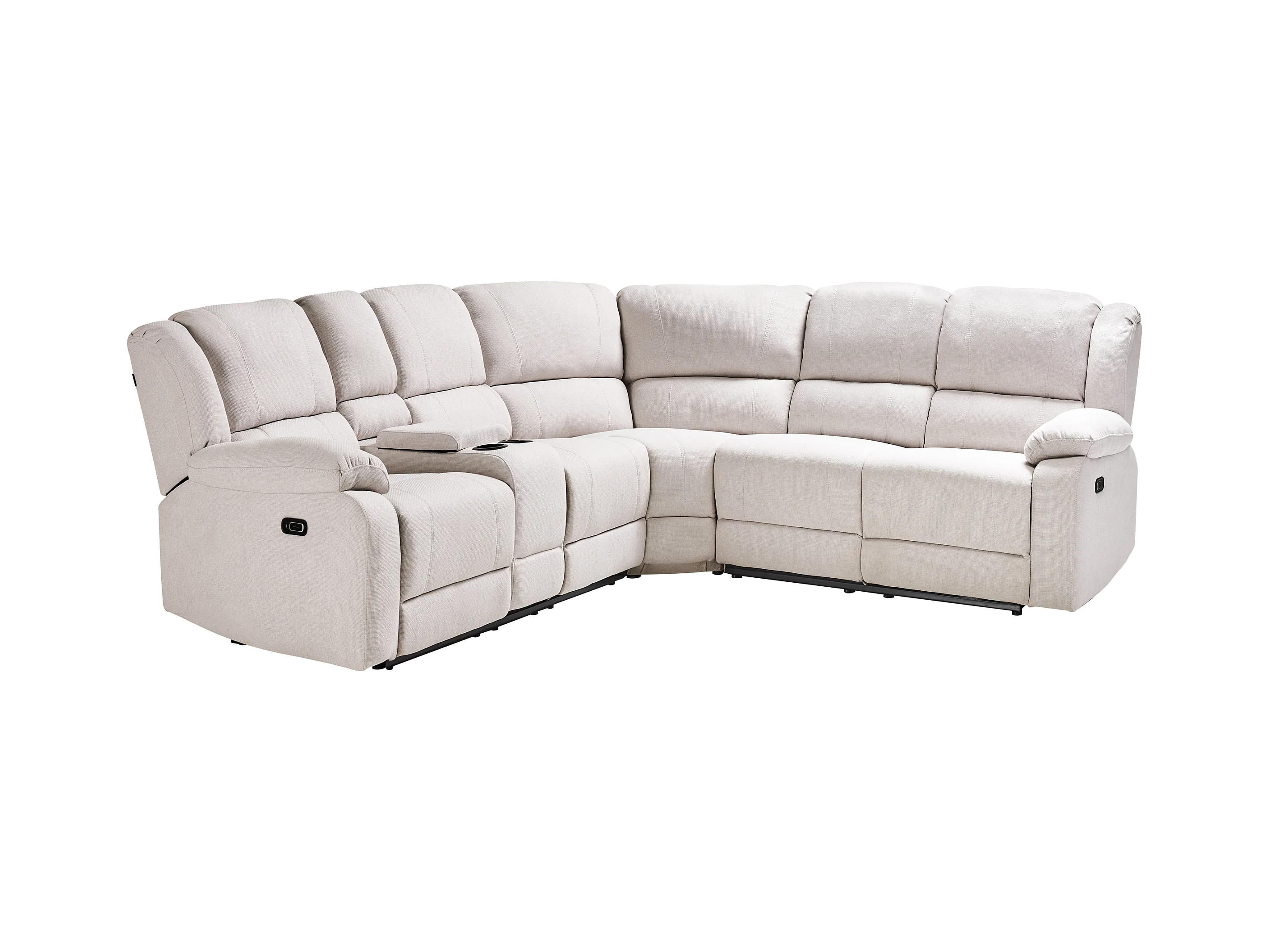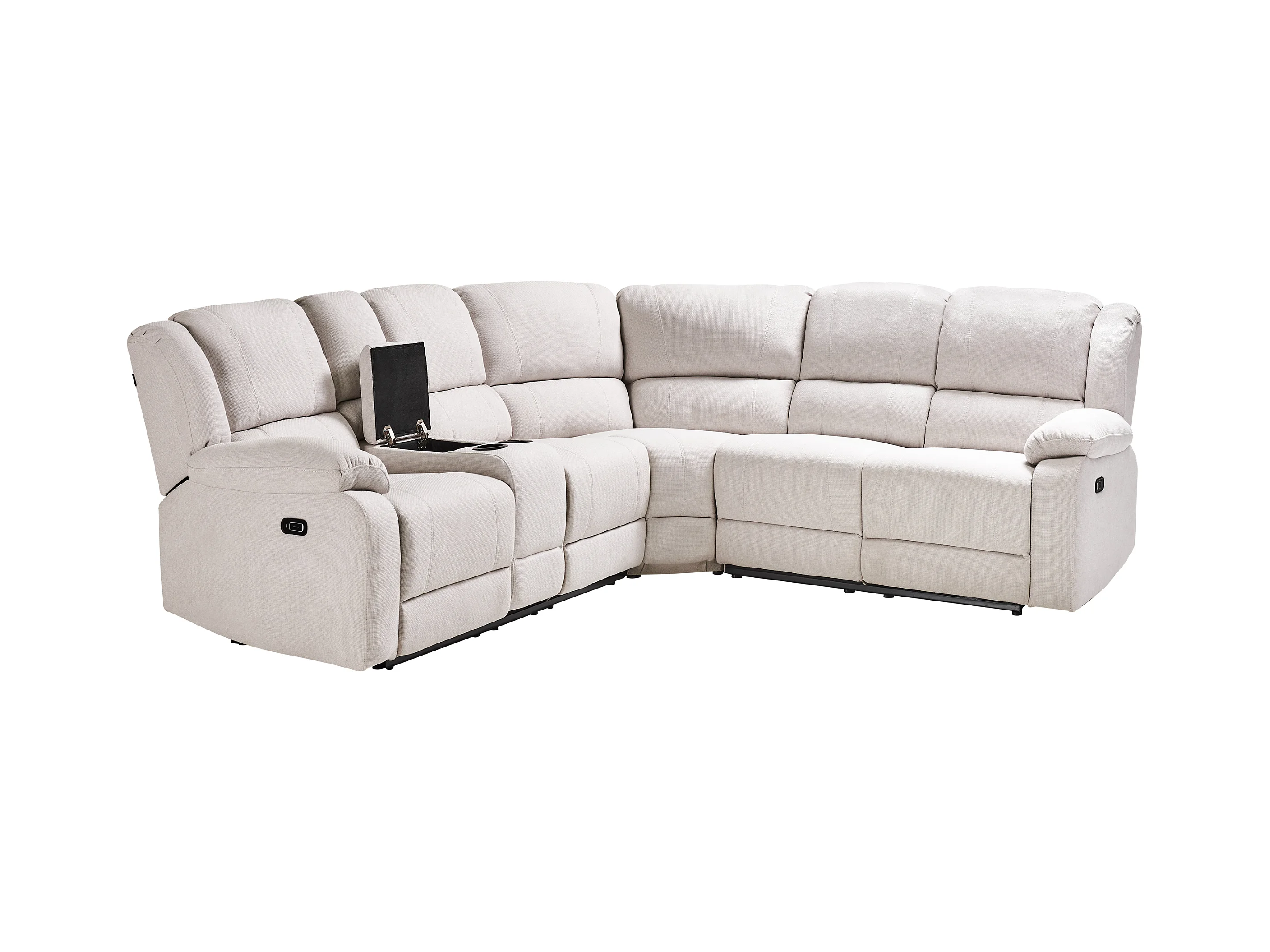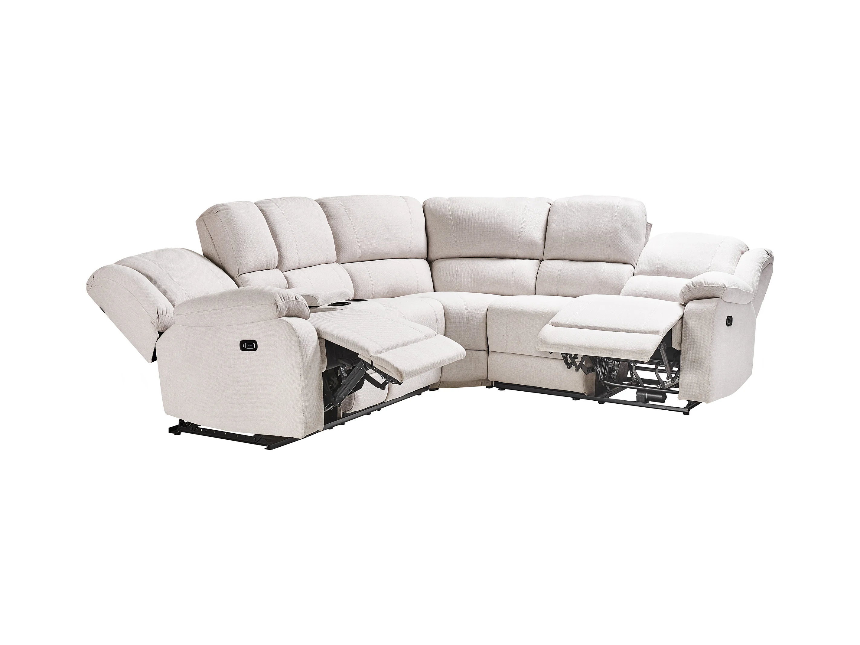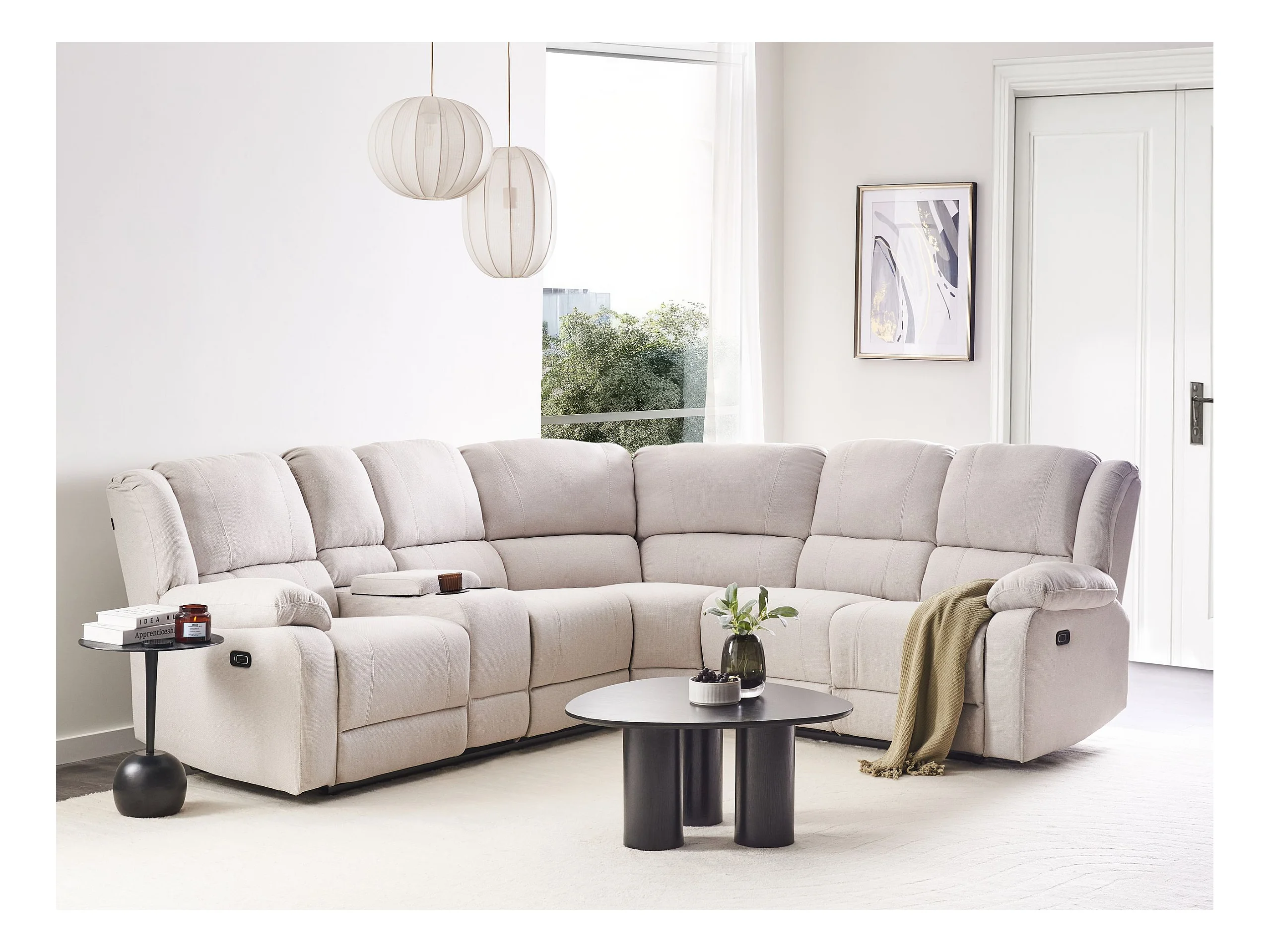 Canapé d'Angle Inclinable Électriquement en Tissu 5 Places avec Porte-Gobelets Chargeur USB Beige Clair Rokke