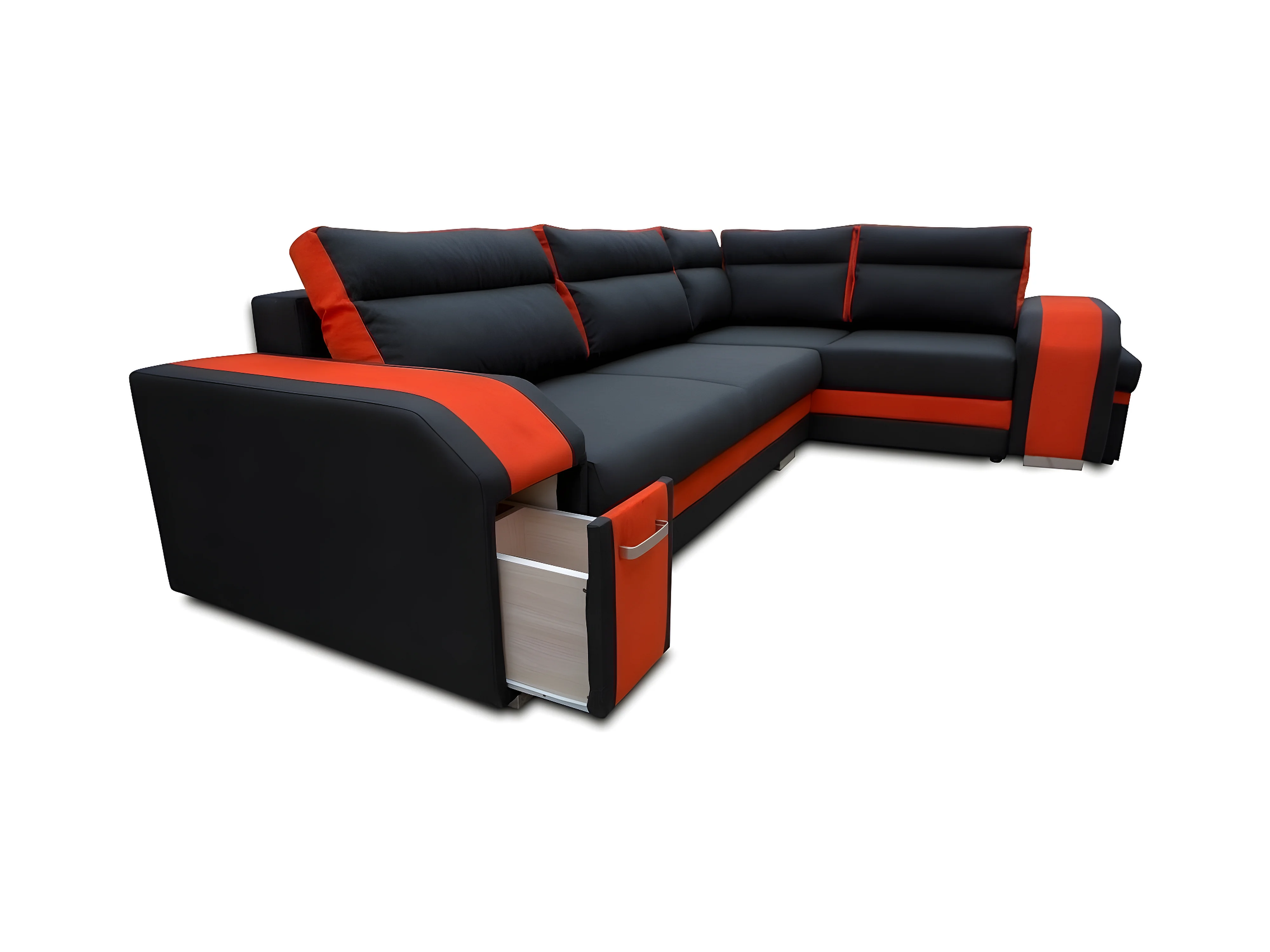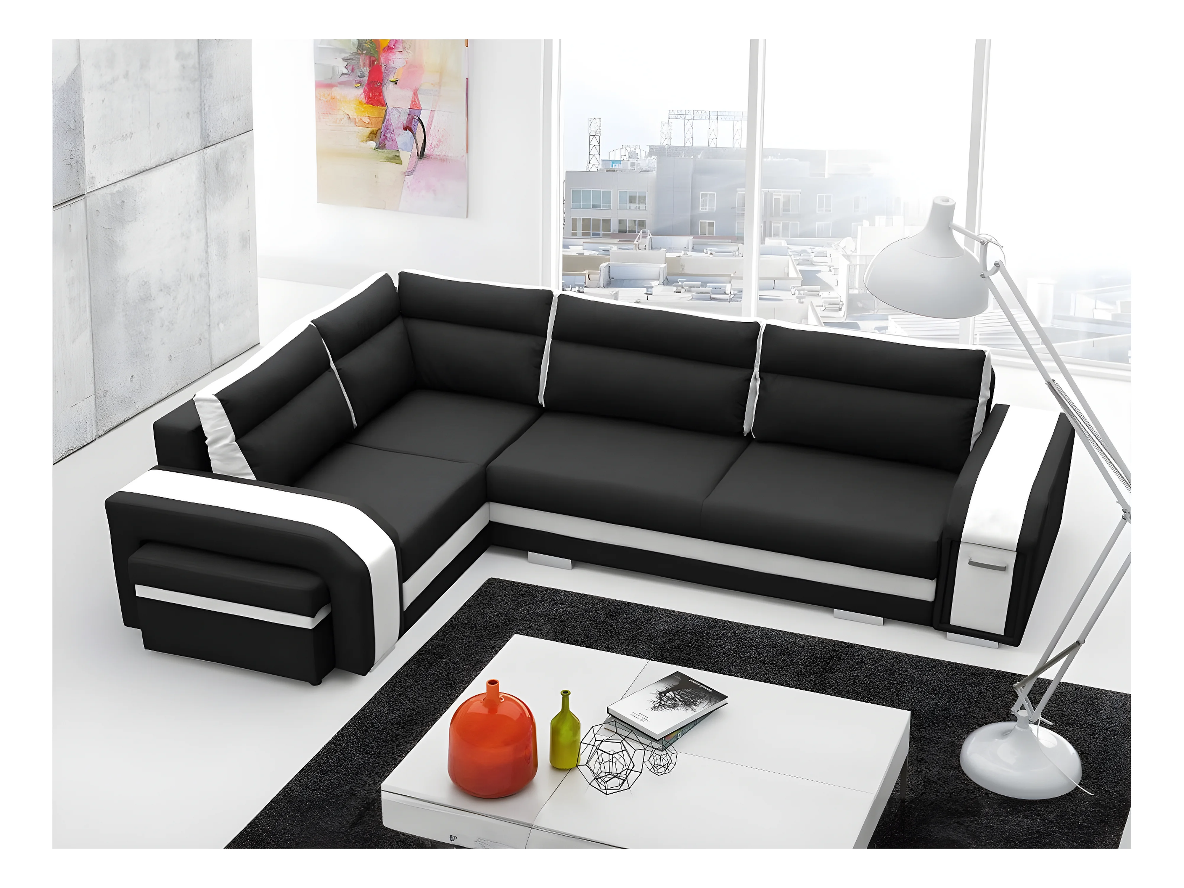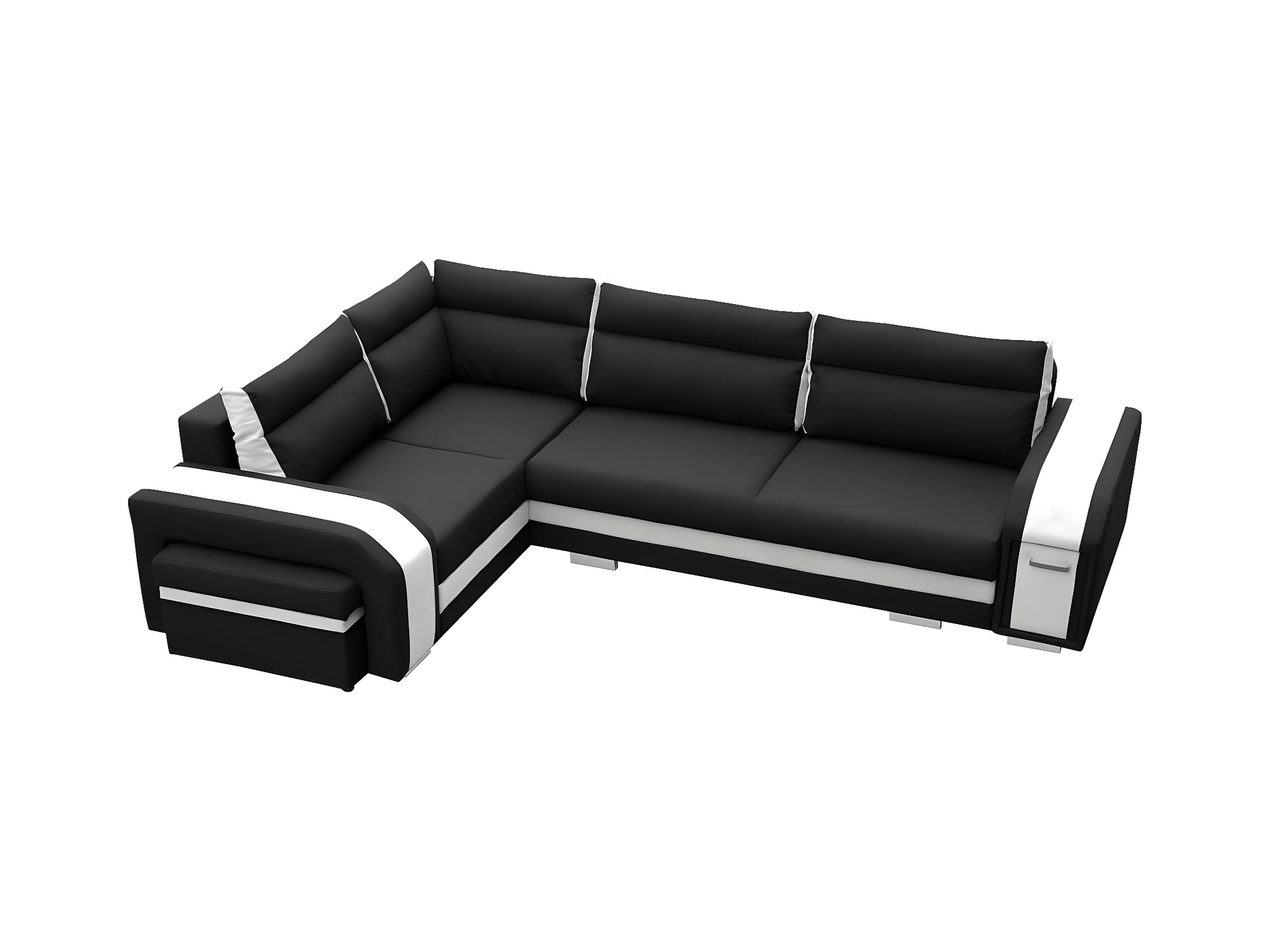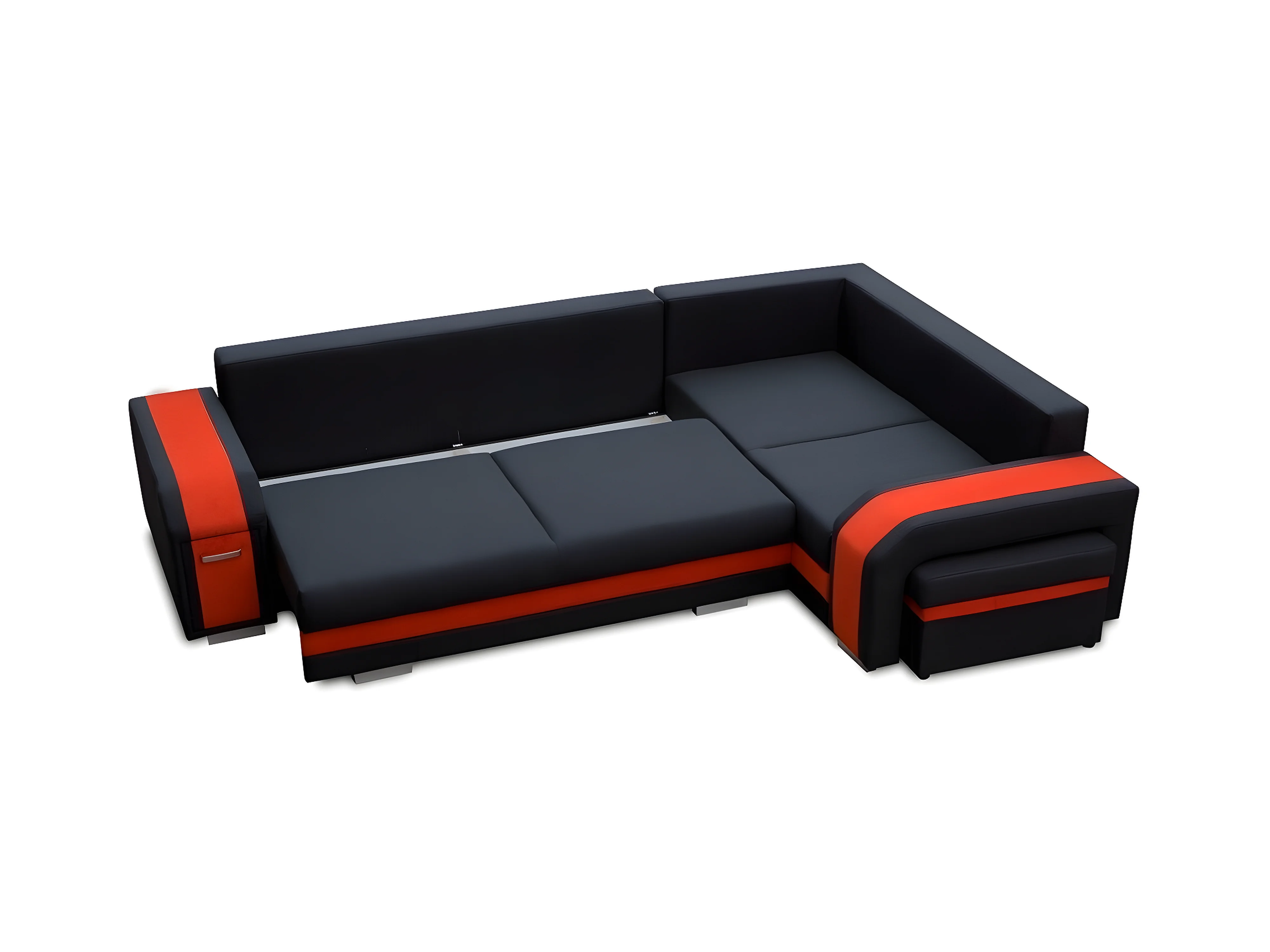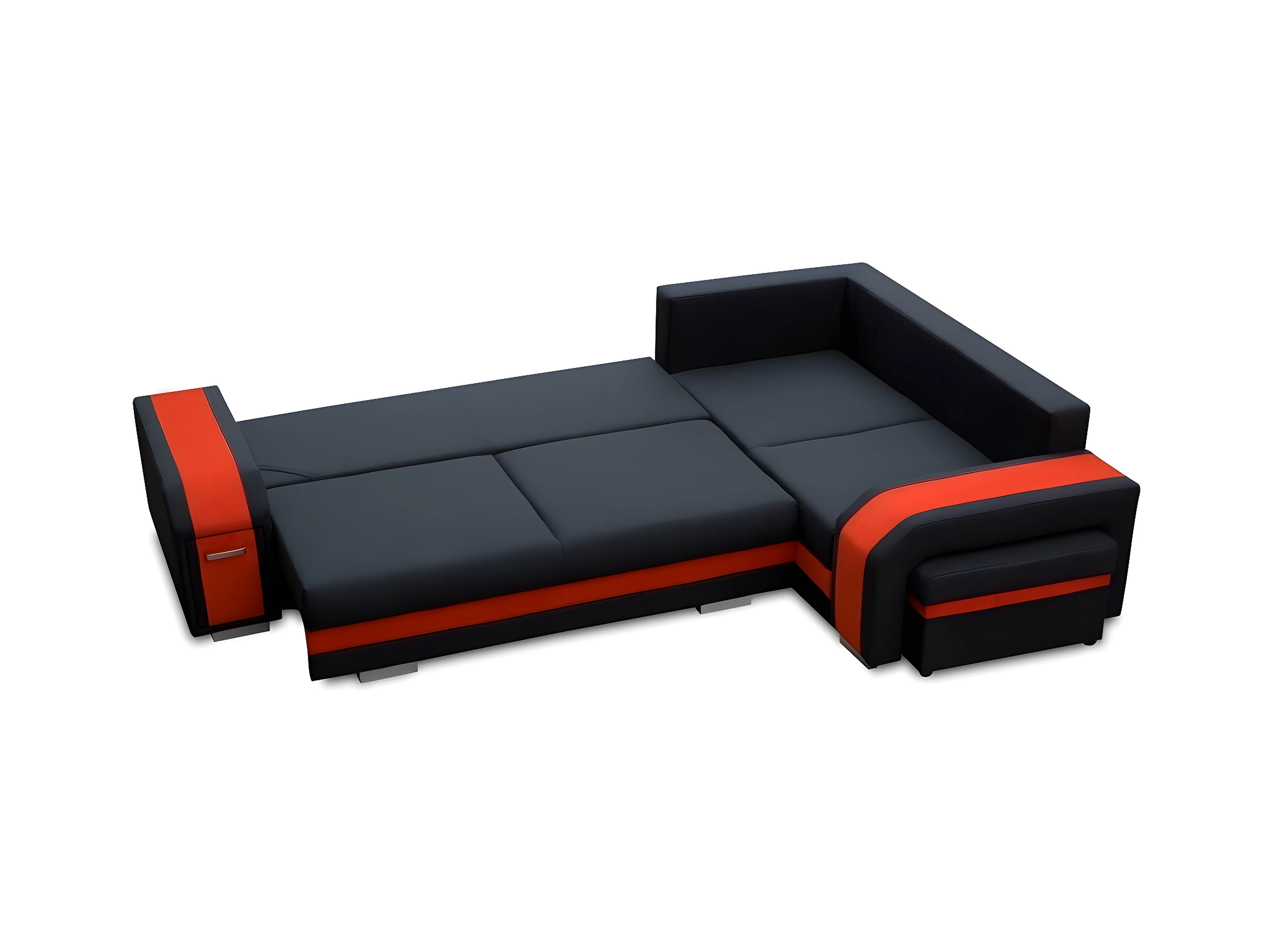 Canapé d'angle Kingsport 100, Noir, Fonction de couchage, Boîte de literie, 300x200x90cm