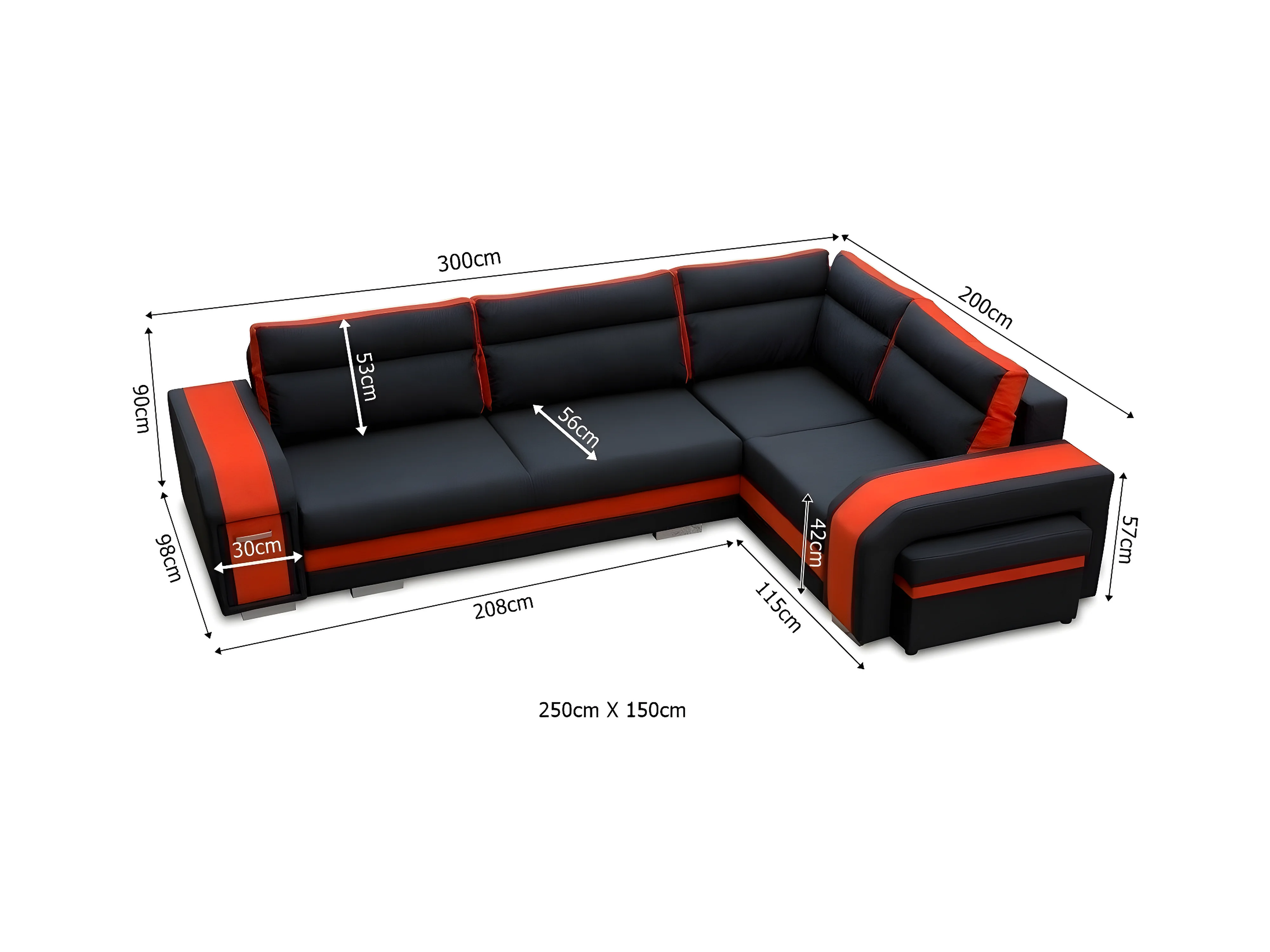 Canapé d'angle Kingsport 100, Noir, Fonction de couchage, Boîte de literie, 300x200x90cm