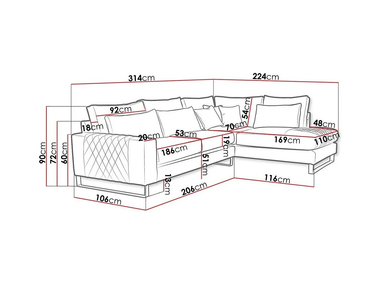 Canapé d'angle Kingsport 112, Brun clair, 314x224x90cm