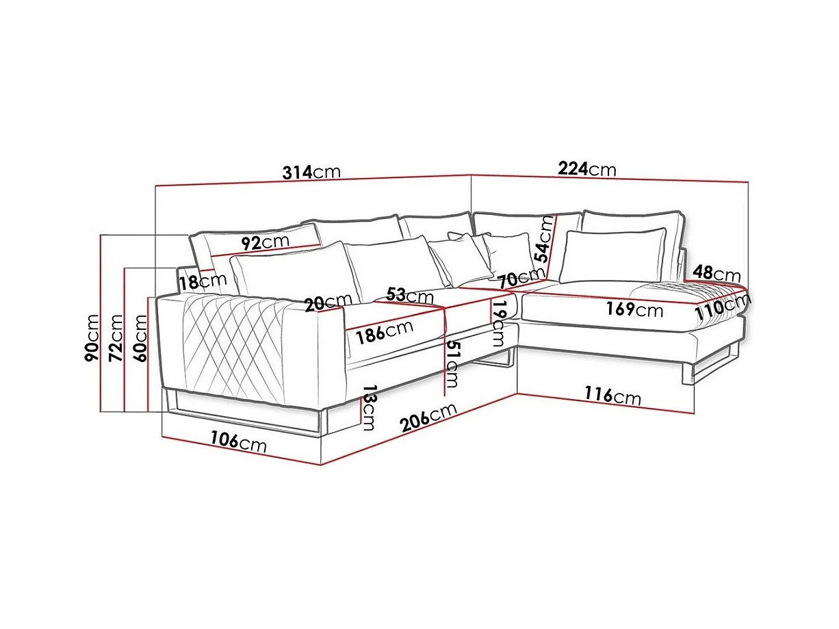 Canapé d'angle Kingsport 112, Marron, 314x224x90cm
