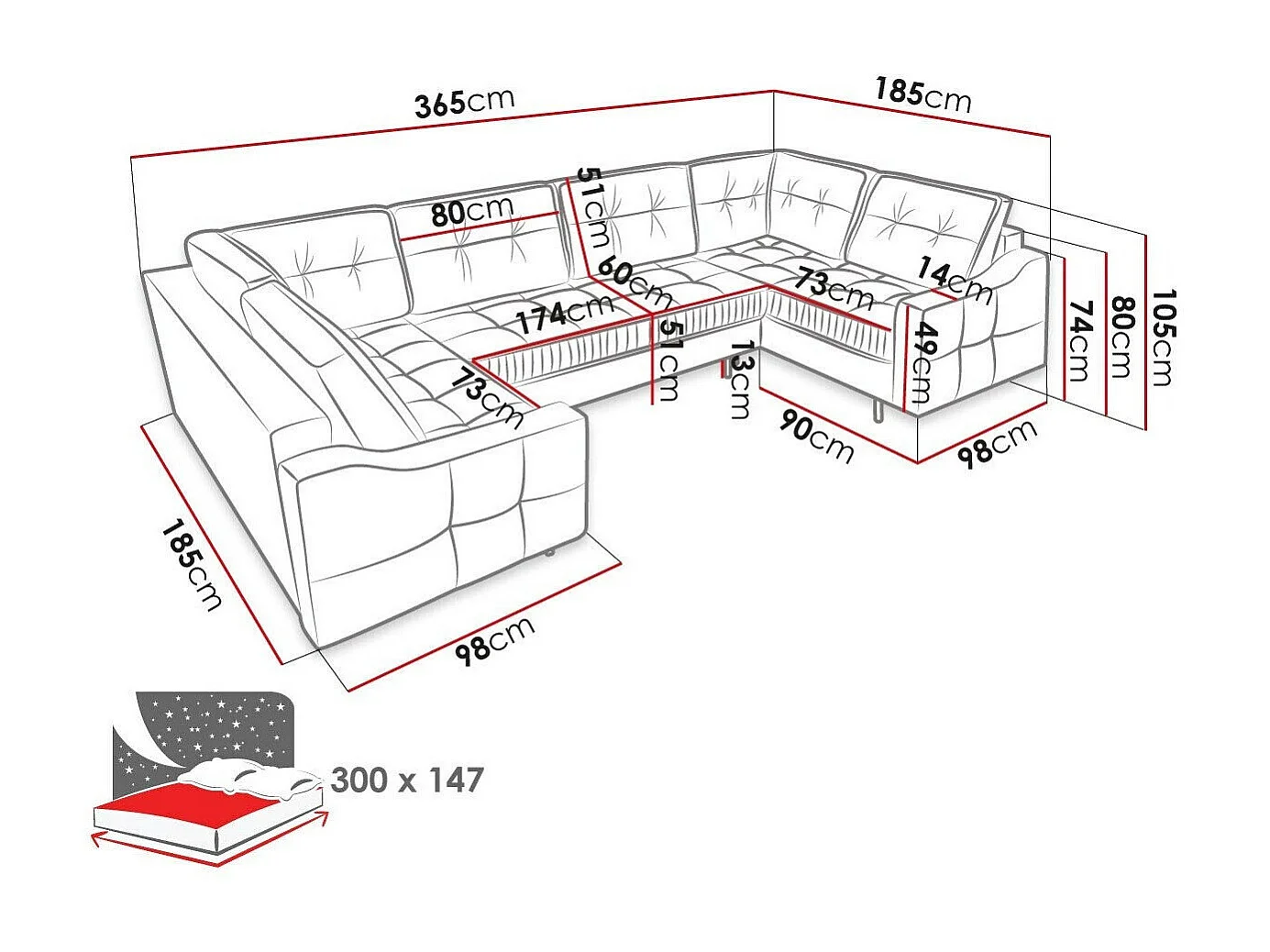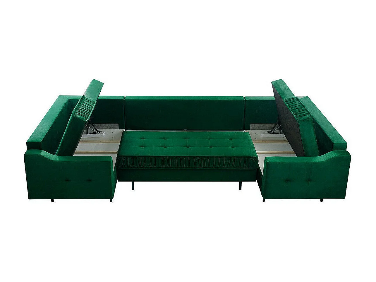 Canapé d'angle Kingsport 114, Bleu, Fonction de couchage, Boîte de literie, 365x185x105cm