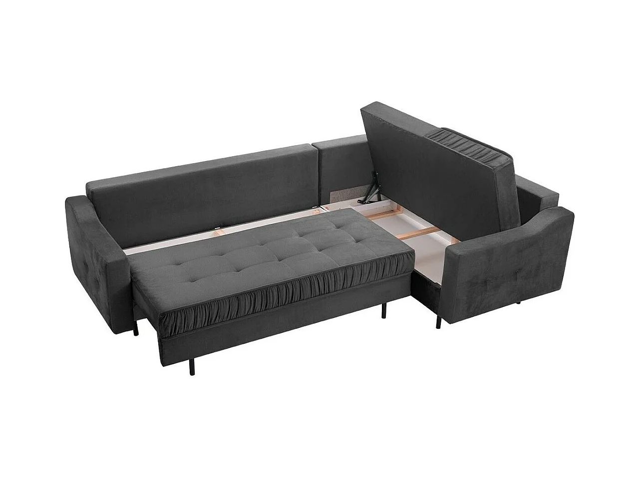 Canapé d'angle Kingsport 115, Vert, Fonction de couchage, Boîte de literie, 289x185x105cm