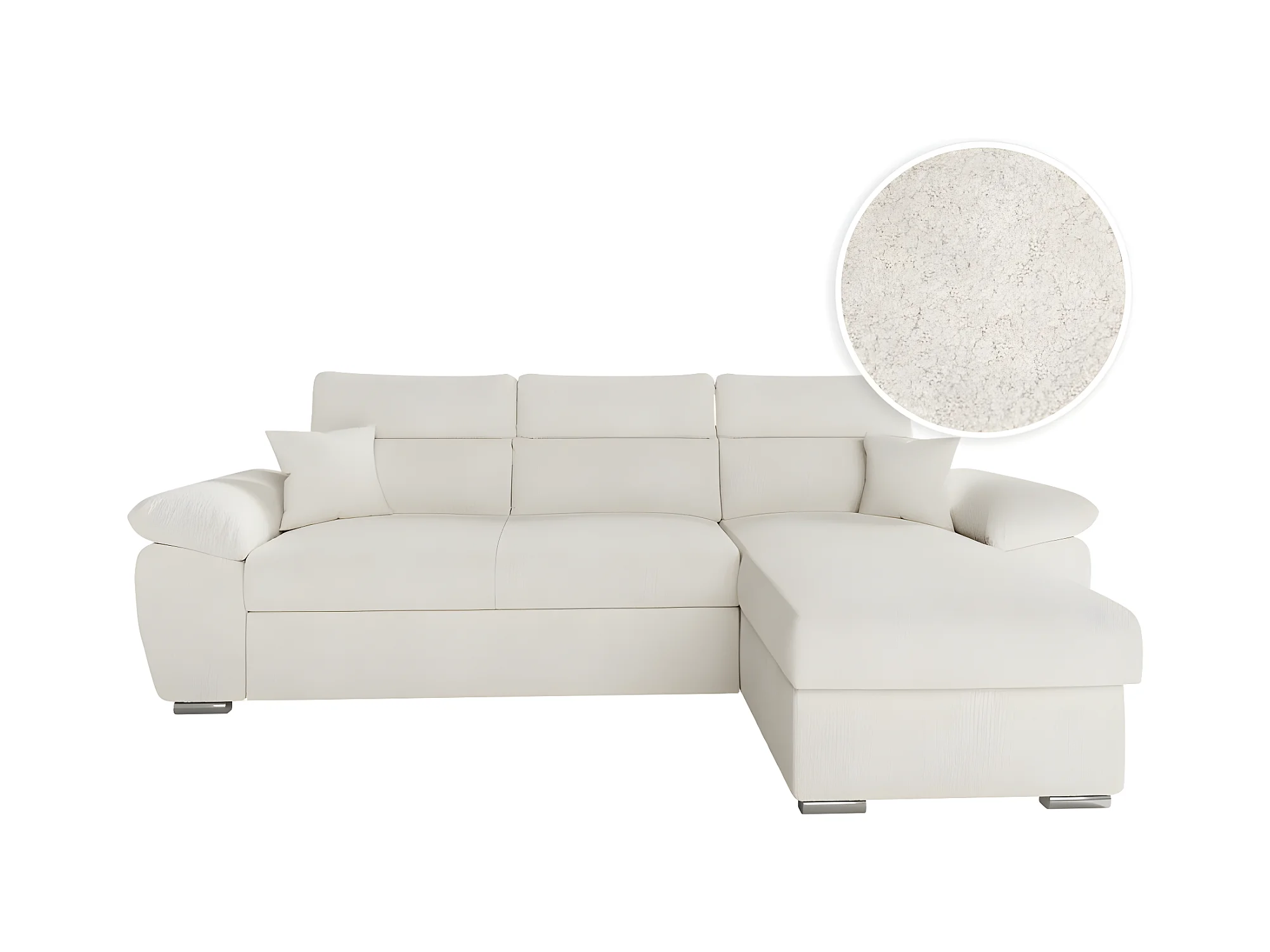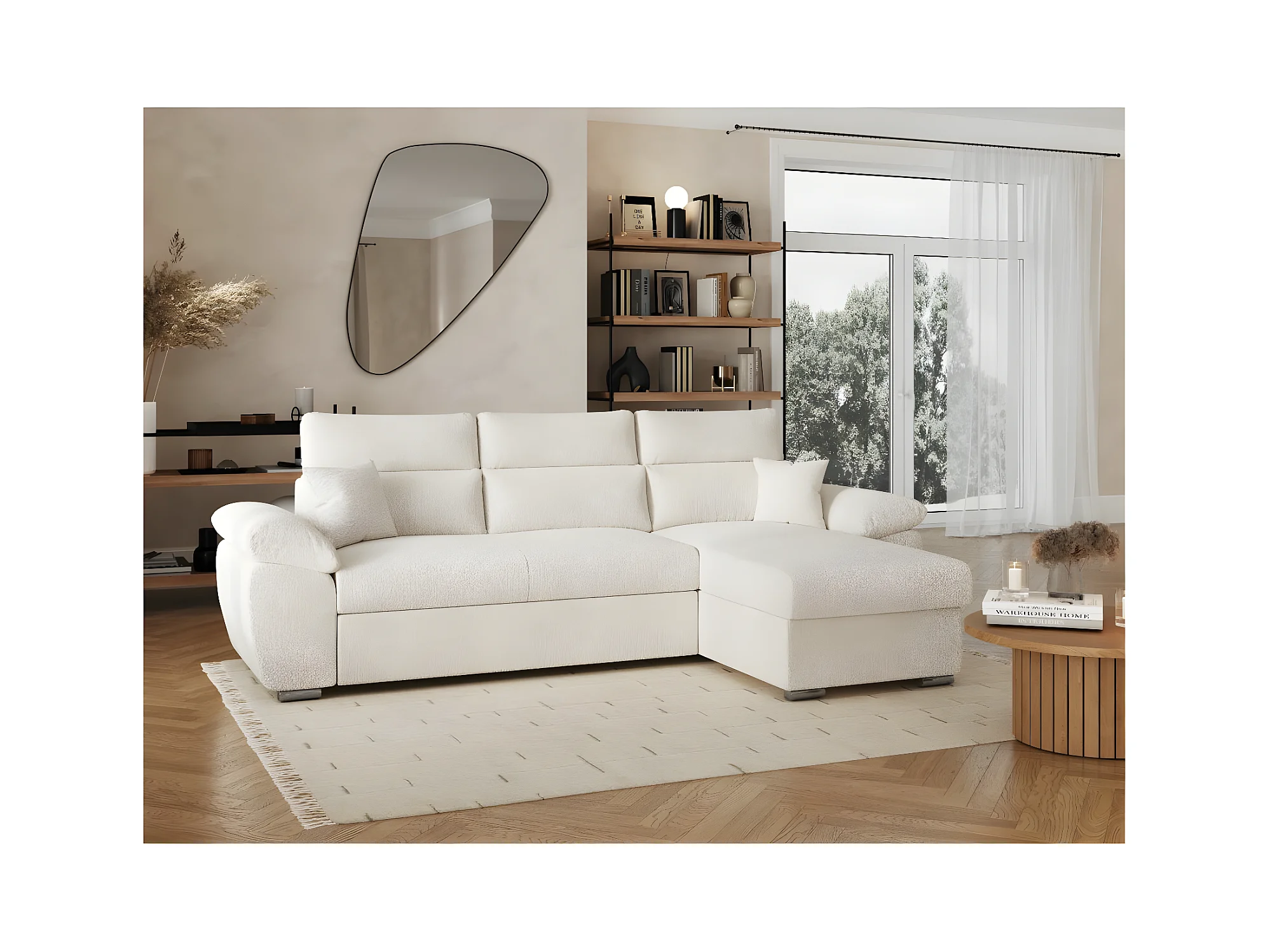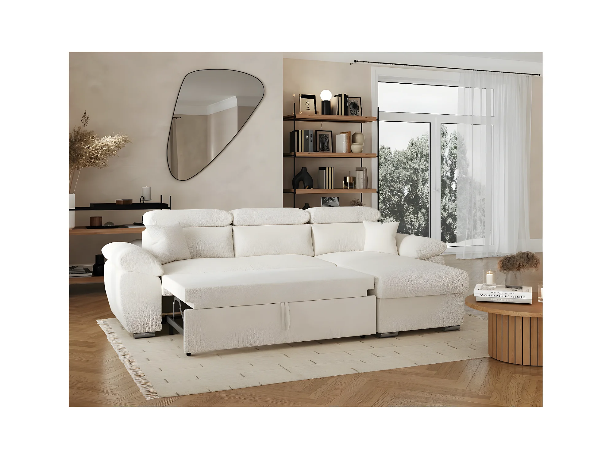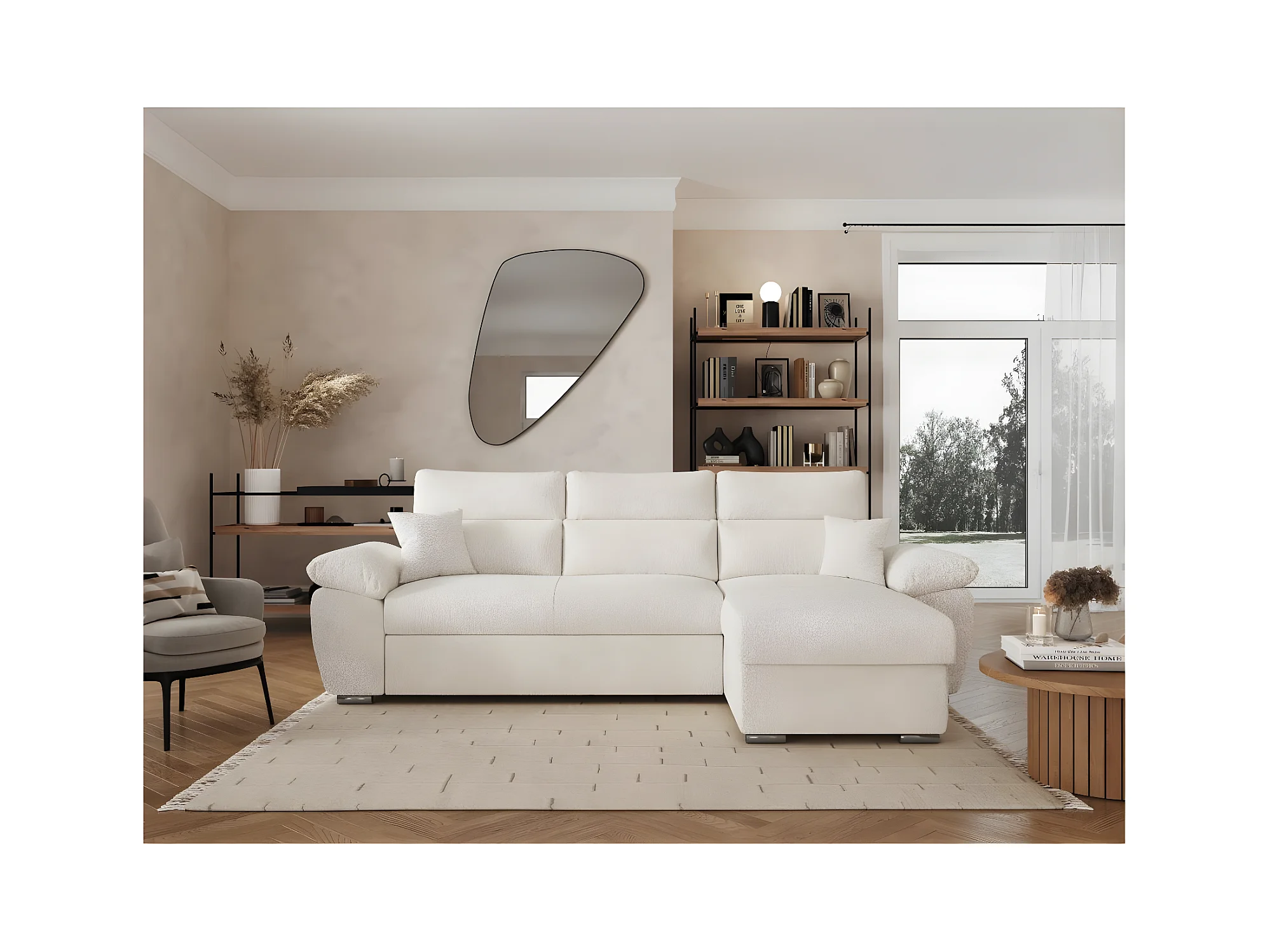 Canapé d'angle 4 places Komeco réversible convertible avec coffre en tissu bouclette - Blanc - L265 x P166 x H91cm - Loungitude