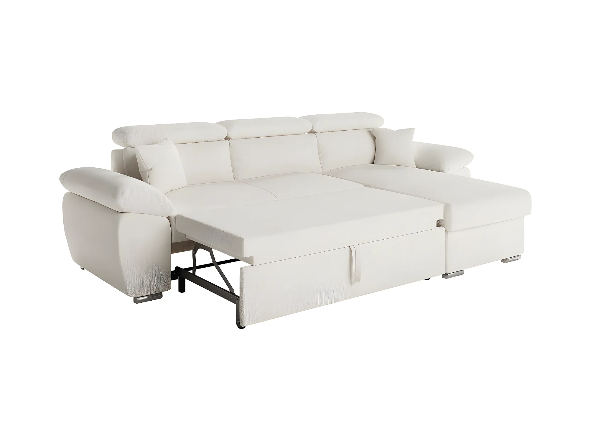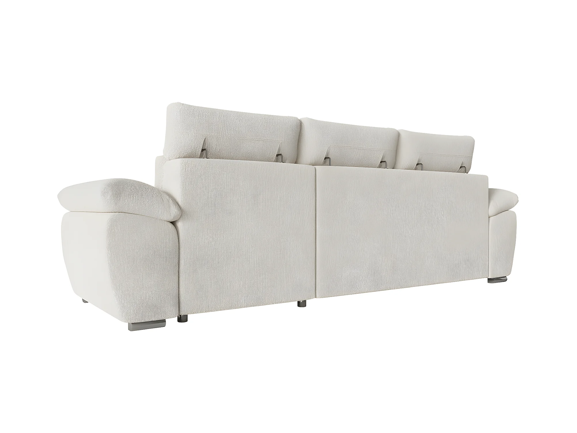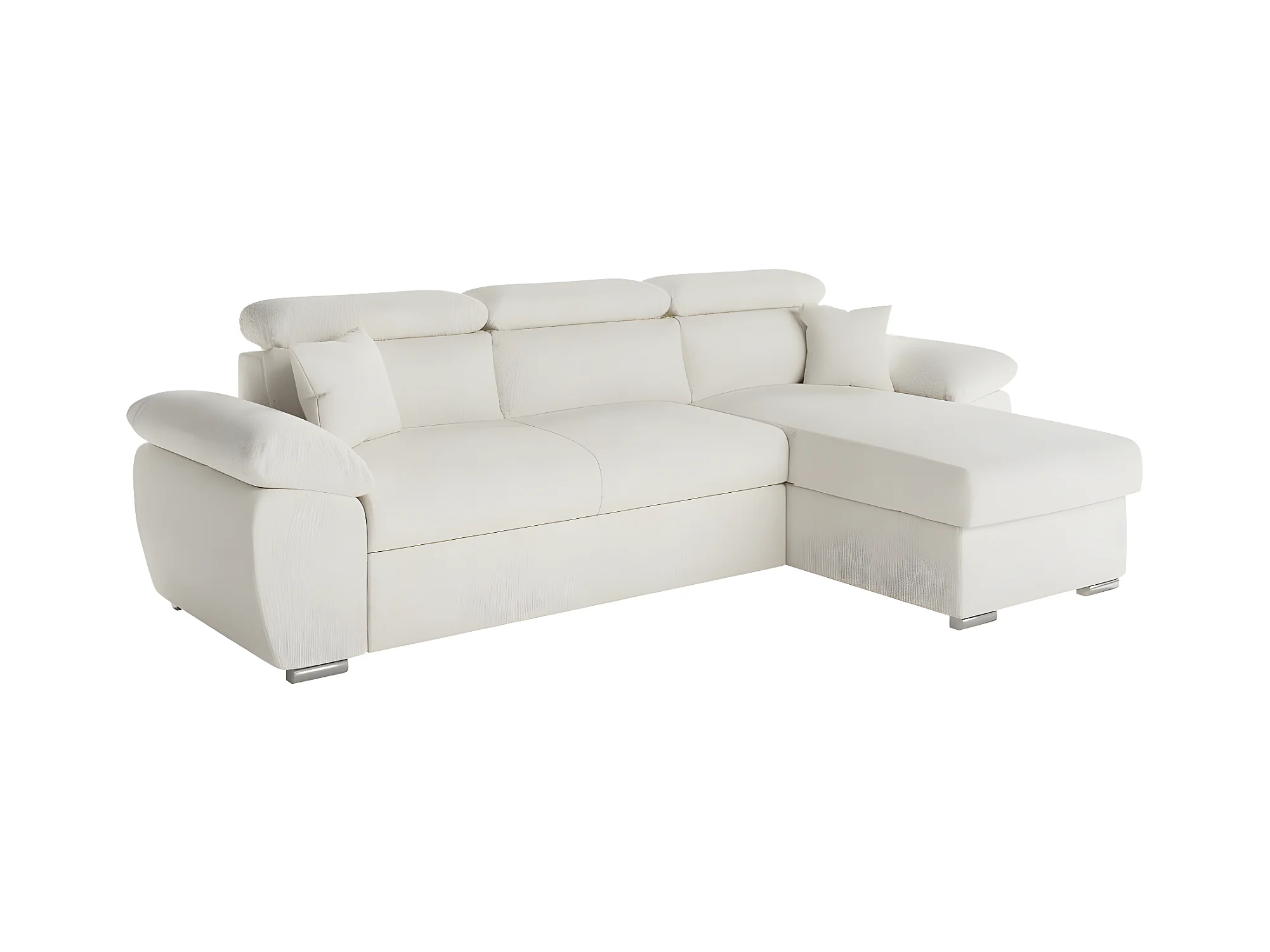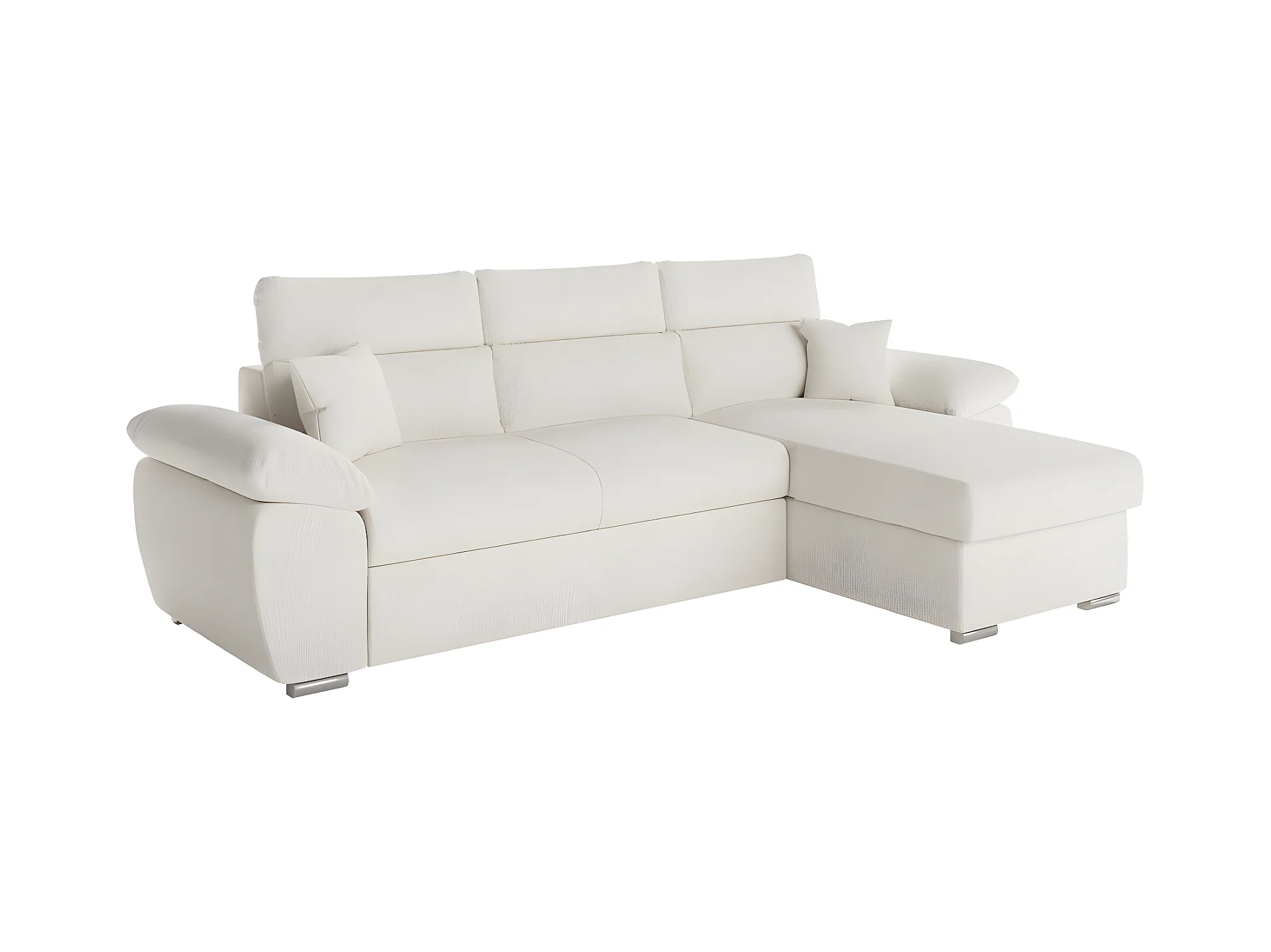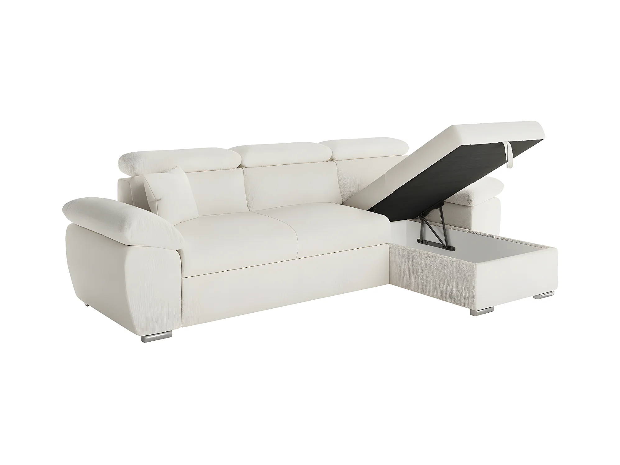 Canapé d'angle 4 places Komeco réversible convertible avec coffre en tissu bouclette - Blanc - L265 x P166 x H91cm - Loungitude