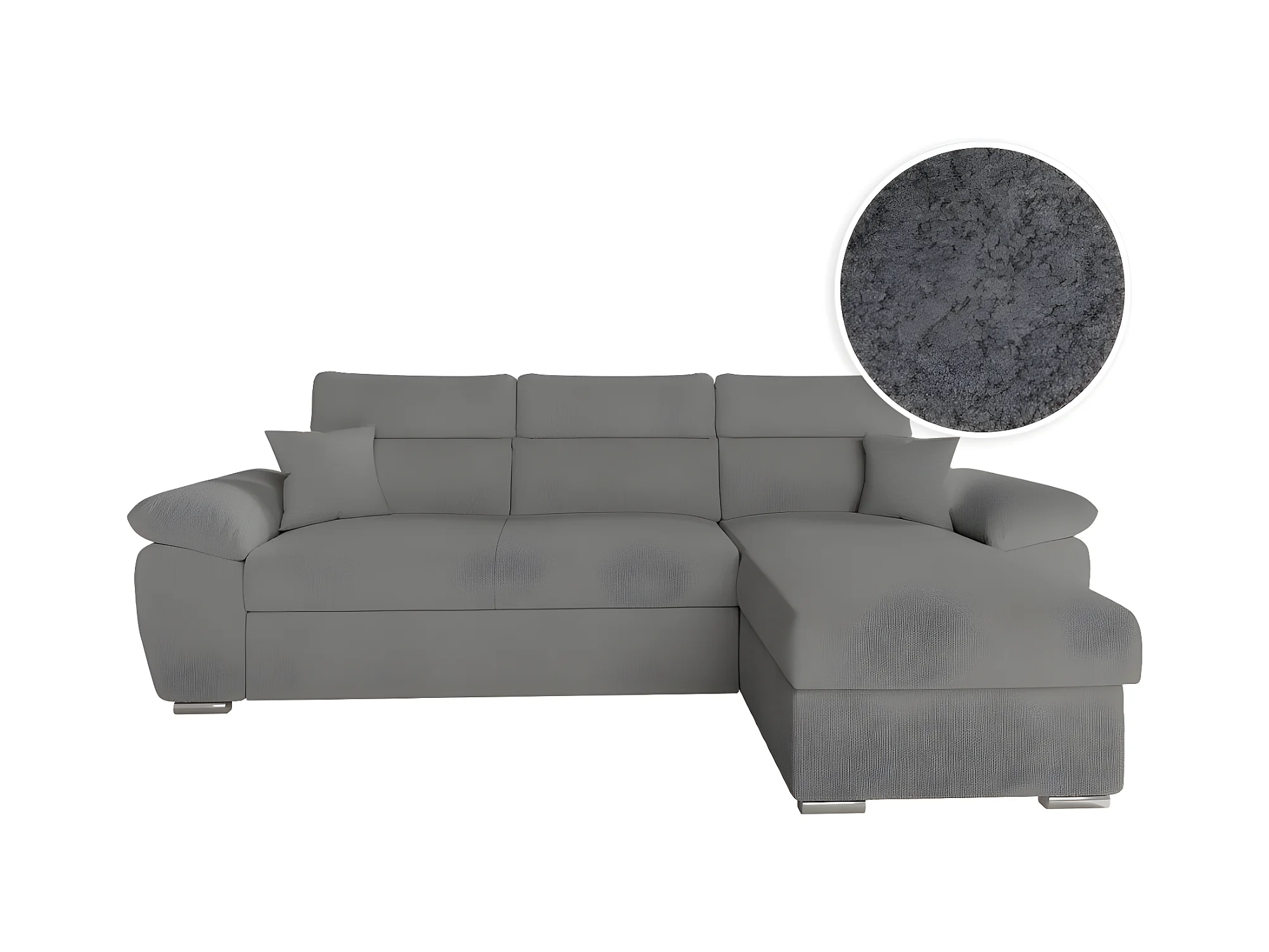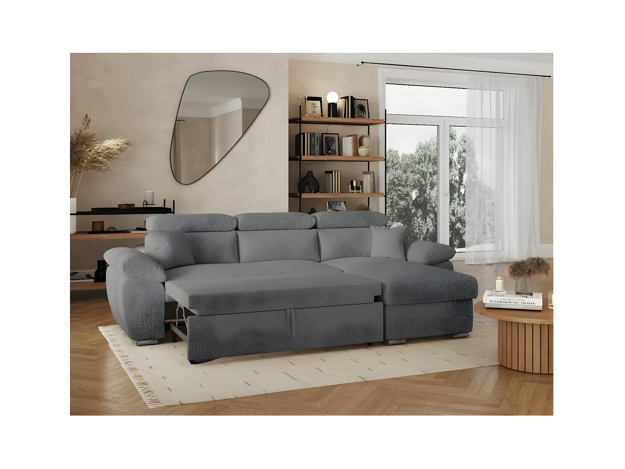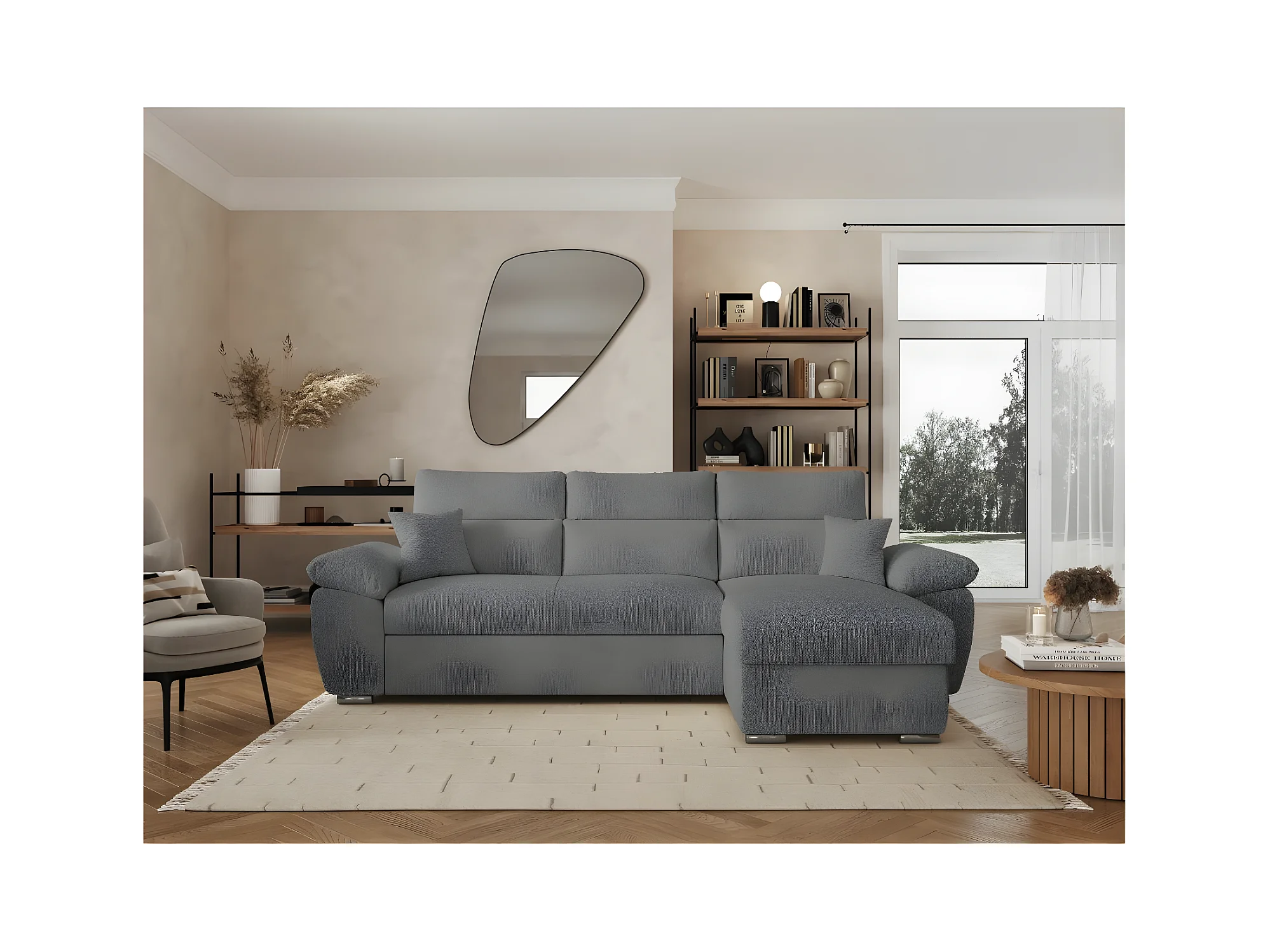 Canapé d'angle 4 places Komeco réversible convertible avec coffre en tissu bouclette - Gris - L265 x P166 x H91cm - Loungitude