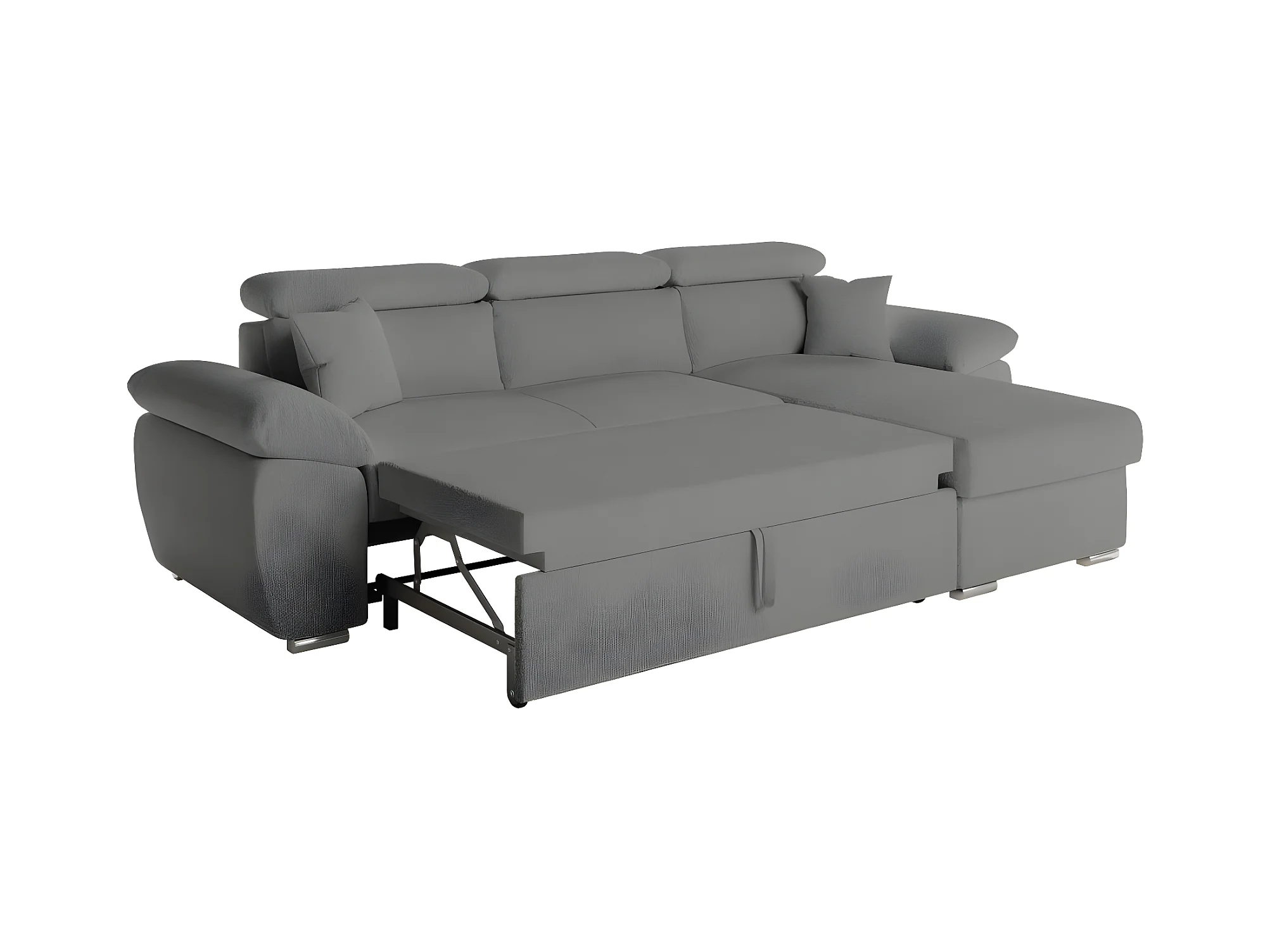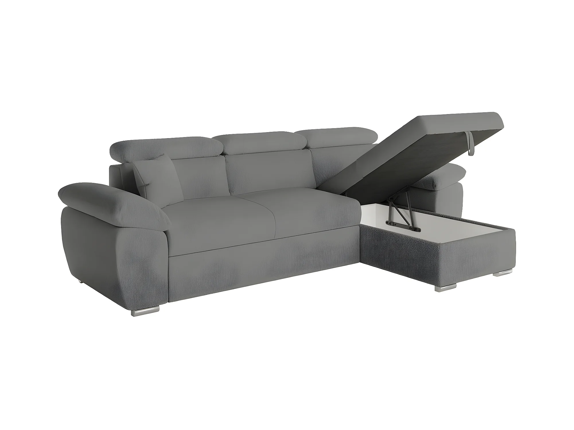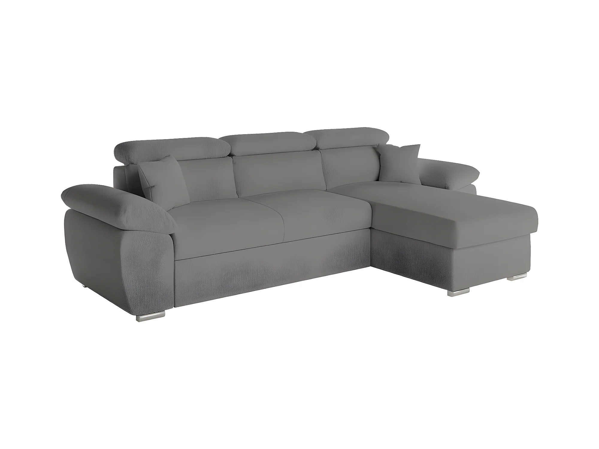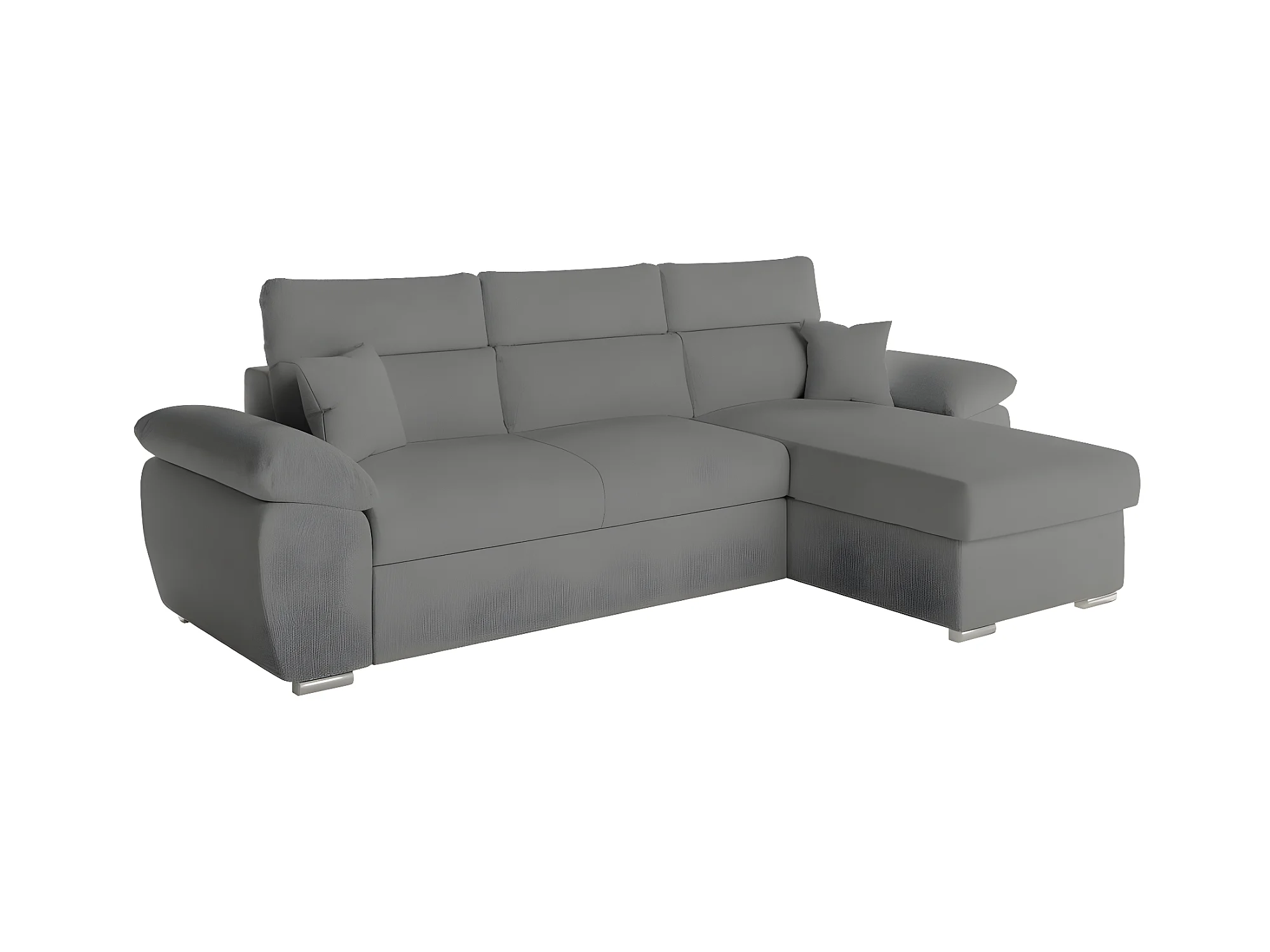Canapé d'angle 4 places Komeco réversible convertible avec coffre en tissu bouclette - Gris - L265 x P166 x H91cm - Loungitude