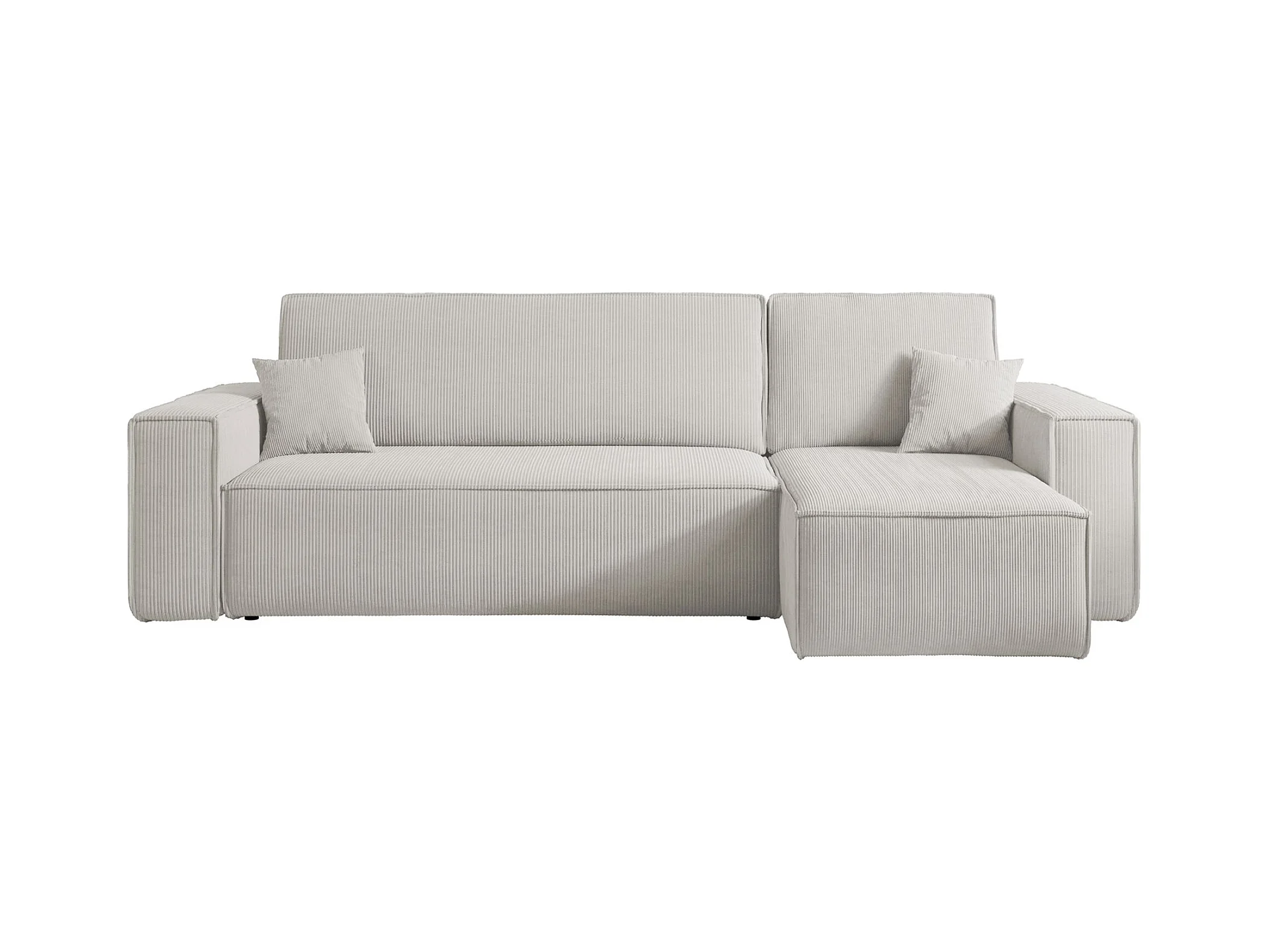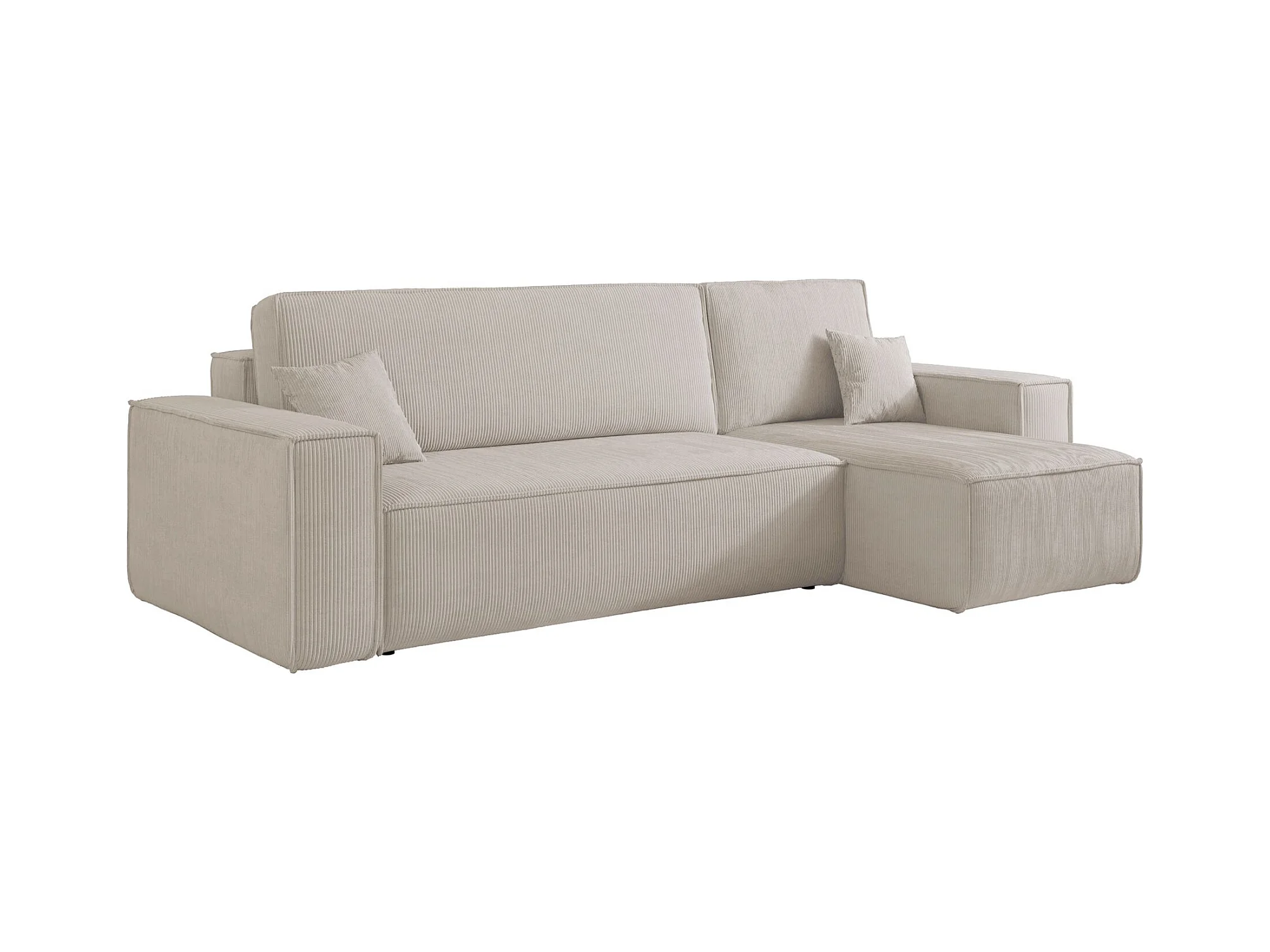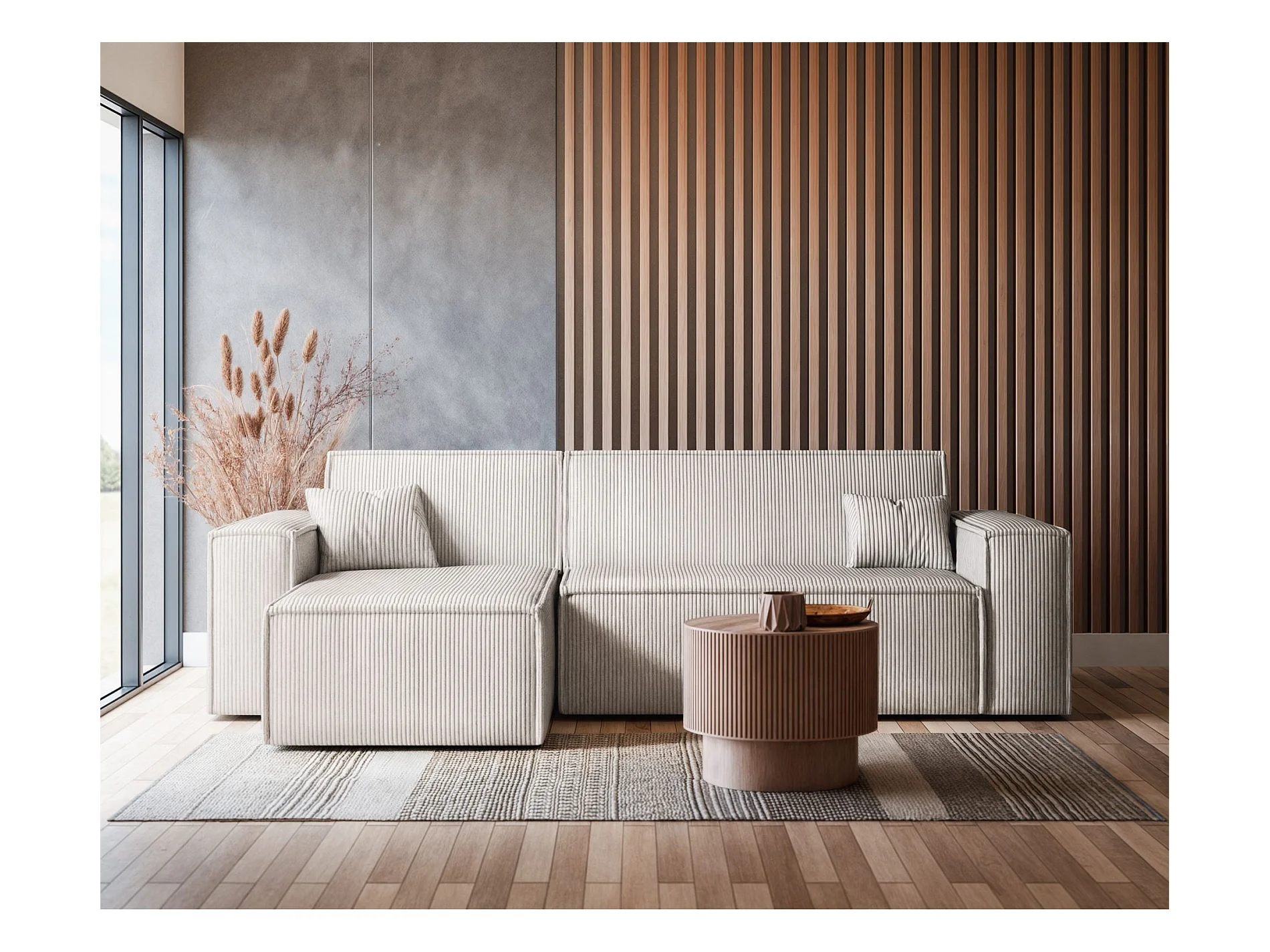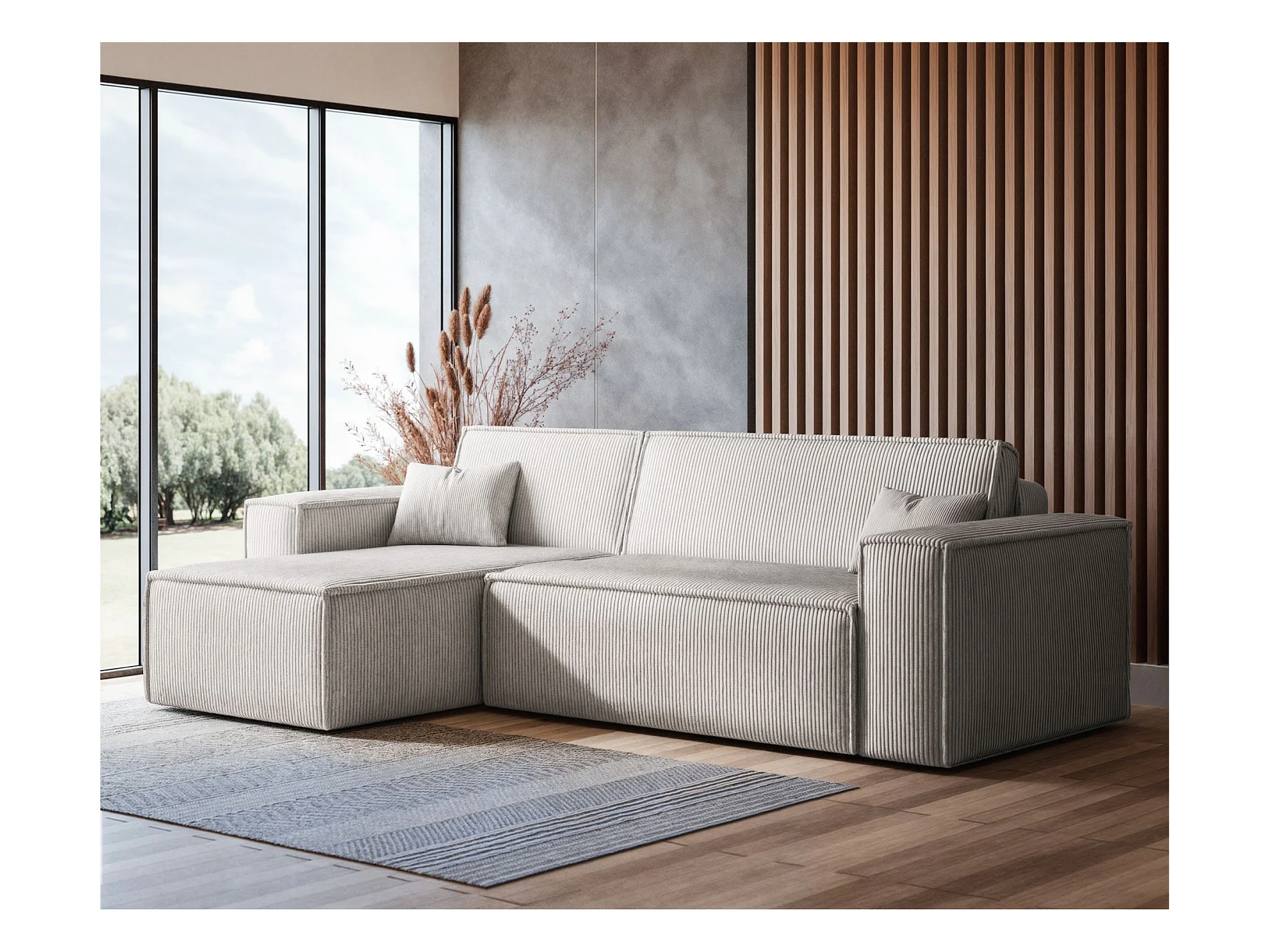 Canapé d'angle L réversible - en velours côtelé beige clair - SCARLO