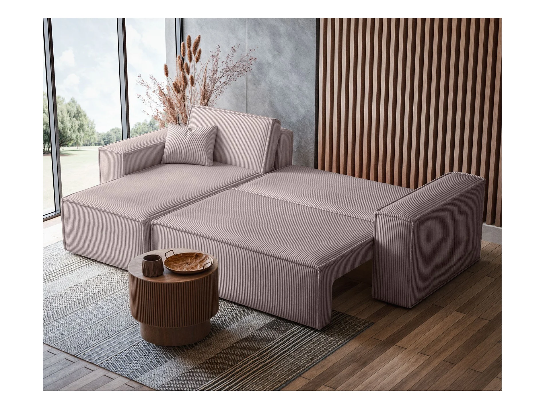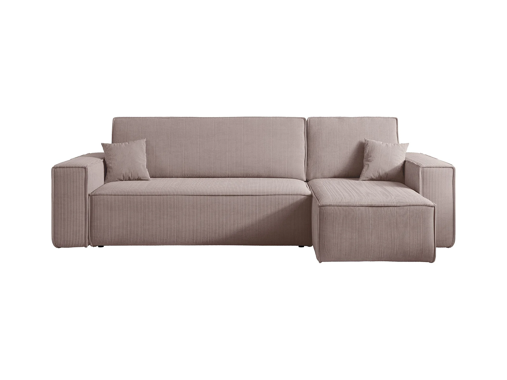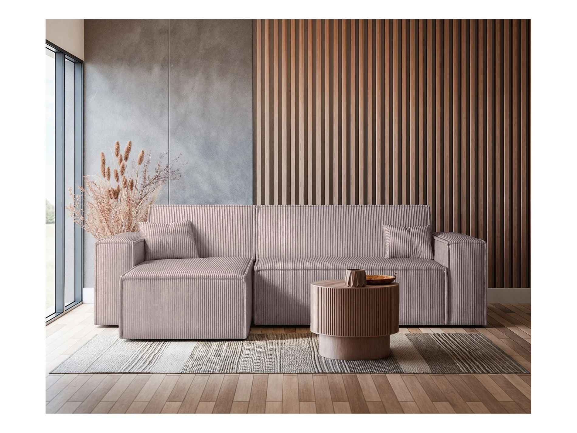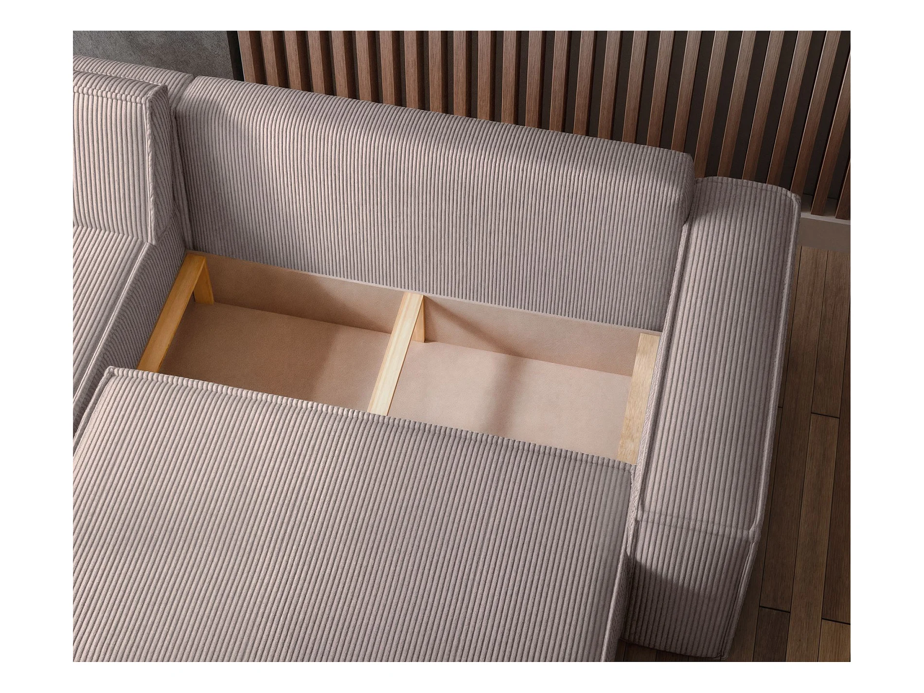 Canapé d'angle L réversible - en velours côtelé beige - SCARLO