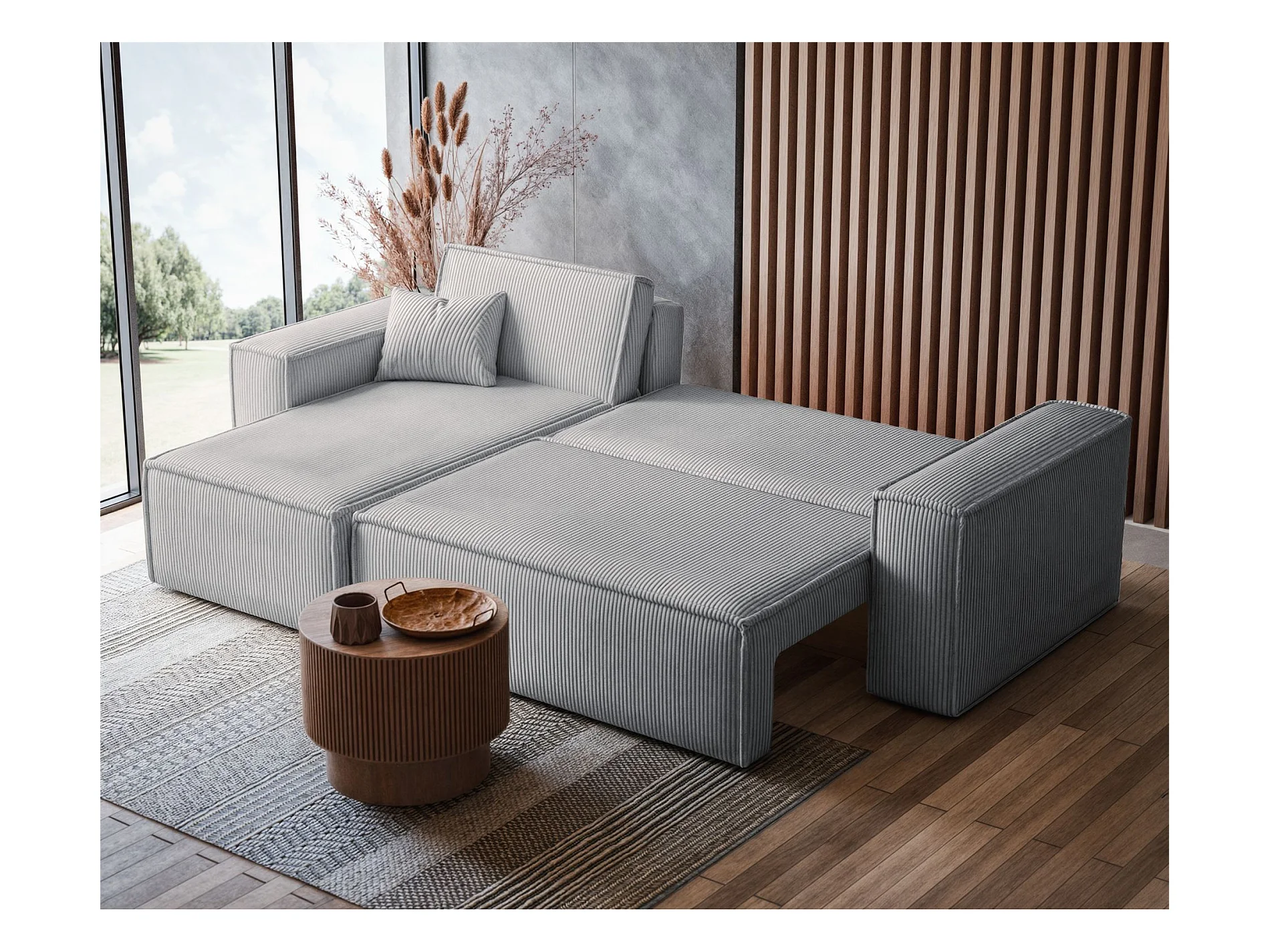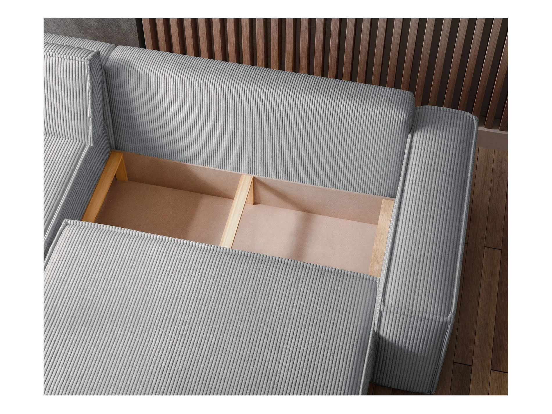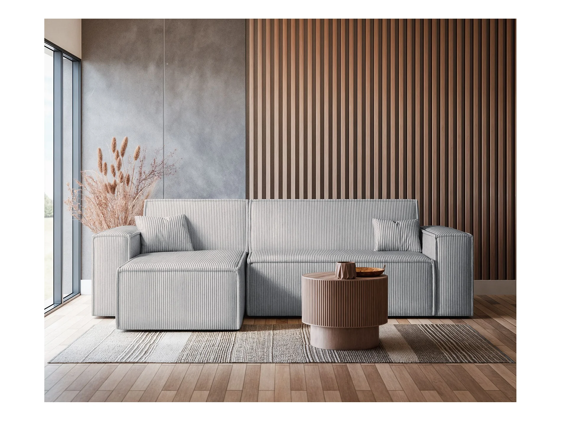 Canapé d'angle L réversible - en velours côtelé gris - SCARLO