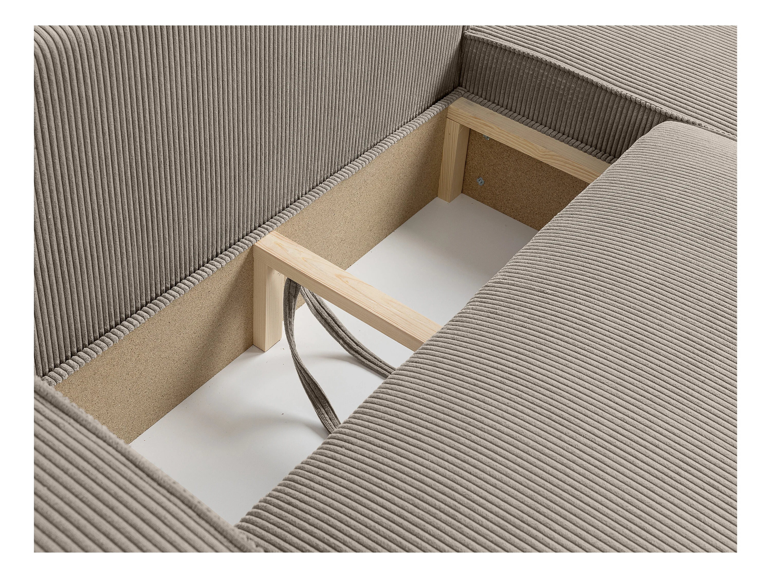 Canapé d'angle LISA convertible réversible coffre velours côtelé taupe