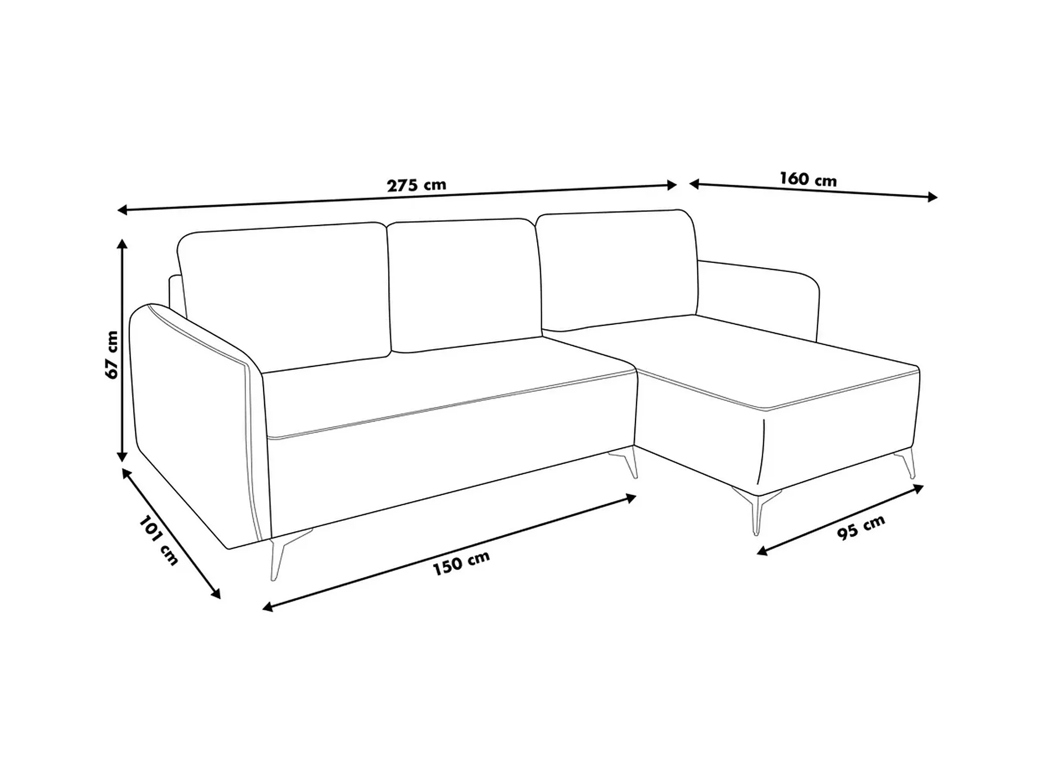 Canapé d'angle Lucky avec fonction couchage et coffre de rangement, couleur : noir, tissu structuré, pouf à gauche ou à droite