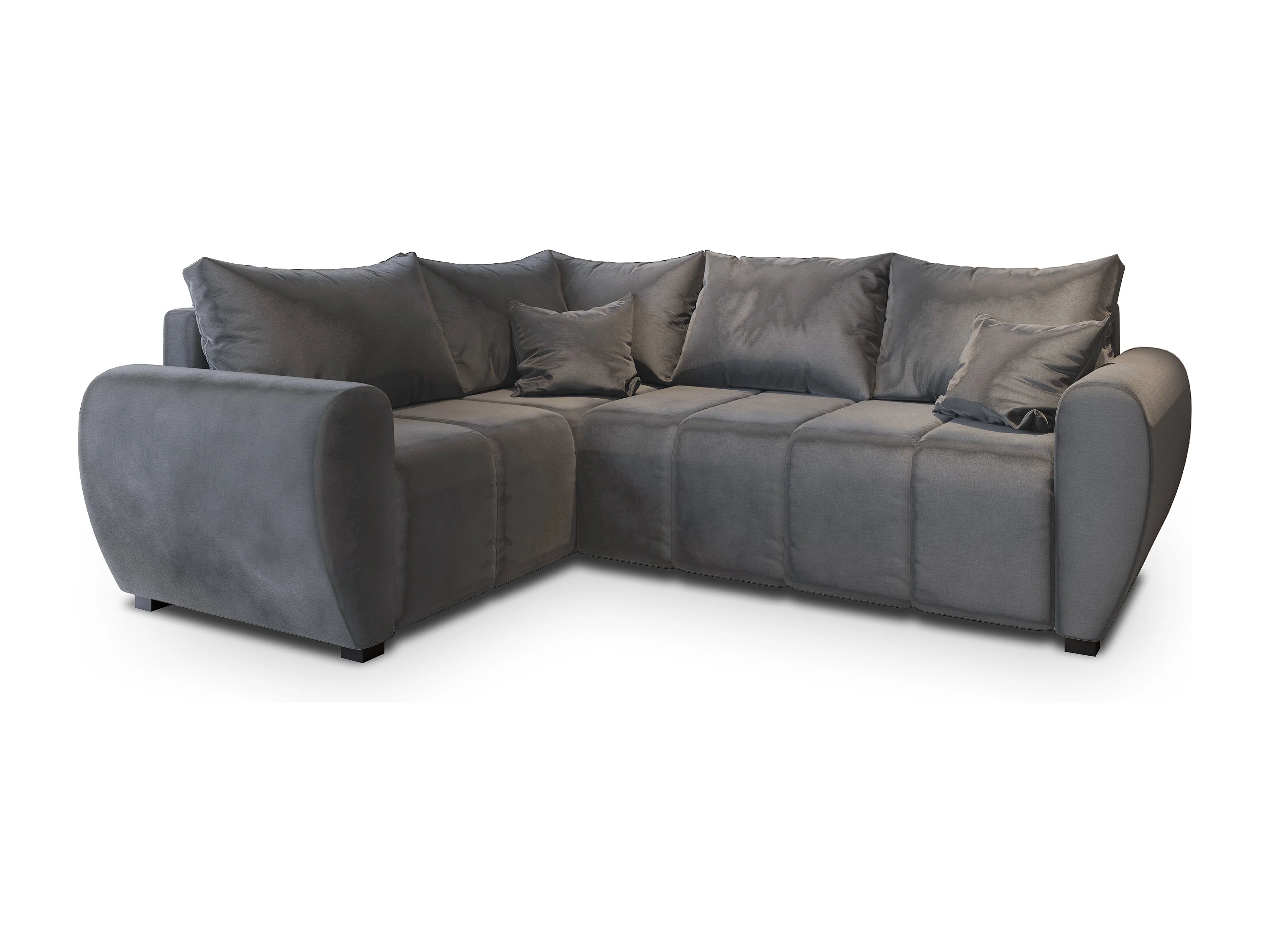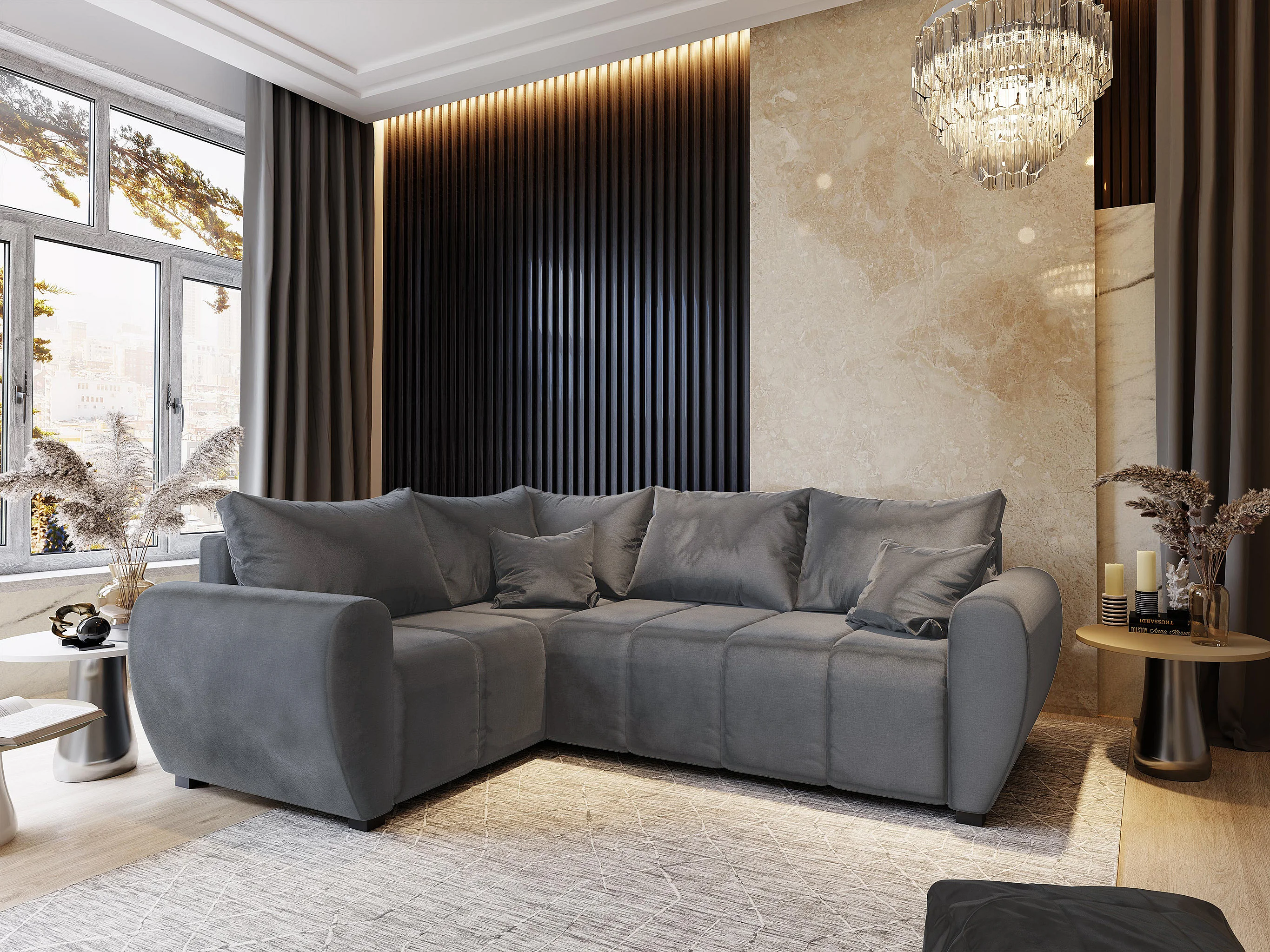 Canapé d'angle MADISON Gris en peluche avec fonction de couchage