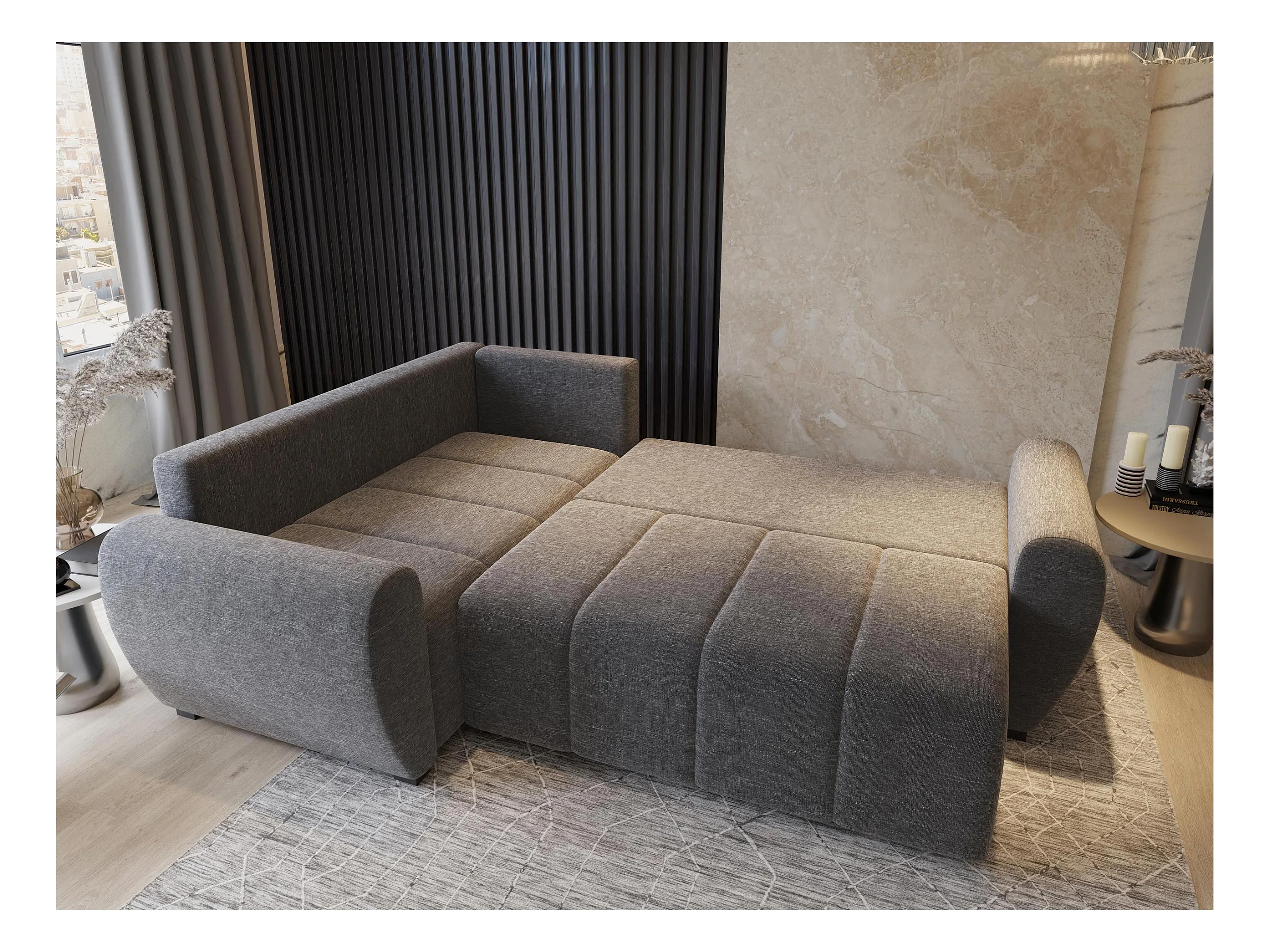 Canapé d'angle MADISON Noir en peluche avec fonction de couchage
