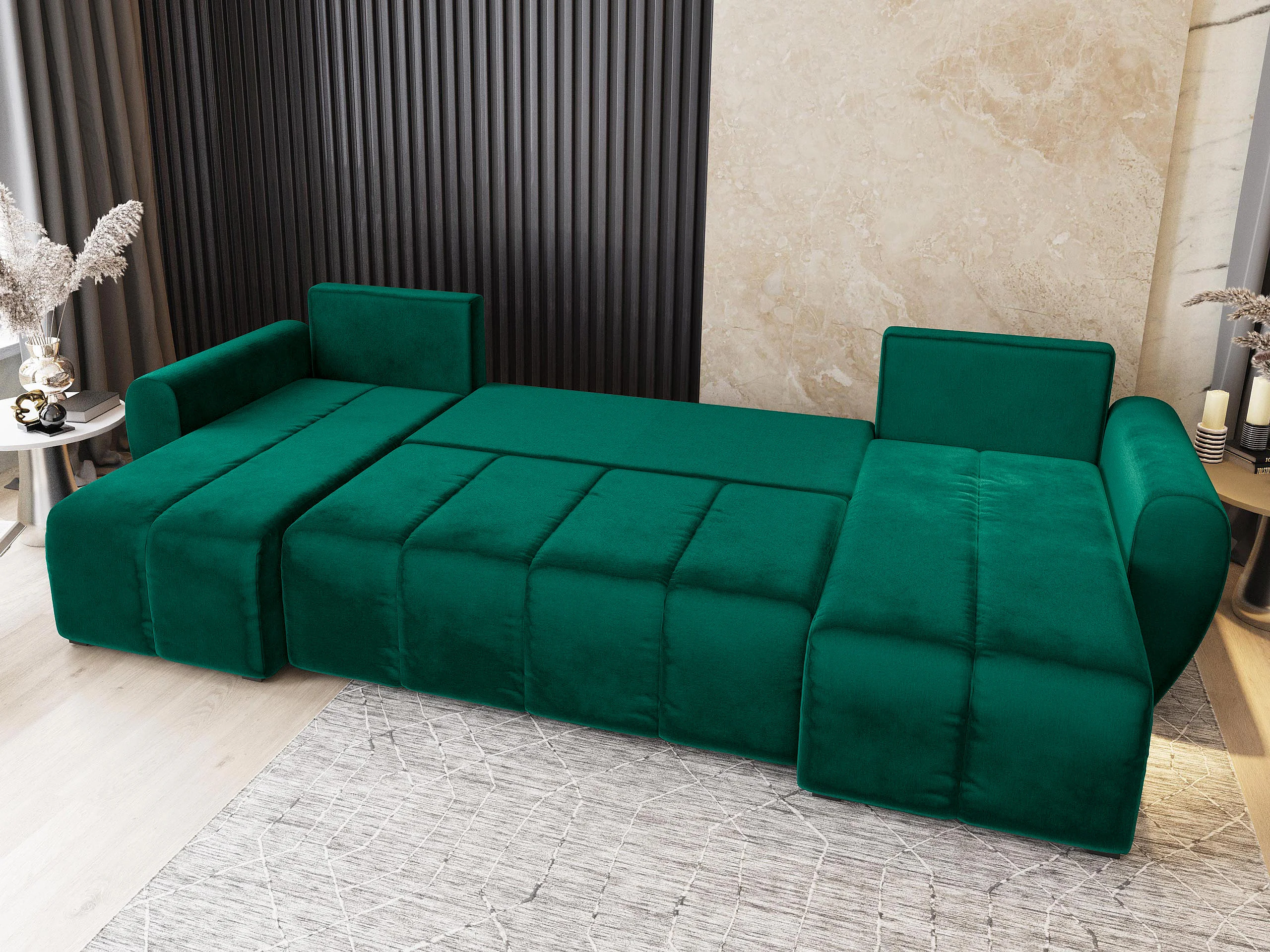 Canapé d'angle MADISON Vert Sapin en peluche avec fonction de couchage