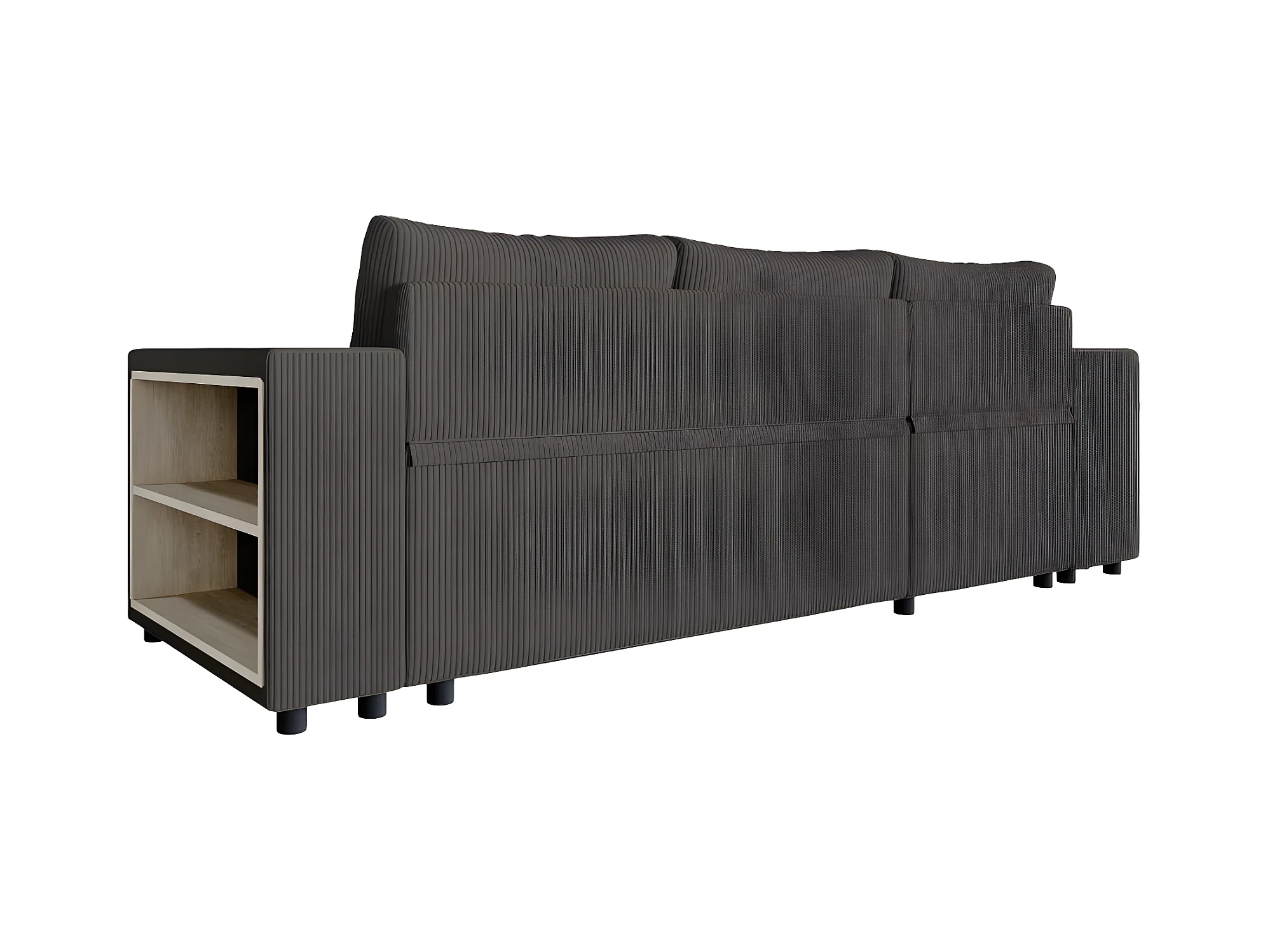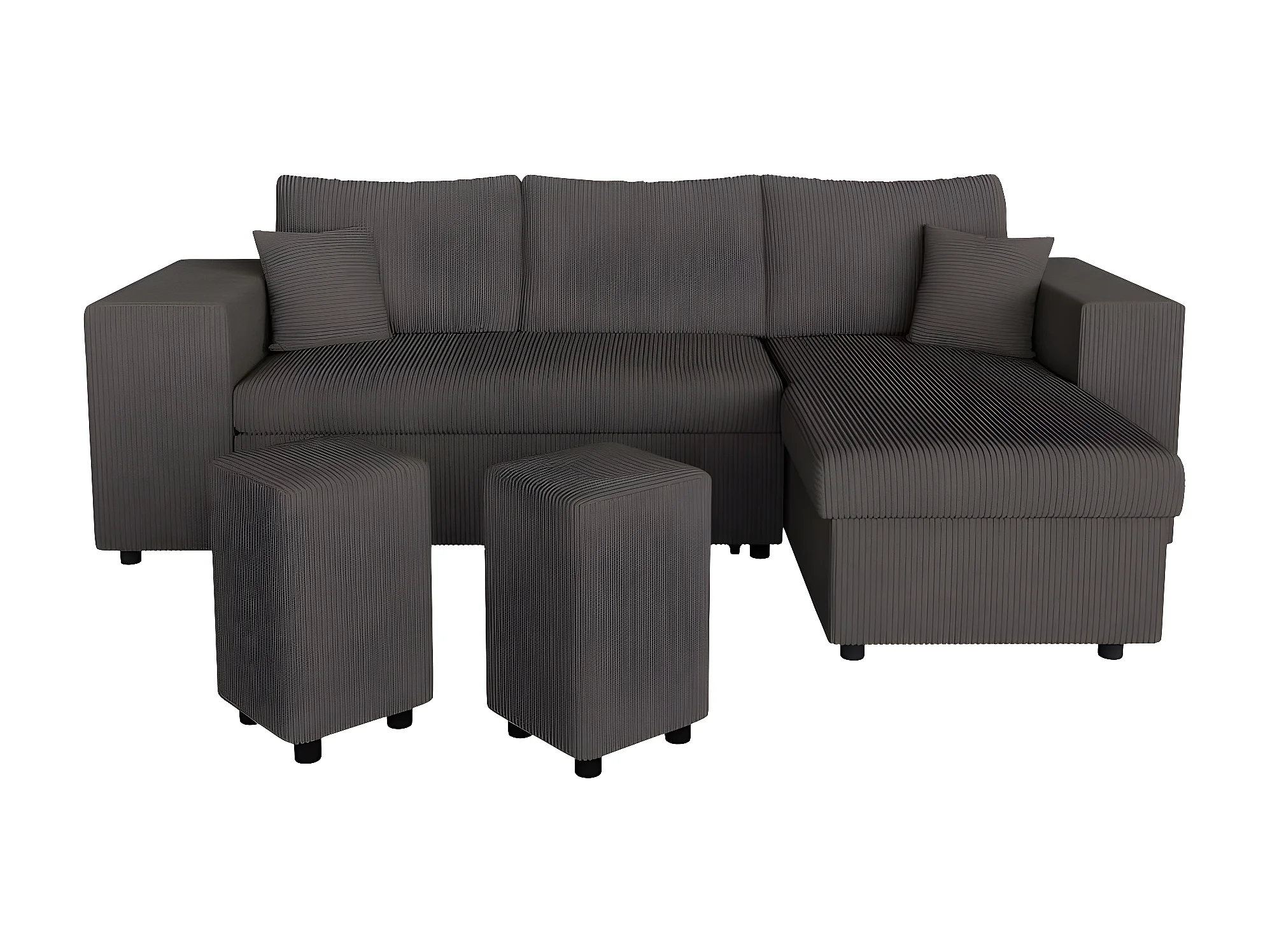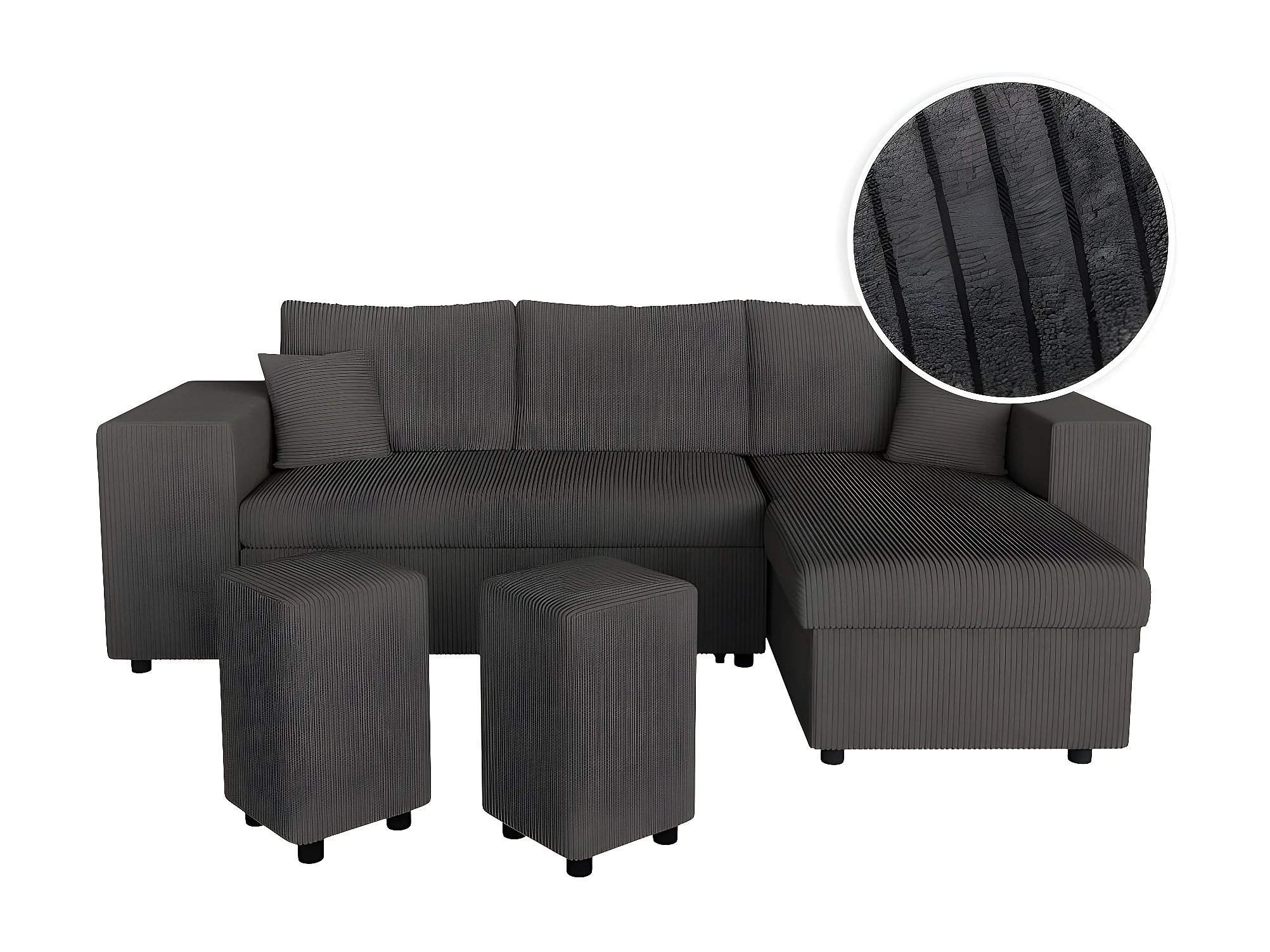 Canapé d'angle réversible Mady avec coffre, rangement poufs à gauche en velours côtelé Gris anthracite - L254 x P146 x H81cm - Loungitude