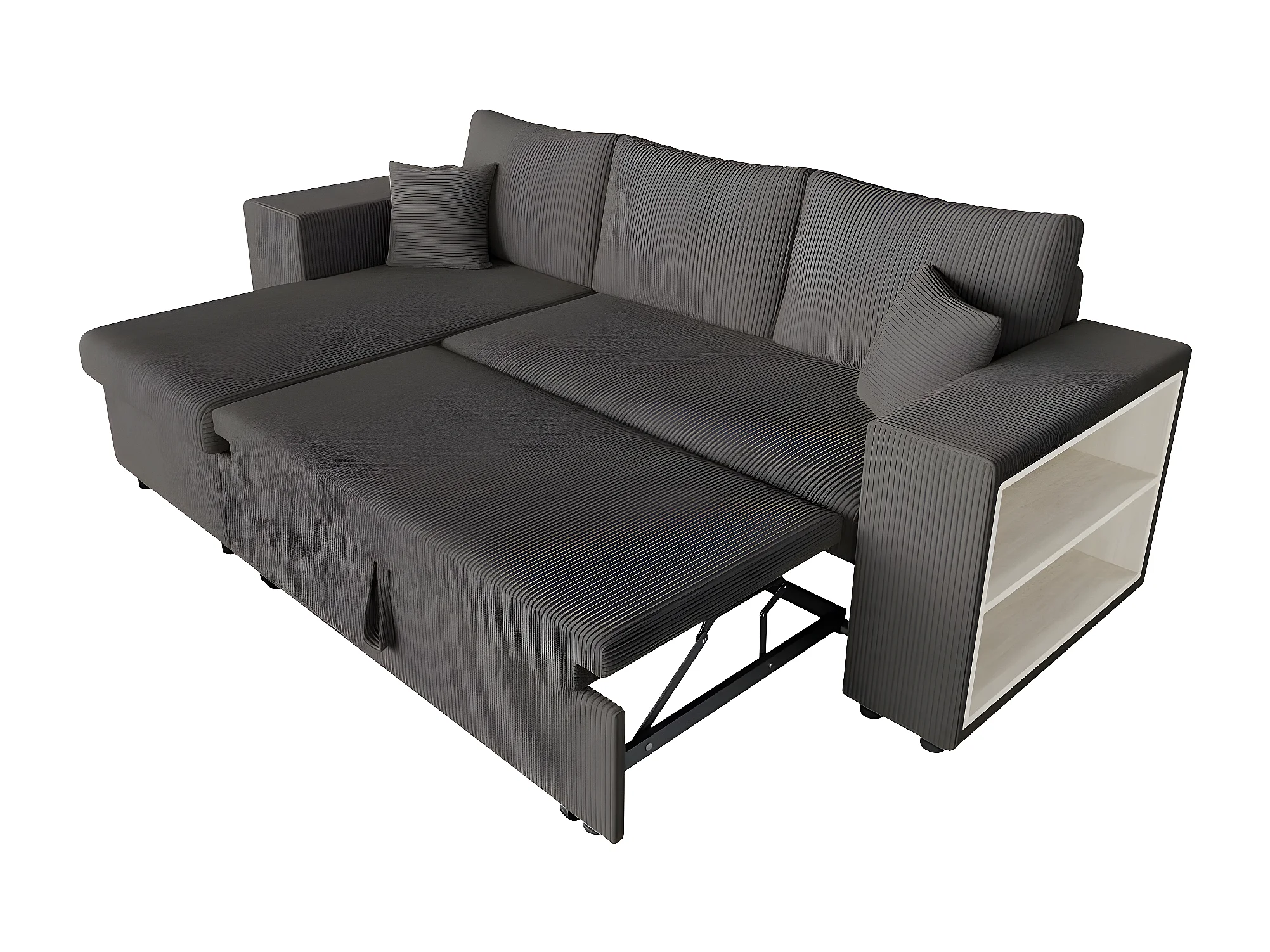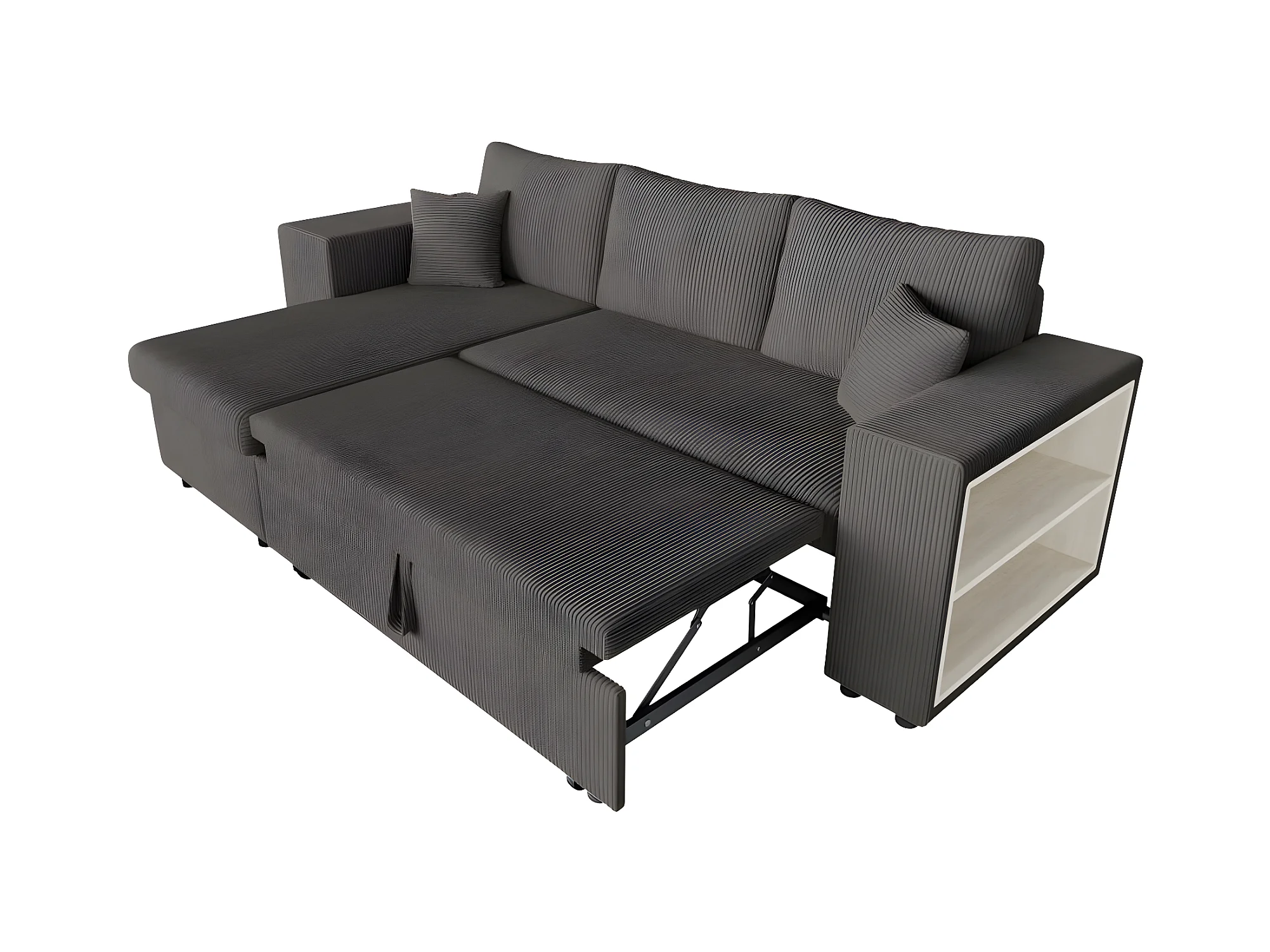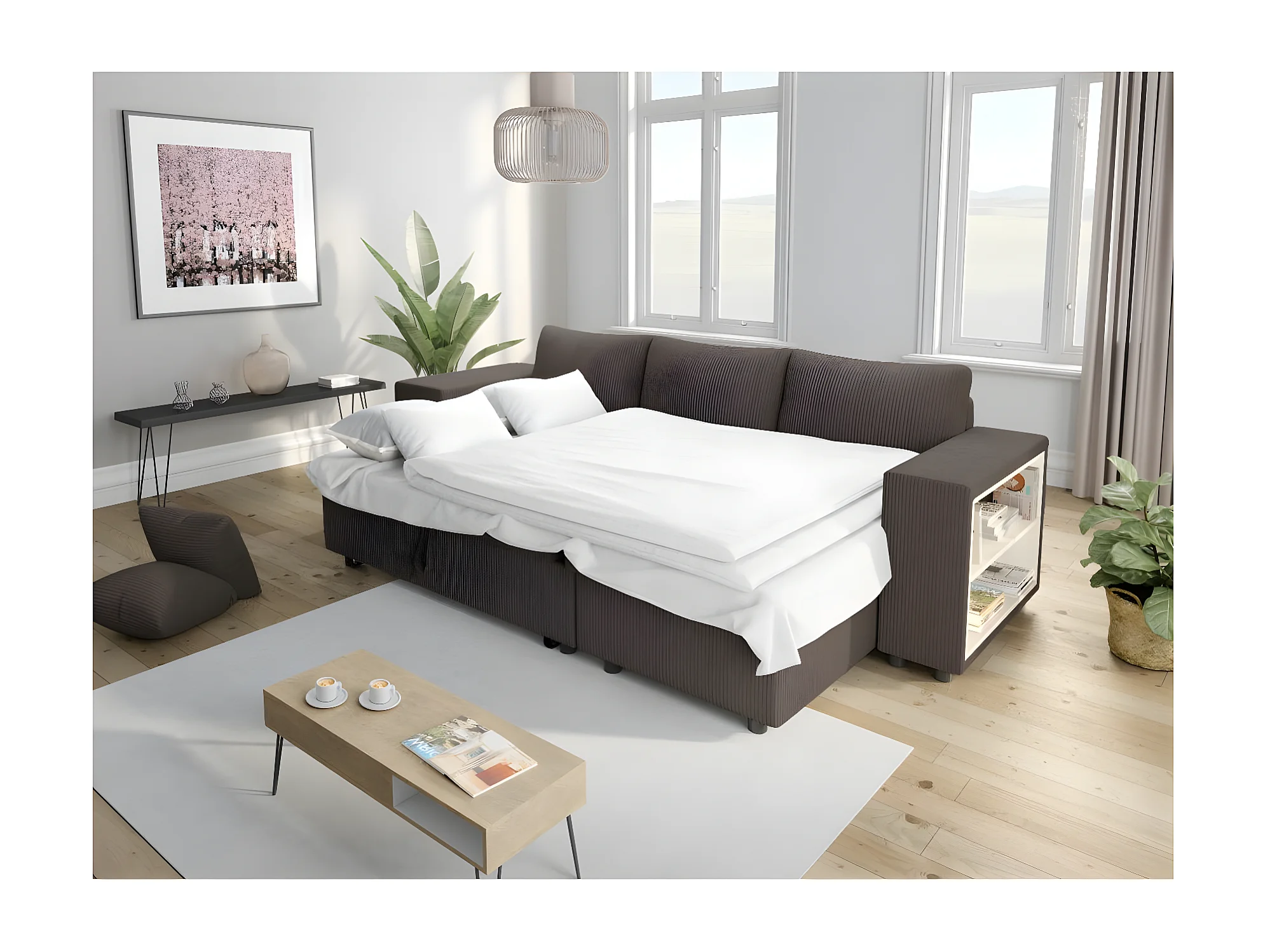 Canapé d'angle réversible Mady avec coffre, rangement poufs à gauche en velours côtelé Gris anthracite - L254 x P146 x H81cm - Loungitude