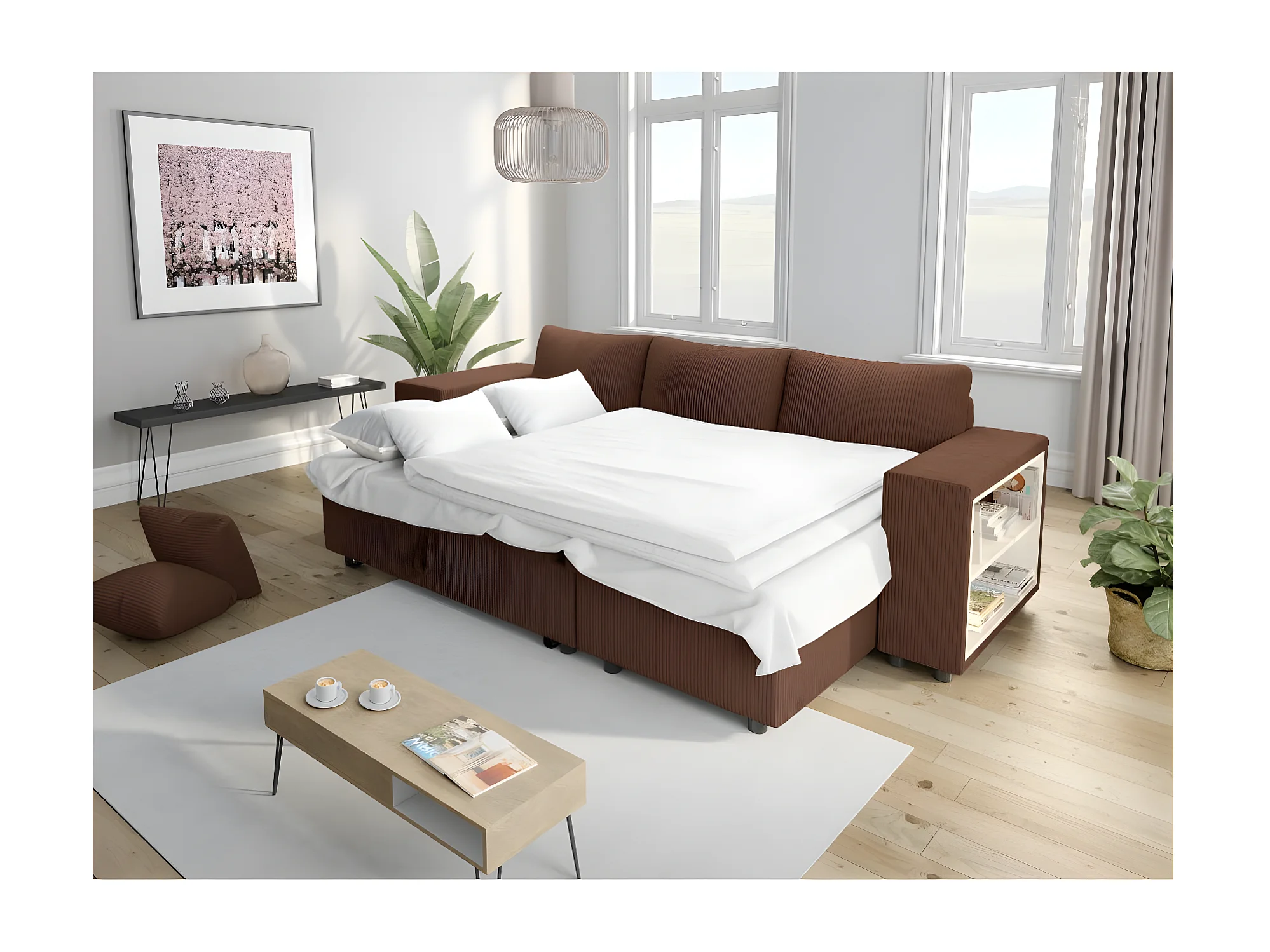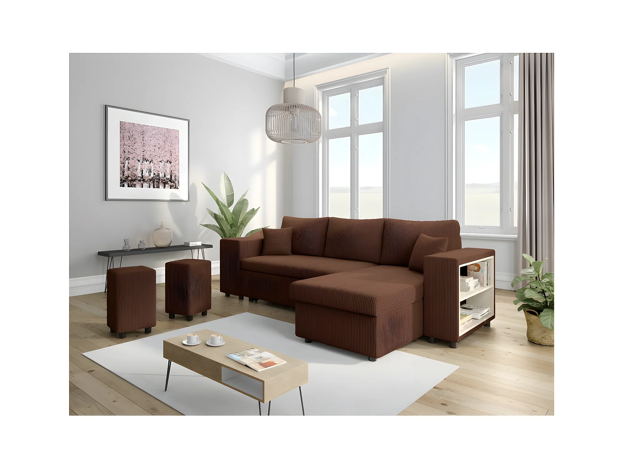 Canapé d'angle réversible Mady avec coffre, rangement poufs à gauche en velours côtelé - Marron - L254 x P146 x H81cm - Loungitude
