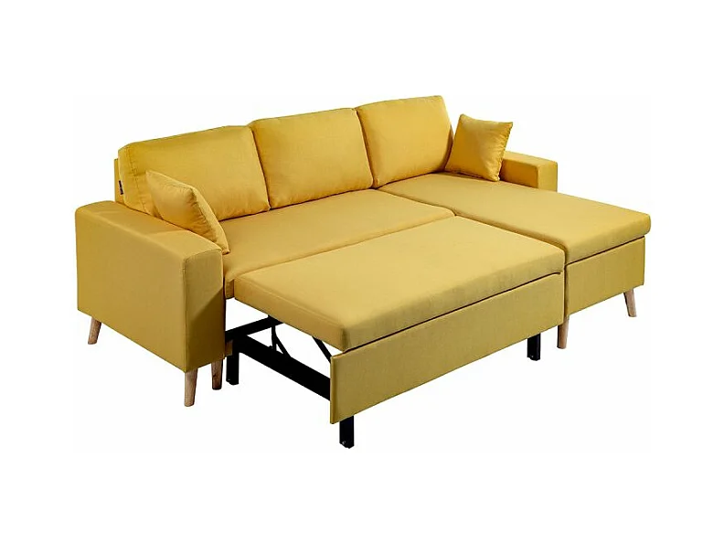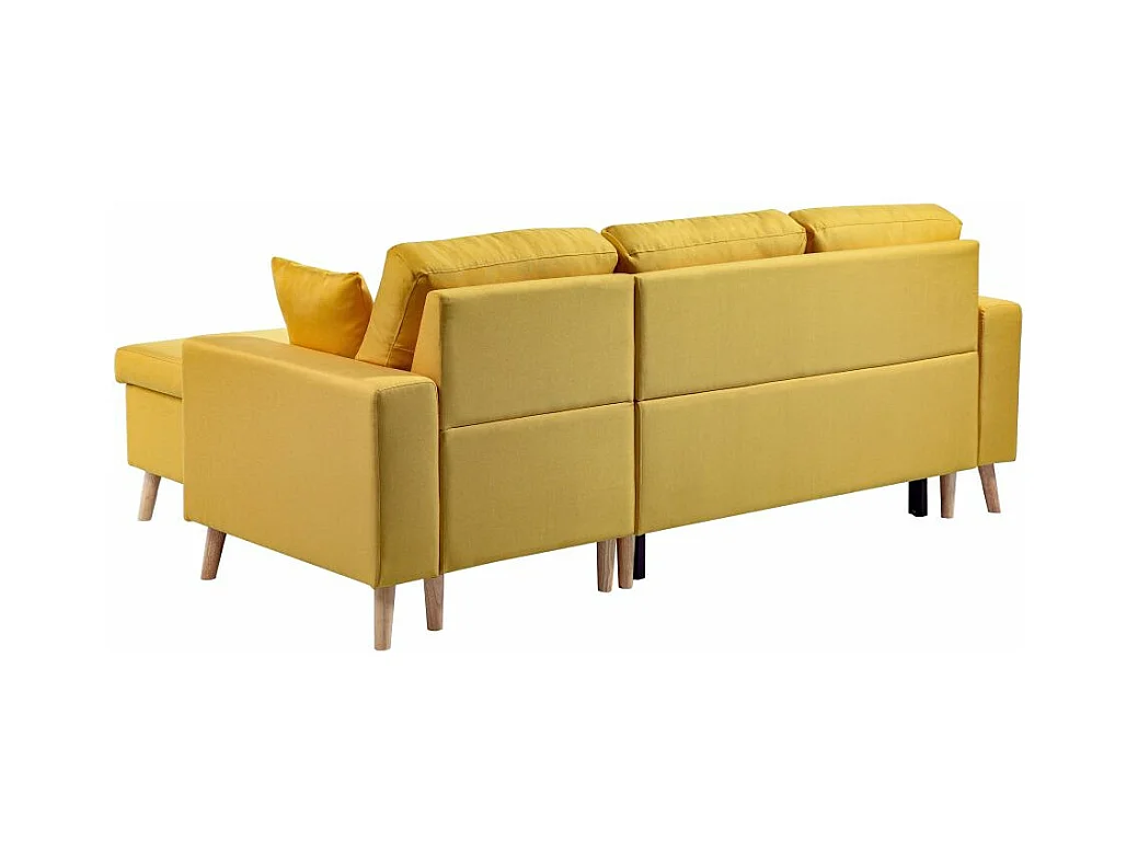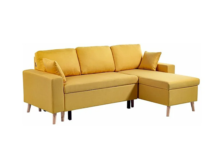 Canapé d'angle Maria scandinave Réversible et Convertible Avec Coffre en Tissu - Jaune ocre - L227 x 148 x 95cm - Loungitude