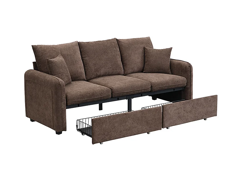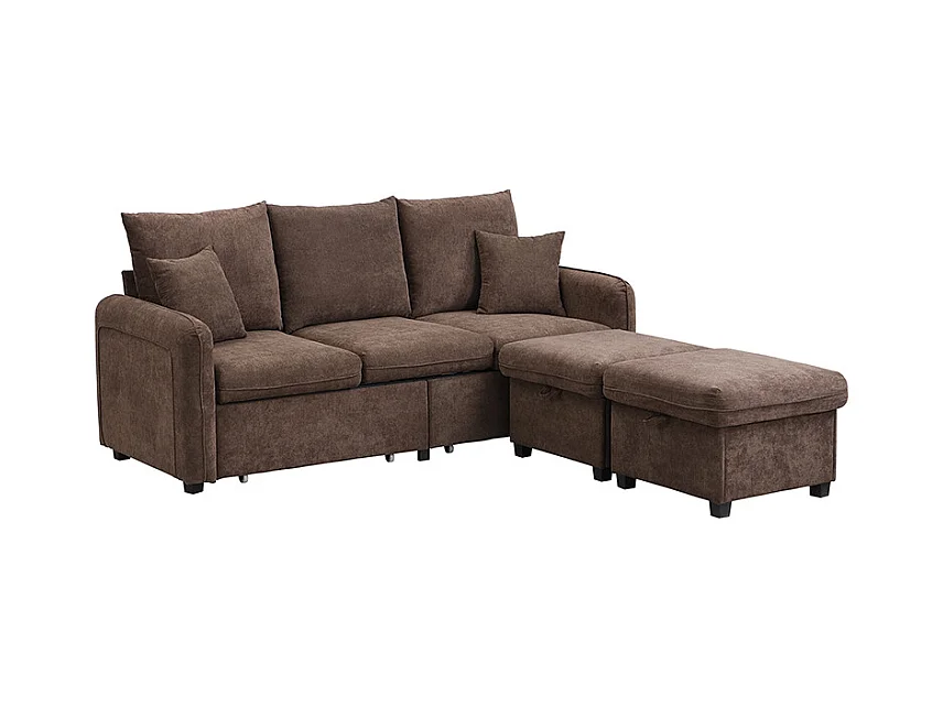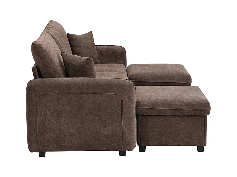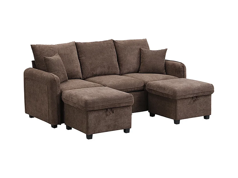 Canapé d'angle marron - Canapé 3 places avec 2 tiroirs et 2 tabourets de rangement - amovible