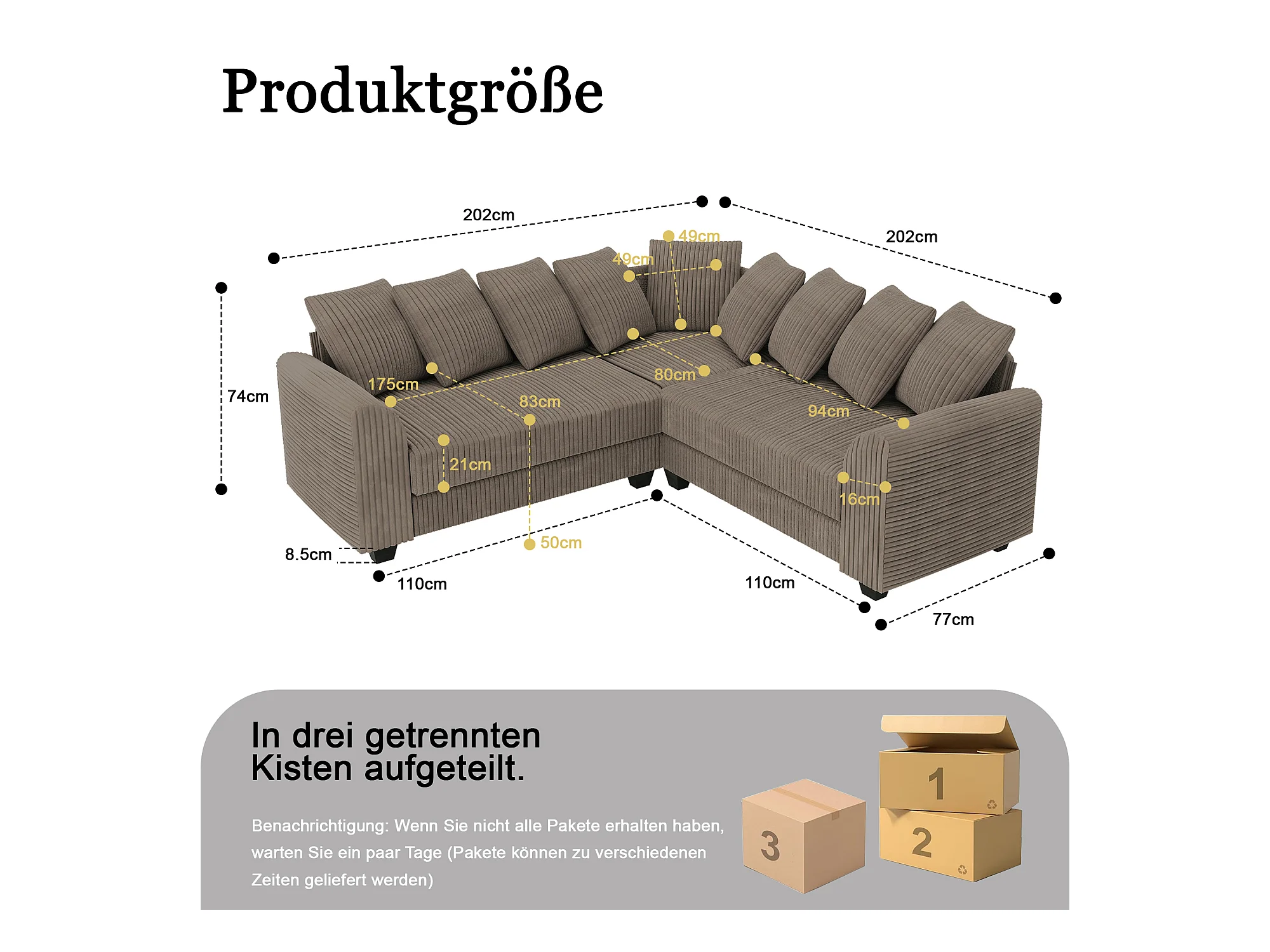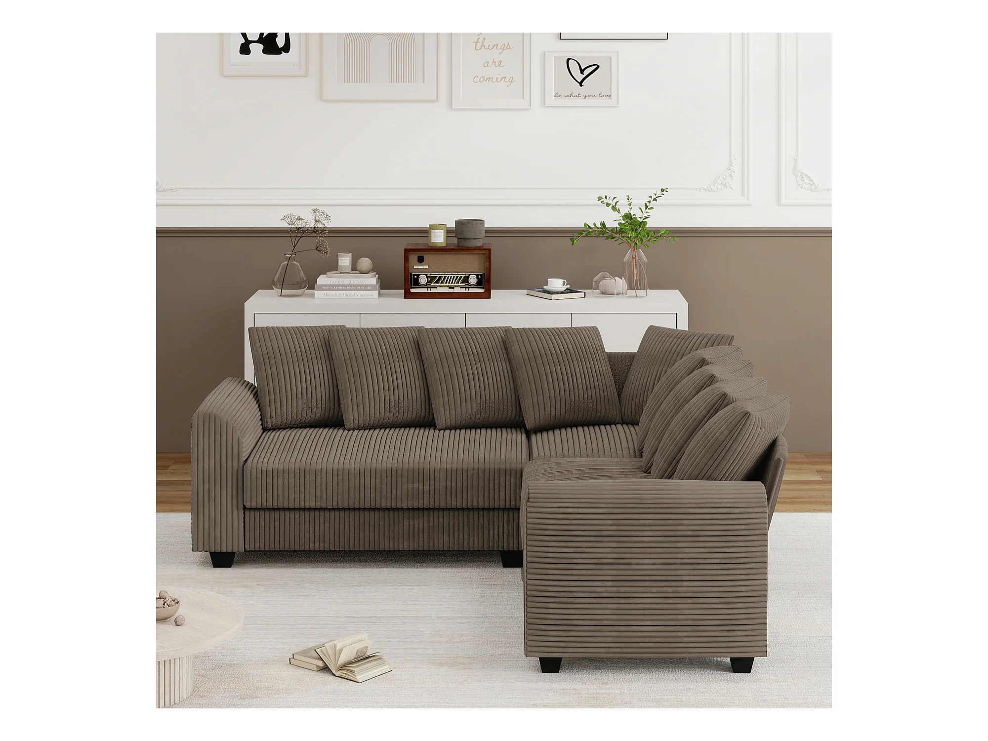 Canapé d'angle marron - Canapé 4 places avec coussins de dossier et accoudoirs - pour le salon