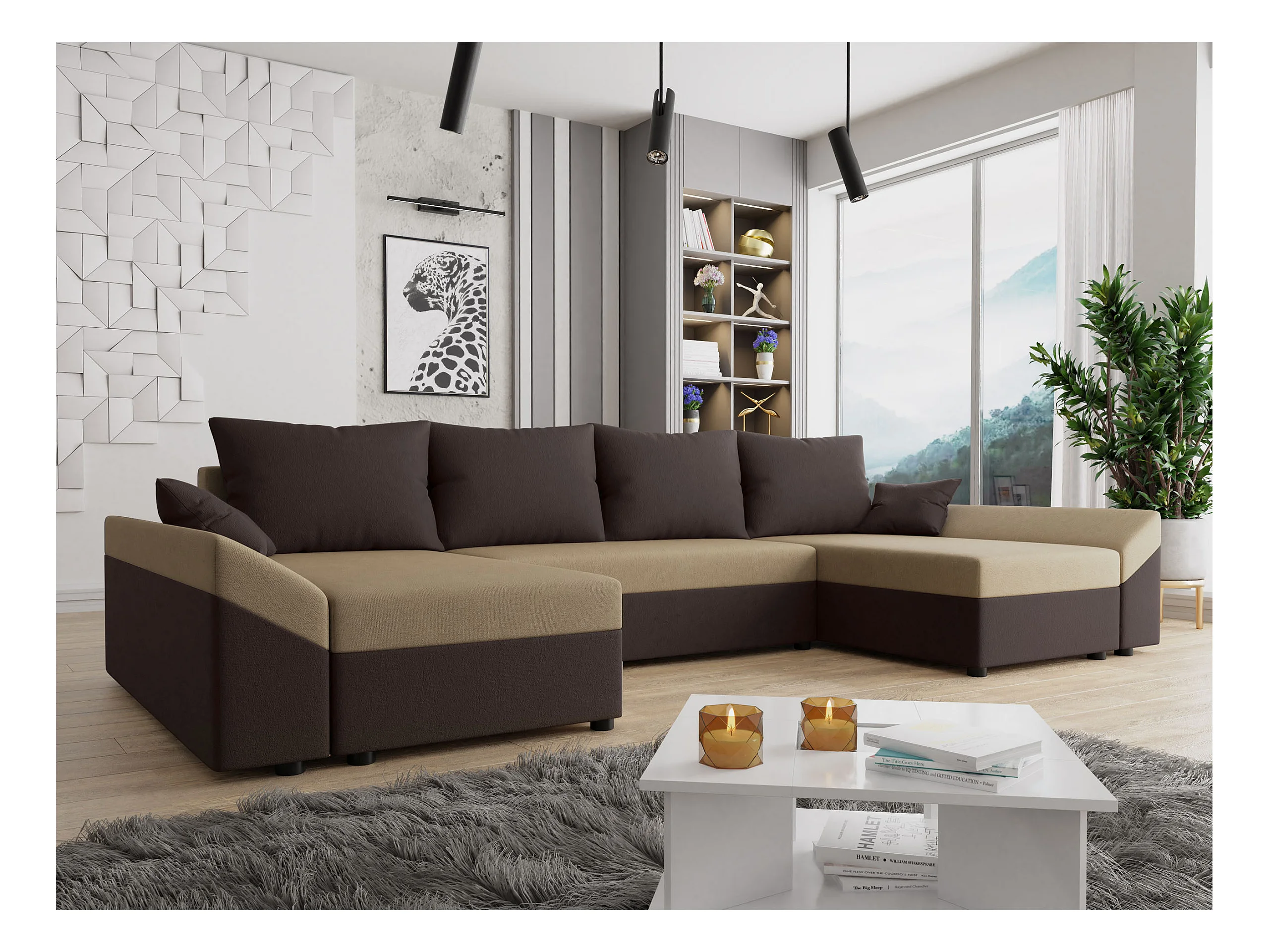 Canapé d'angle Memphis 105, Brun clair, Fonction de couchage, Boîte de literie, 317x140cm