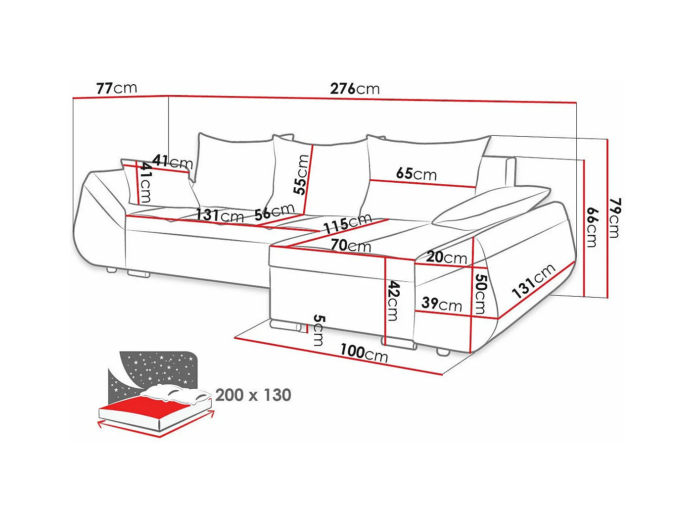 Canapé d'angle Memphis 111, Gris, Fonction de couchage, Boîte de literie, 276x131x79cm