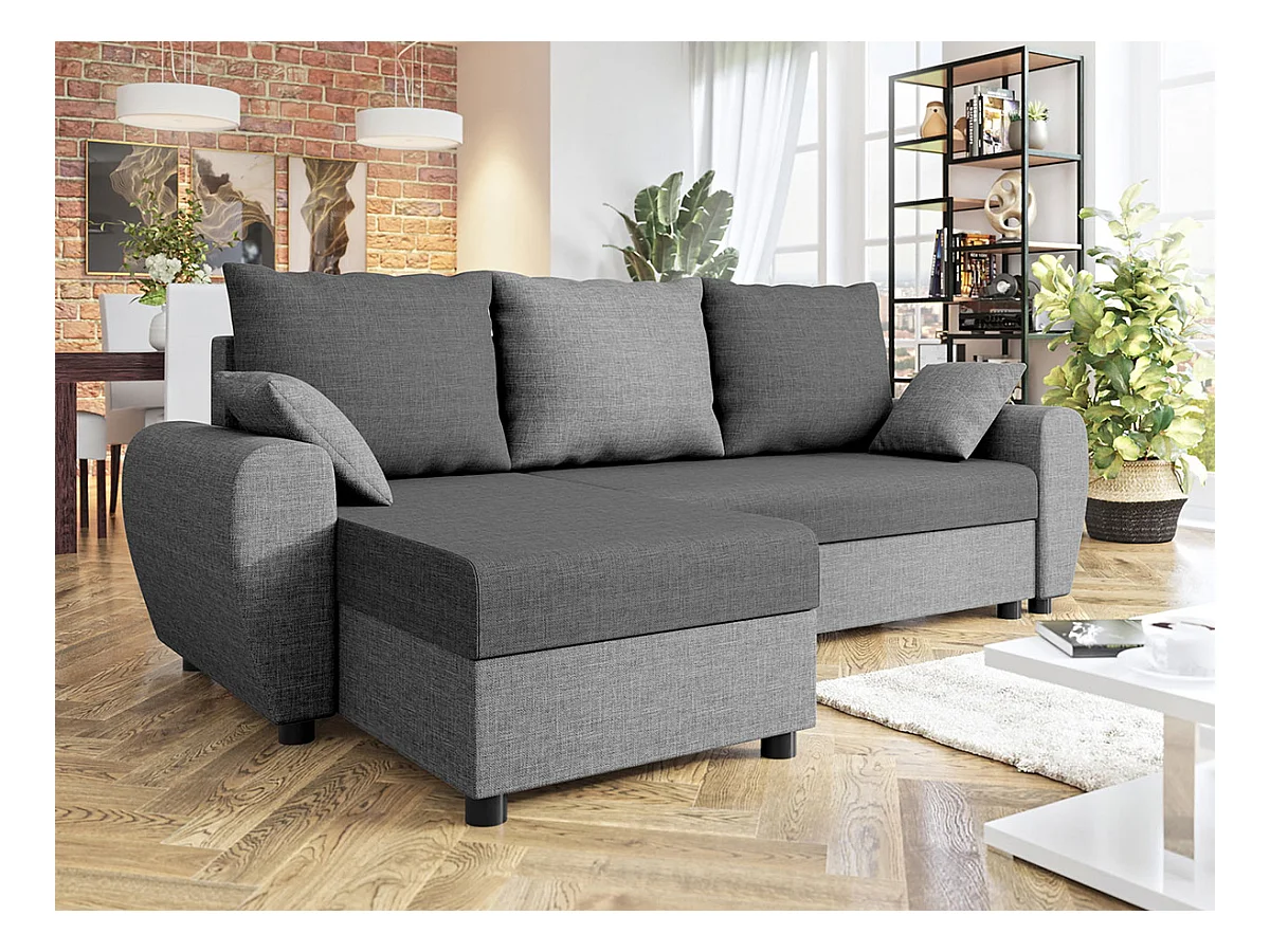 Canapé d'angle Memphis 123, Gris, Fonction de couchage, Boîte de literie, 242x139x83cm