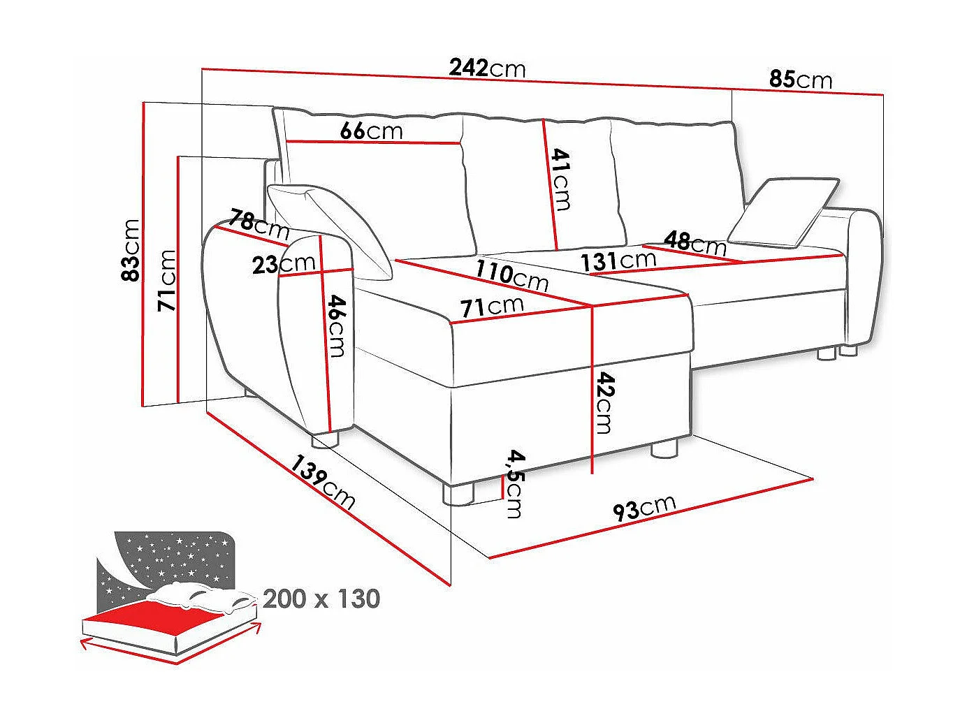 Canapé d'angle Memphis 123, Vert, Fonction de couchage, Boîte de literie, 242x139x83cm