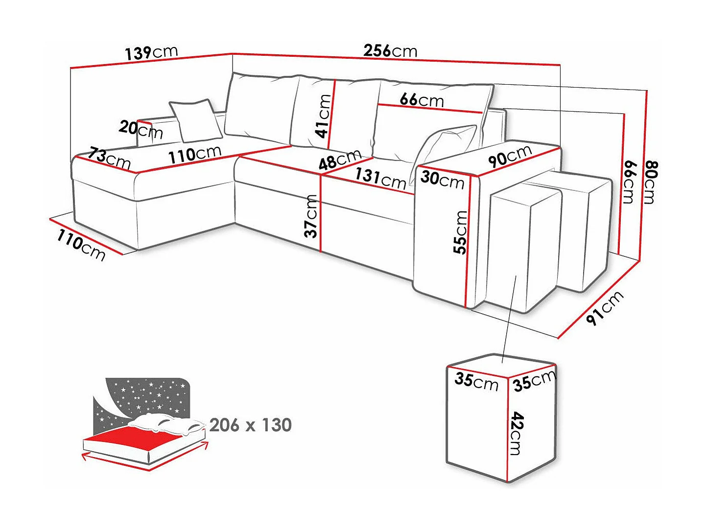 Canapé d'angle Memphis 124, Bleu, Fonction de couchage, Boîte de literie, 256x139x80cm
