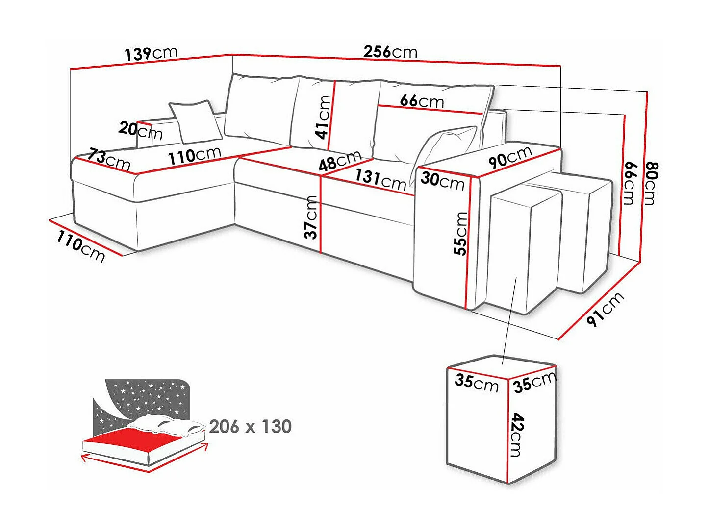 Canapé d'angle Memphis 129, Vert, Fonction de couchage, Boîte de literie, 256x139x80cm