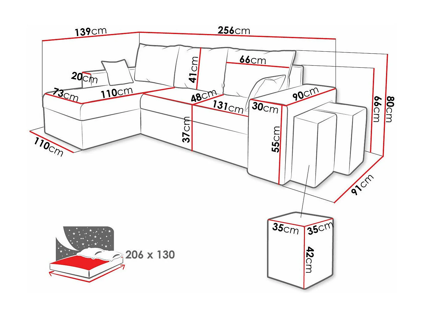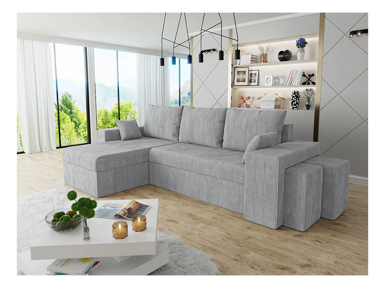 Canapé d'angle Memphis 138, Gris, Fonction de couchage, Boîte de literie, 256x139x80cm