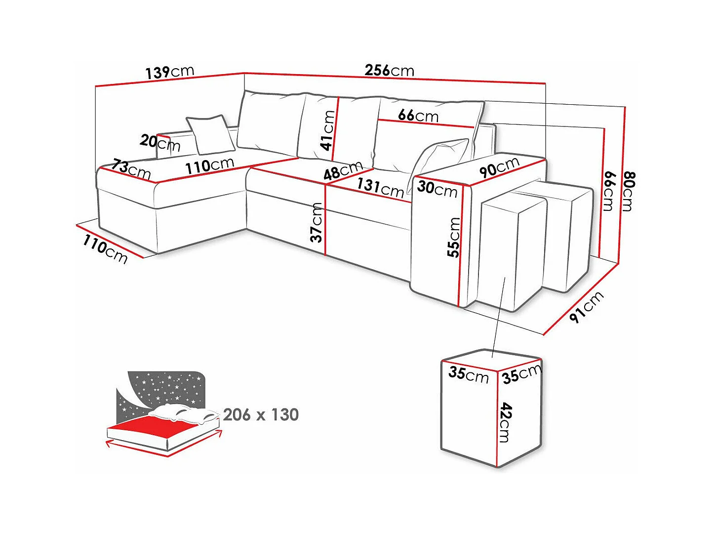 Canapé d'angle Memphis 138, Vert, Fonction de couchage, Boîte de literie, 256x139x80cm