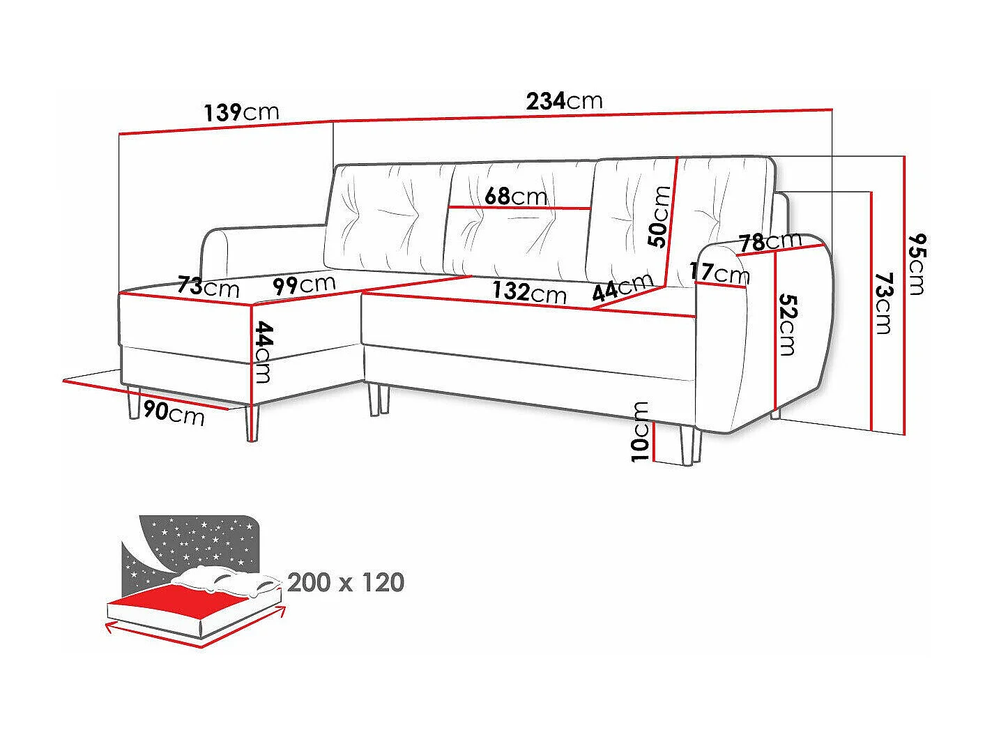 Canapé d'angle Memphis 139, Brun clair, Fonction de couchage, Boîte de literie, 234x139cm
