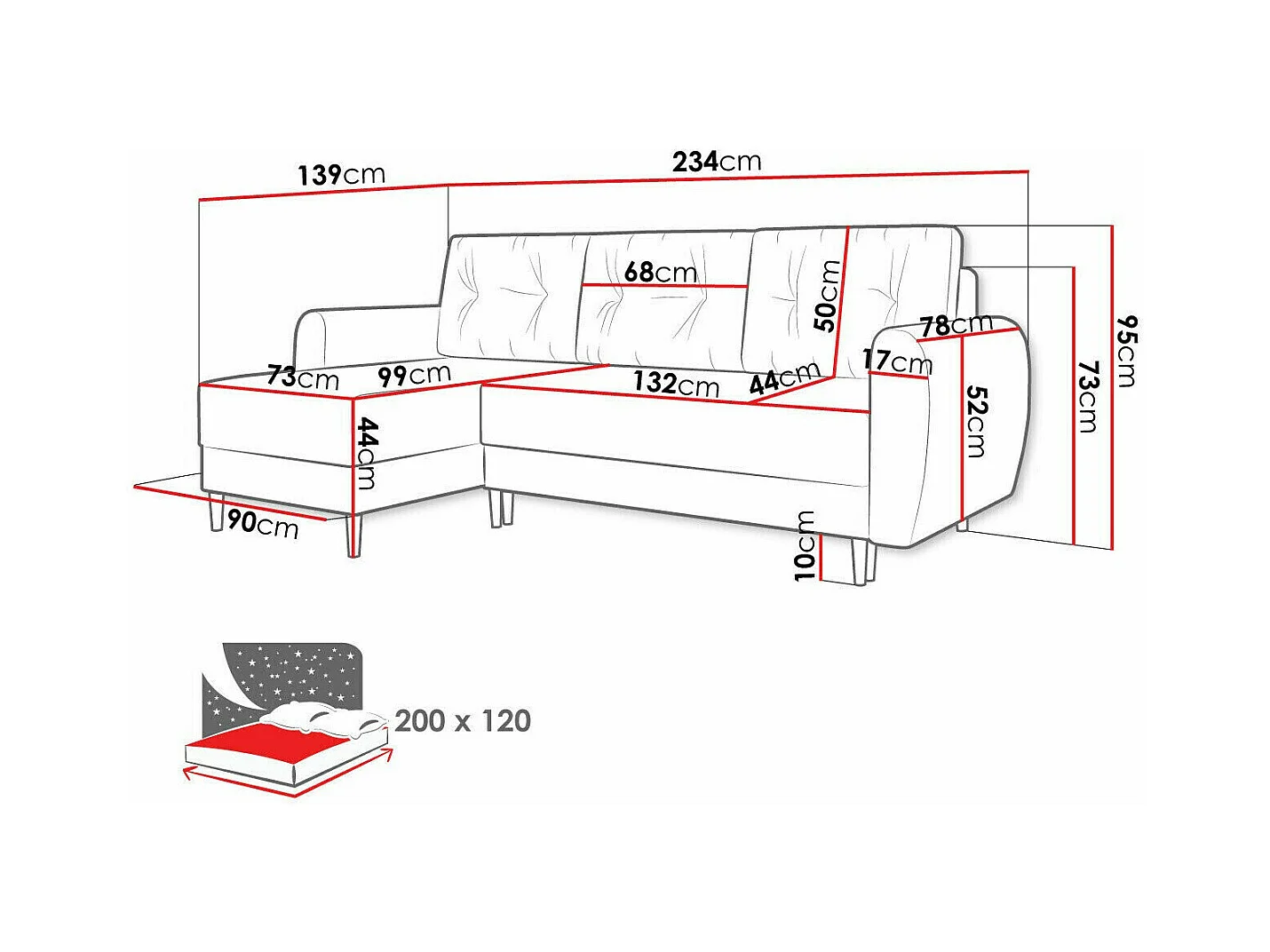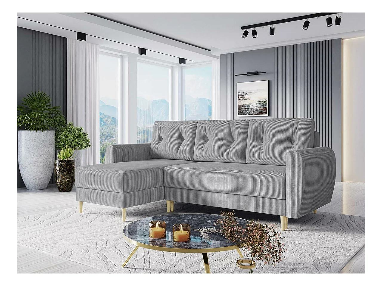 Canapé d'angle Memphis 139, Gris, Fonction de couchage, Boîte de literie, 234x139x95cm