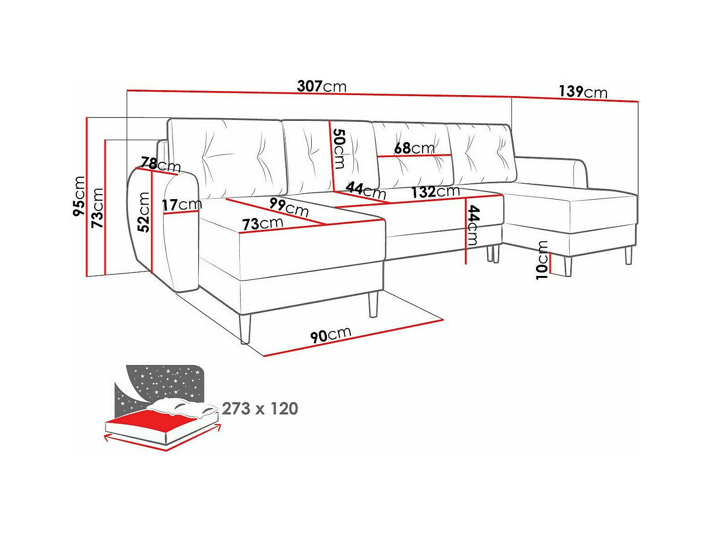 Canapé d'angle Memphis 140, Bleu, Fonction de couchage, Boîte de literie, 307x139x95cm
