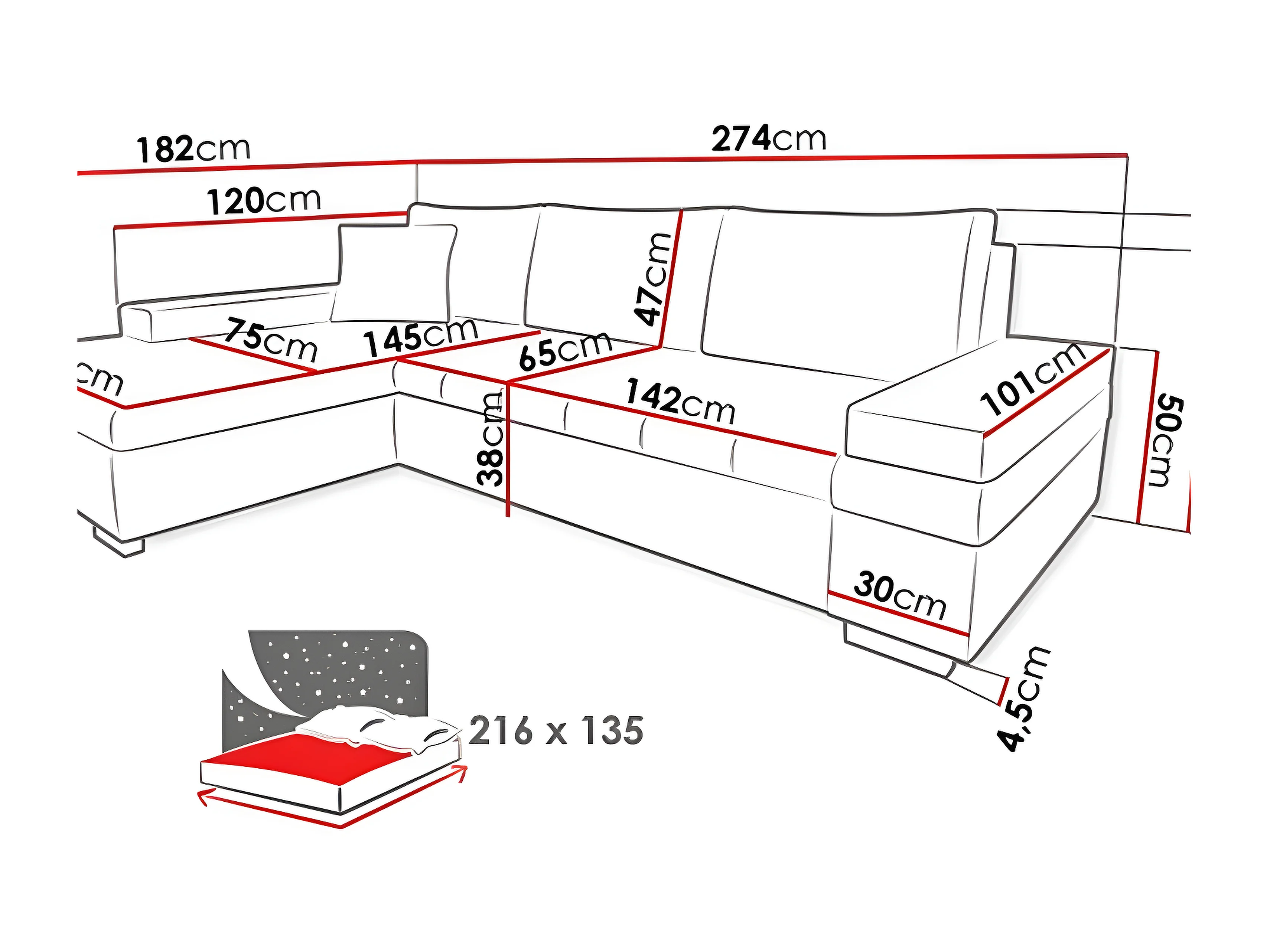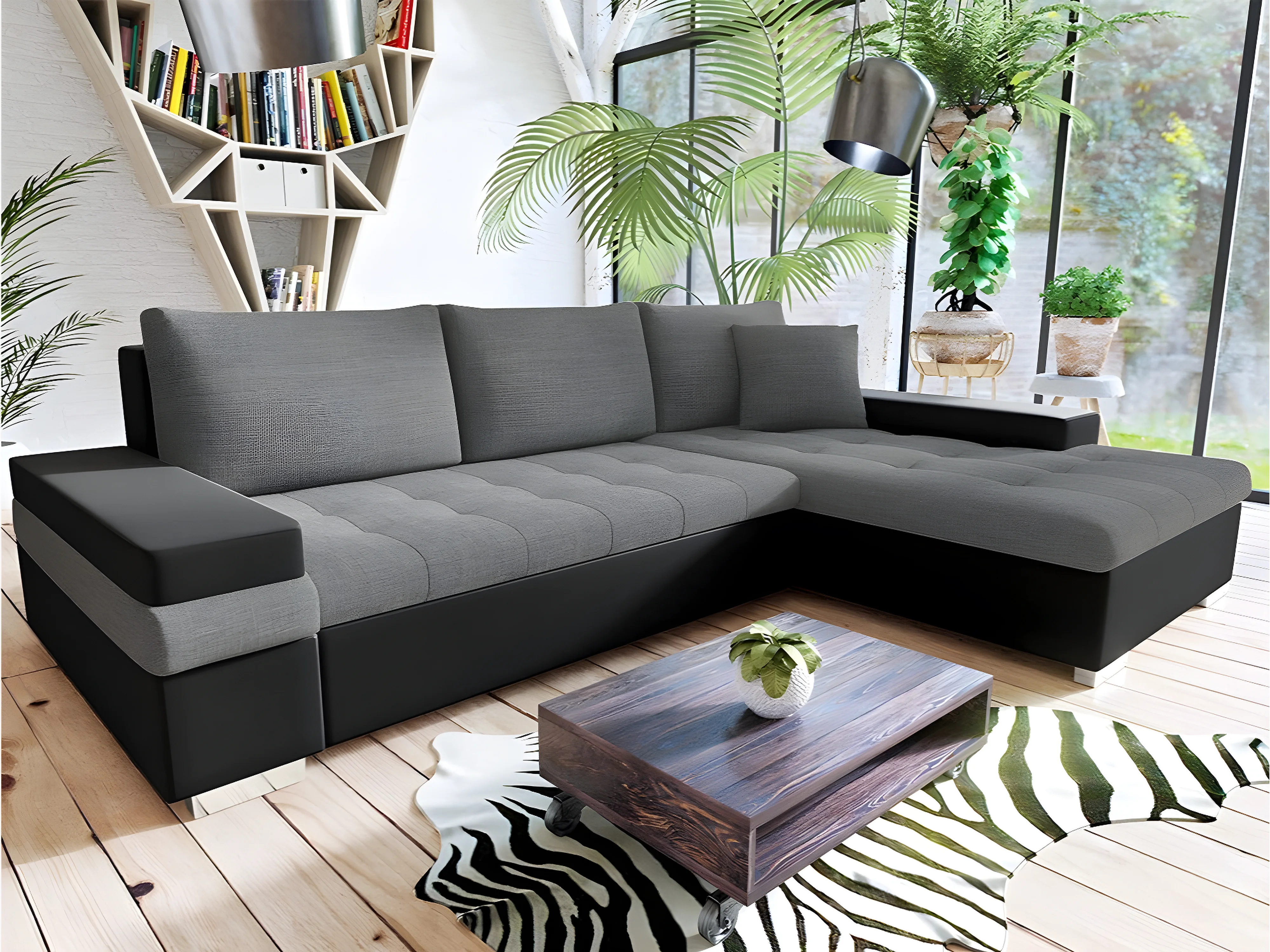 Canapé d'angle Comfivo 121, Gris, Fonction de couchage, Boîte de literie, 274x182x83cm