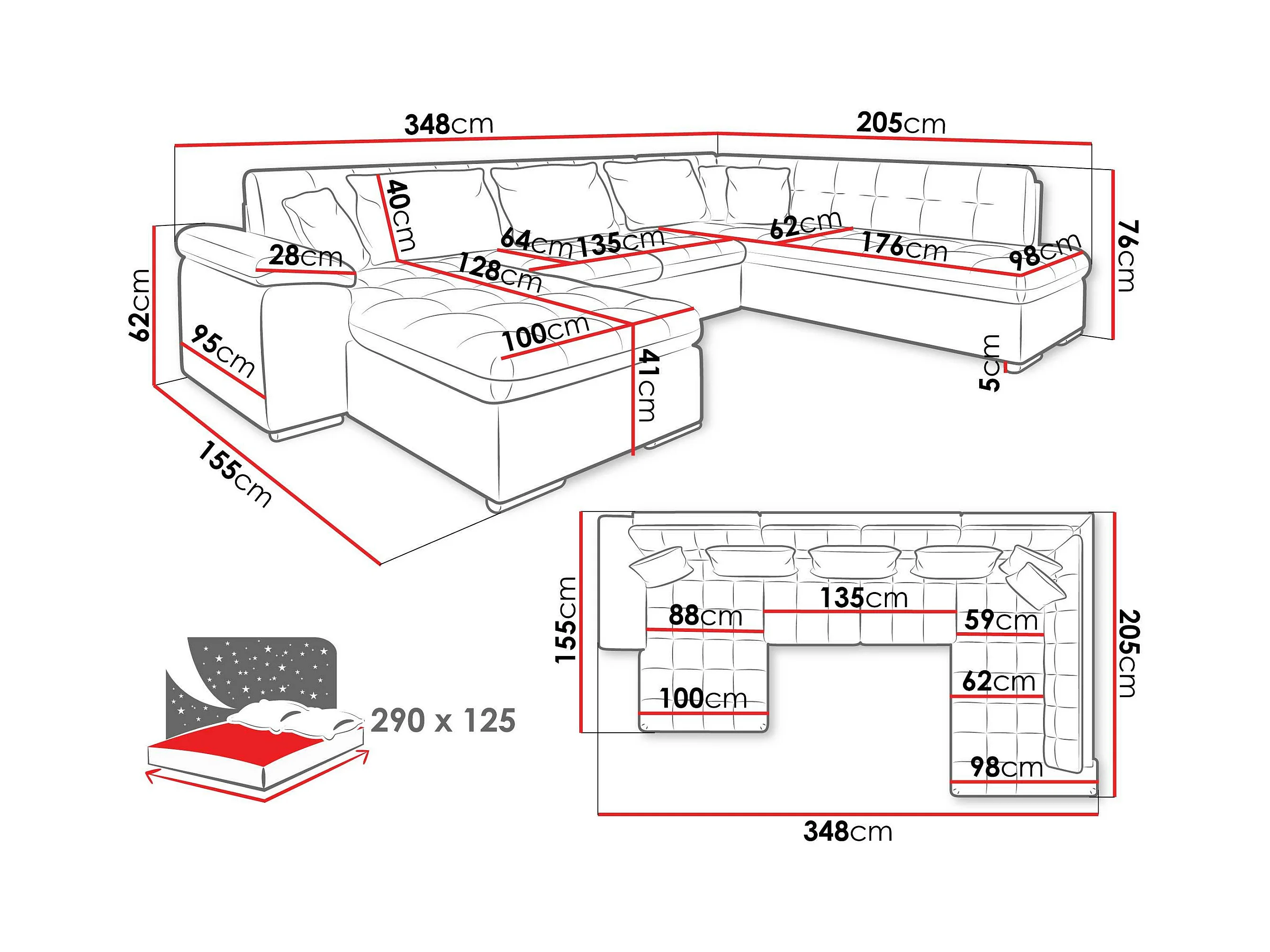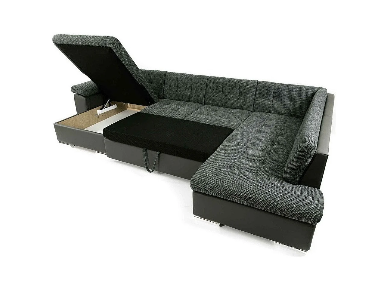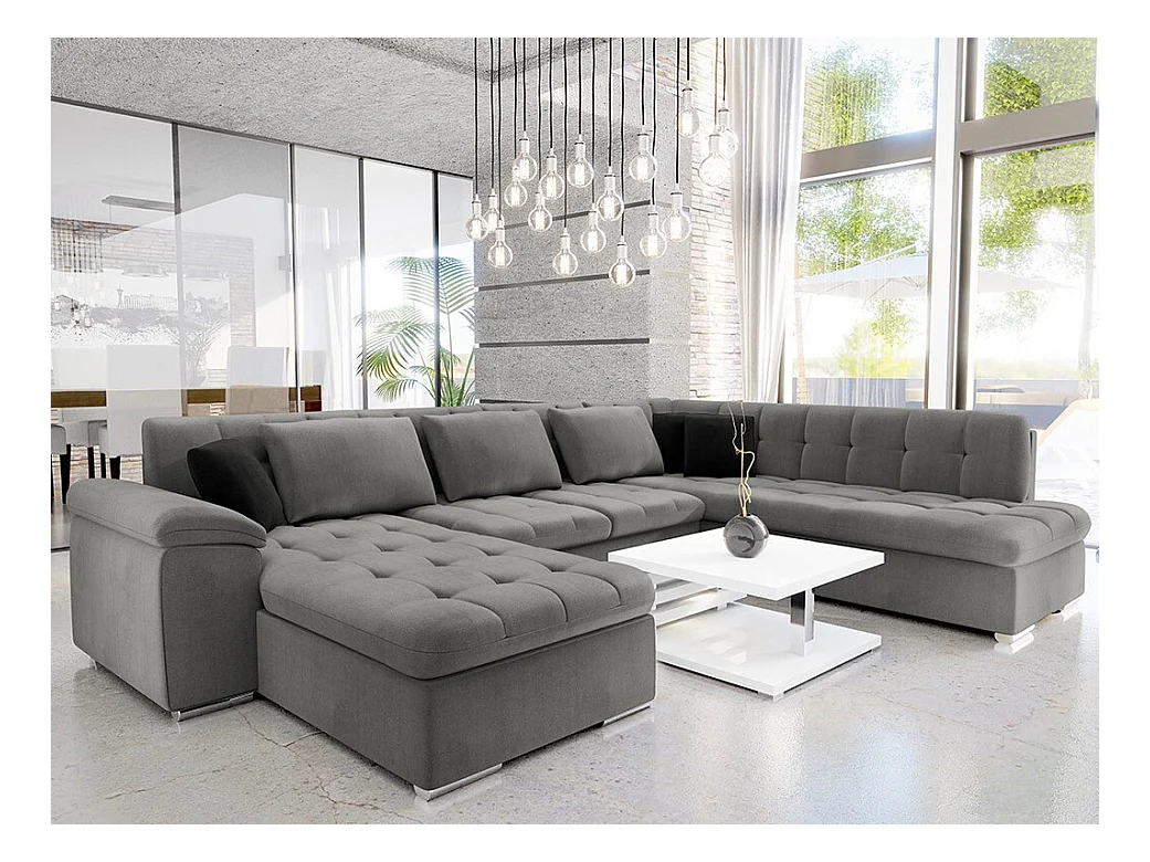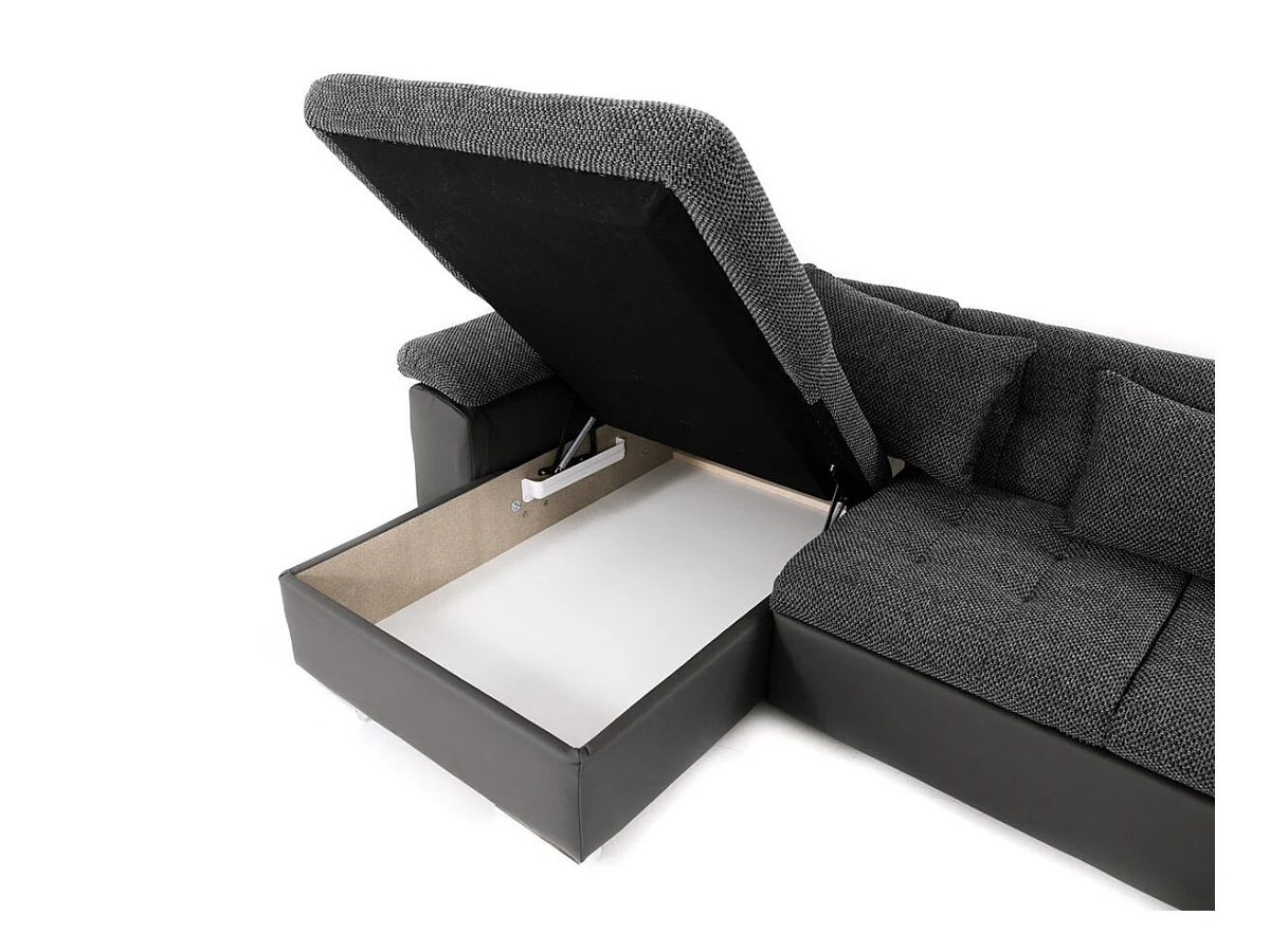 Canapé d'angle Comfivo 141, Gris, Fonction de couchage, Boîte de literie, 348x205x76cm