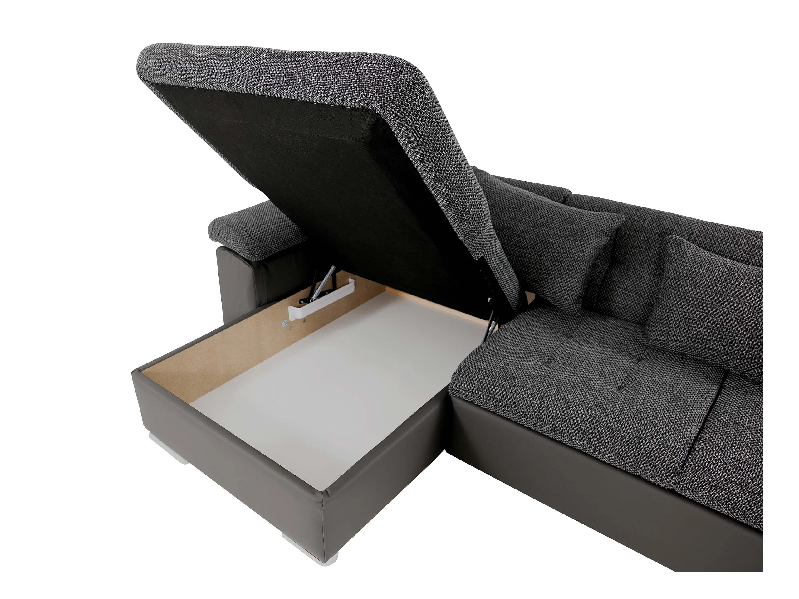 Canapé d'angle Comfivo 141, Gris, Fonction de couchage, Boîte de literie, 348x205x76cm