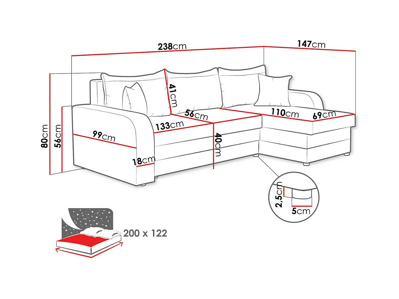 Canapé d'angle Comfivo 203, Bleu, Fonction de couchage, Boîte de literie, 238x147x80cm