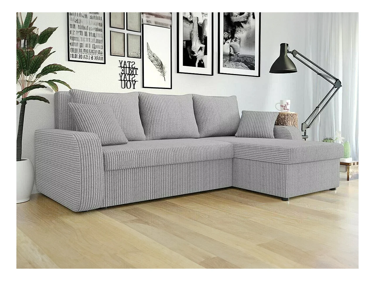 Canapé d'angle Comfivo 203, Gris, Fonction de couchage, Boîte de literie, 238x147x80cm